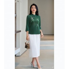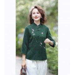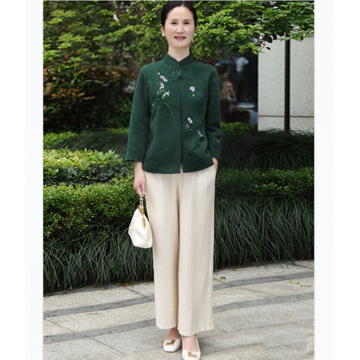【断码处理】气质高雅燕领印花中长中年时尚大衣
