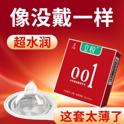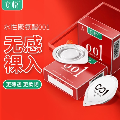 交悦聚氨酯001超薄避孕套情趣安全套潮润玻尿酸计生用品2只装