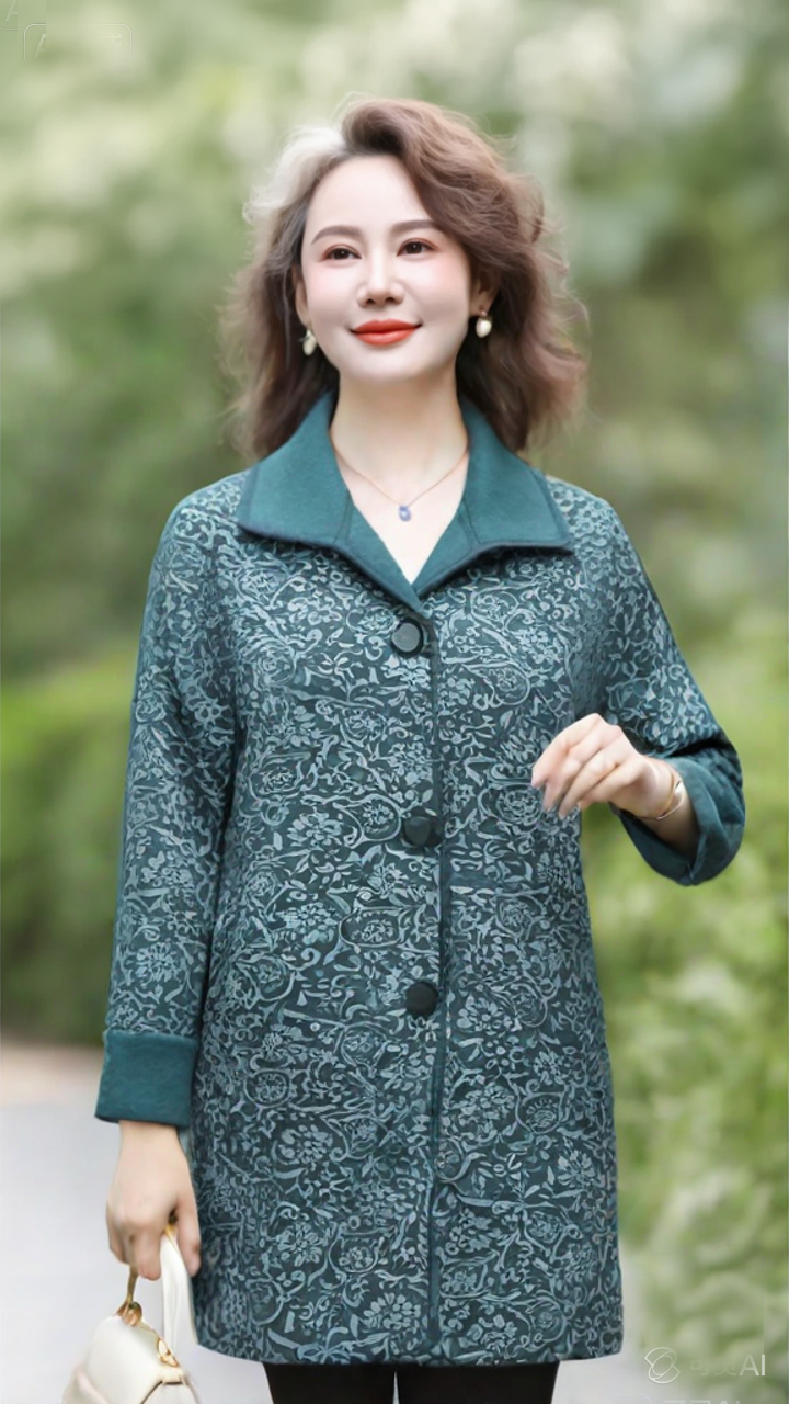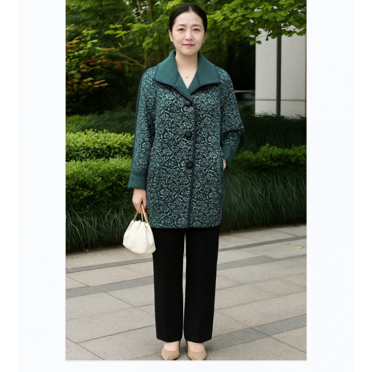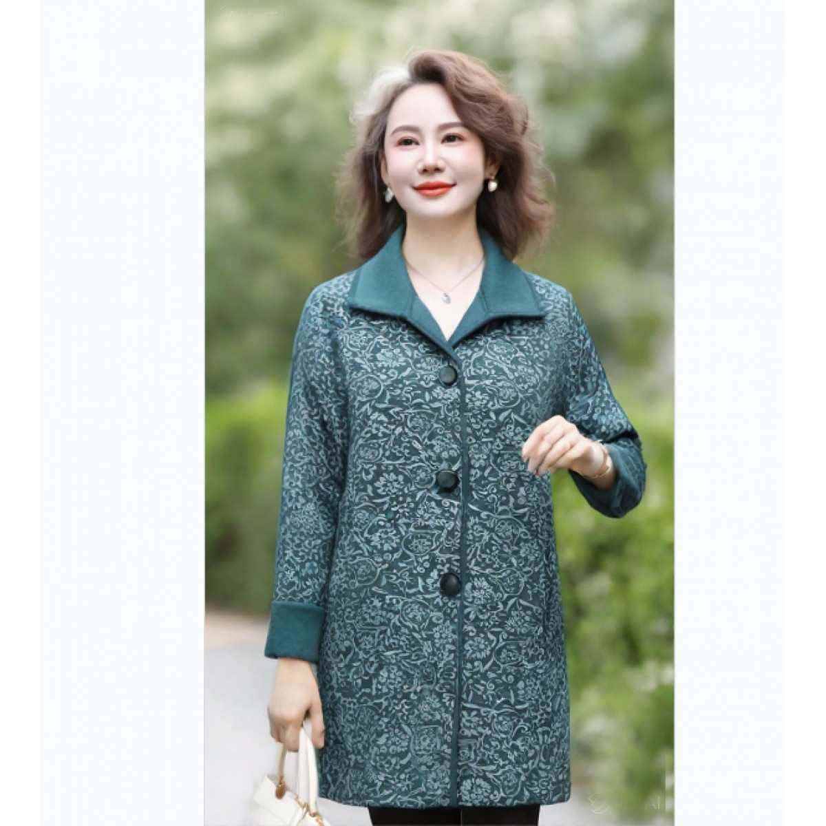 商品名称:【断码处理】气质高雅燕领印花中长中年时尚大衣