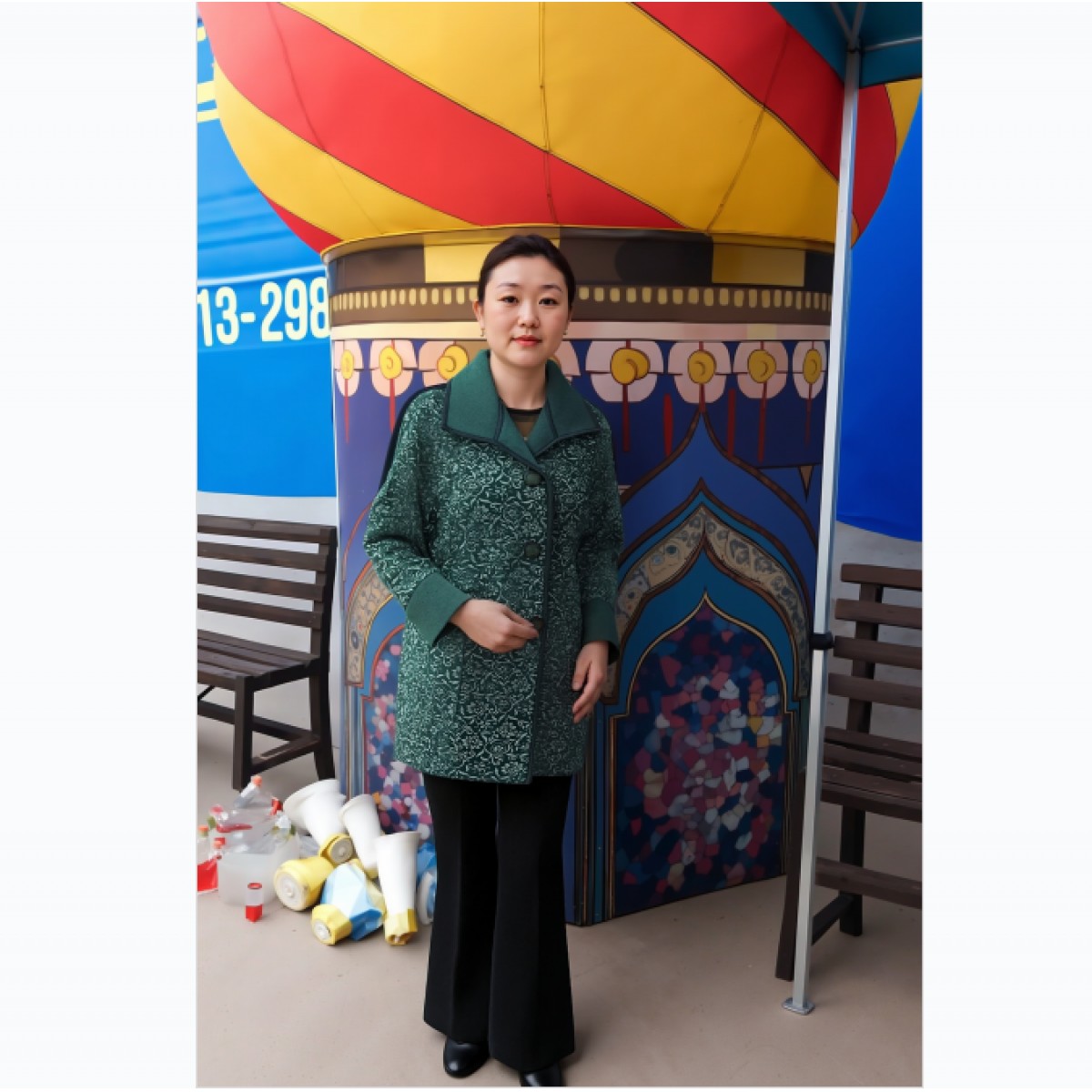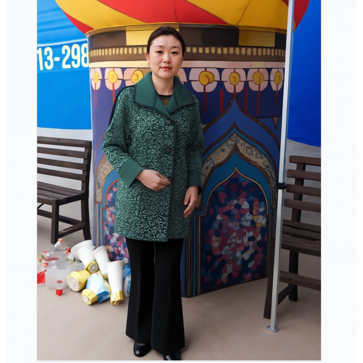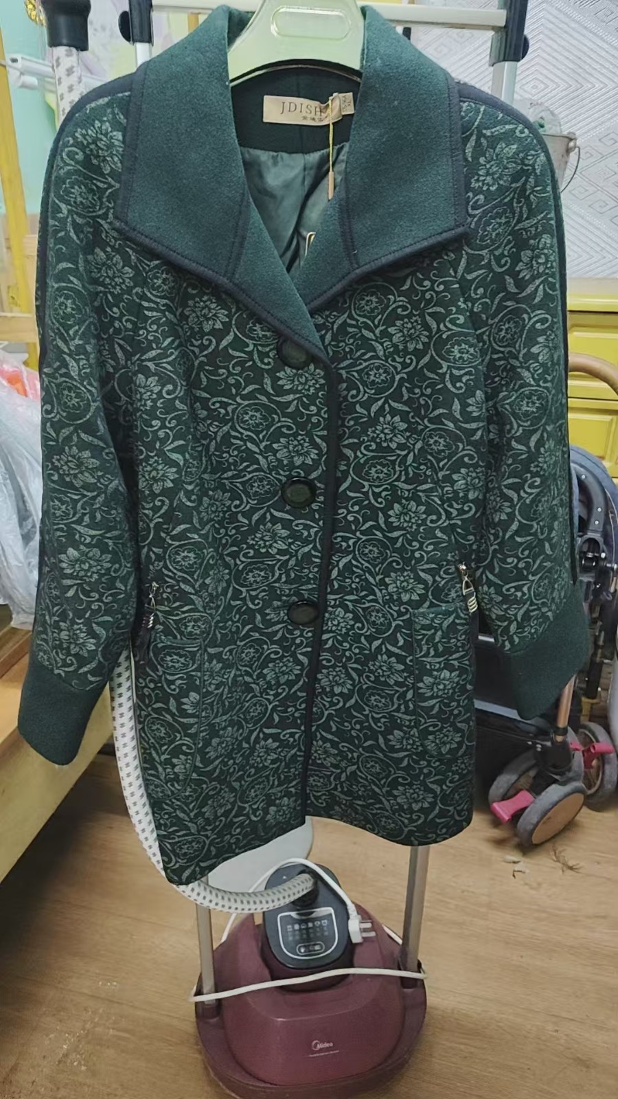 商品名称:【断码处理】气质高雅燕领印花中长中年时尚大衣