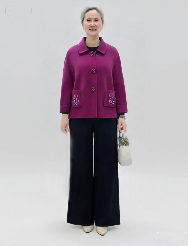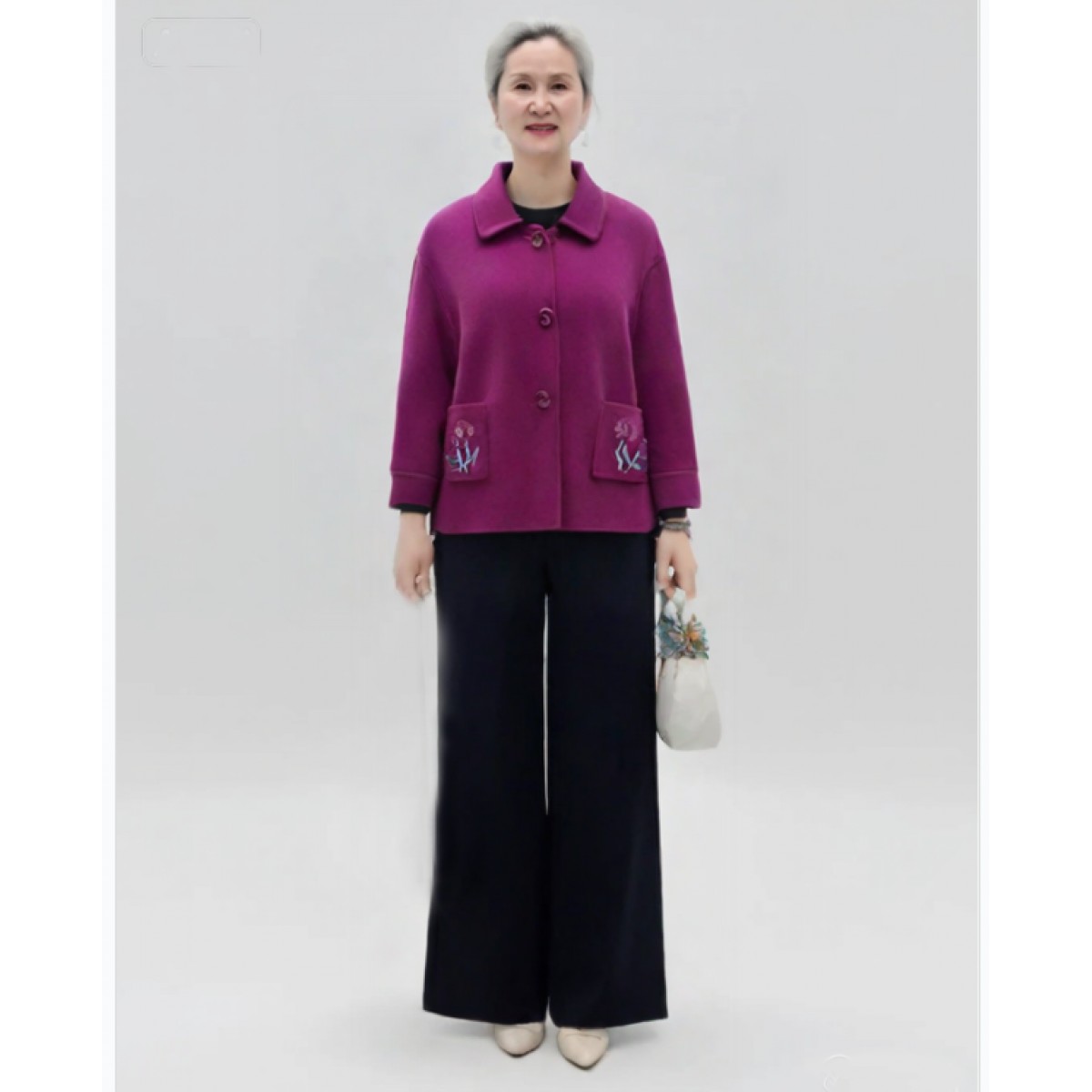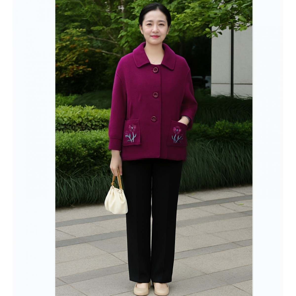 【断码处理】气质高雅气圆领一字扣绣花中老年大衣