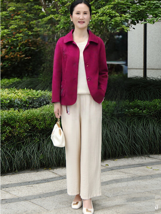 商品名称:【断码处理】气质高雅翻领落肩袖红色中老老外套