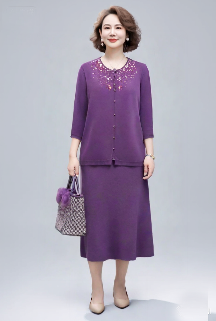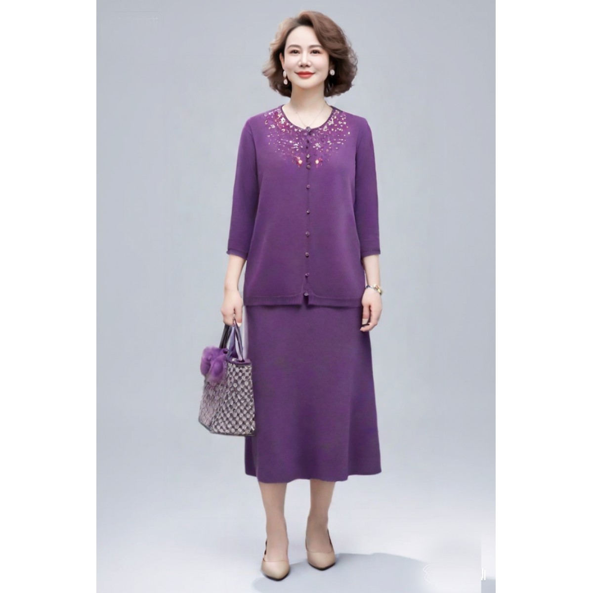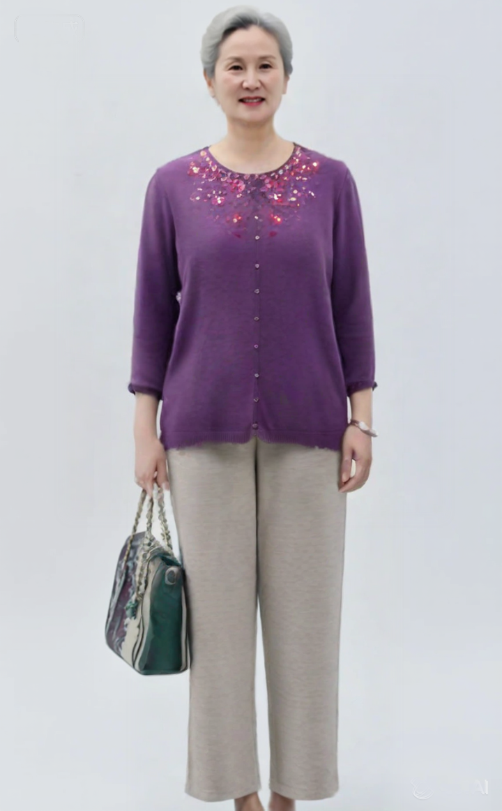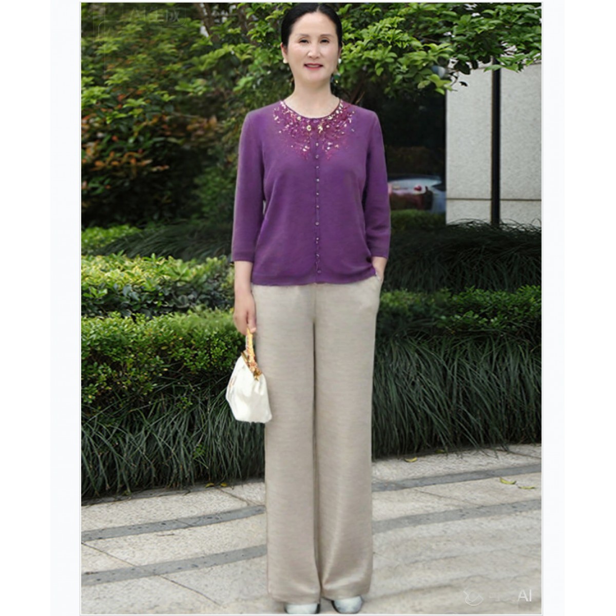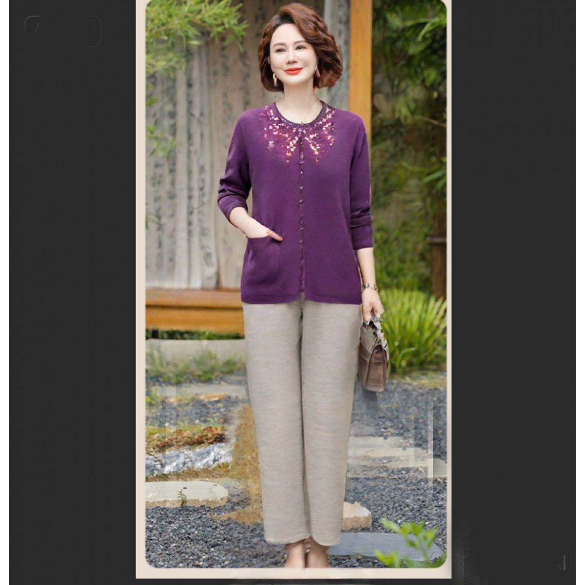 【断码处理】气质高雅圆领珠花中老年女开衫