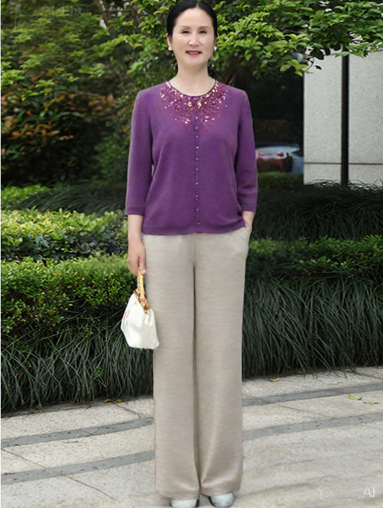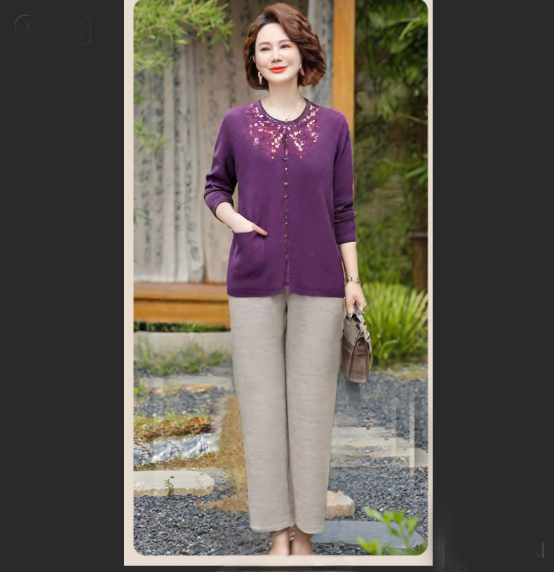 商品名称:【断码处理】气质高雅圆领珠花中老年女开衫