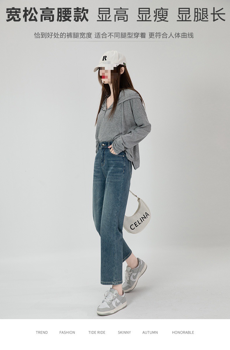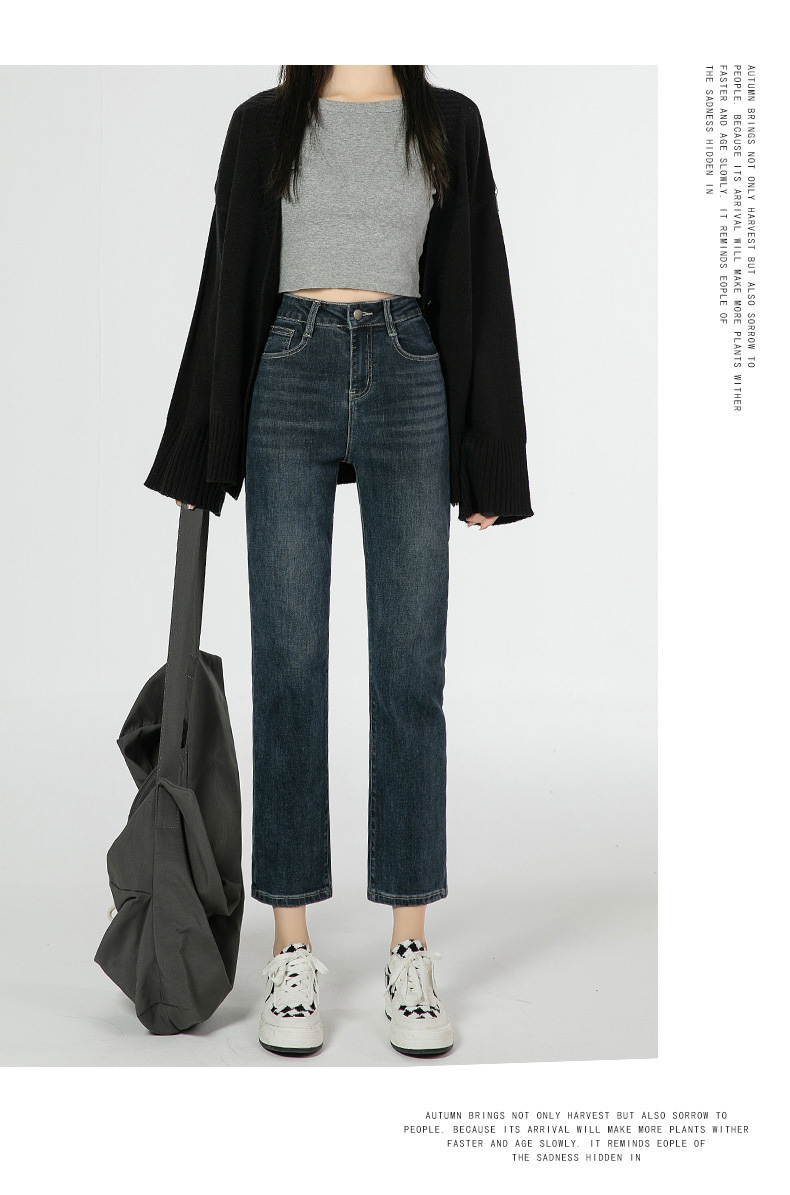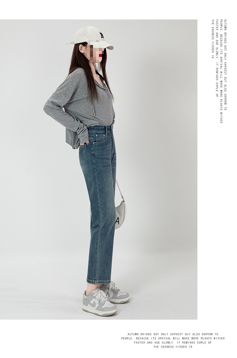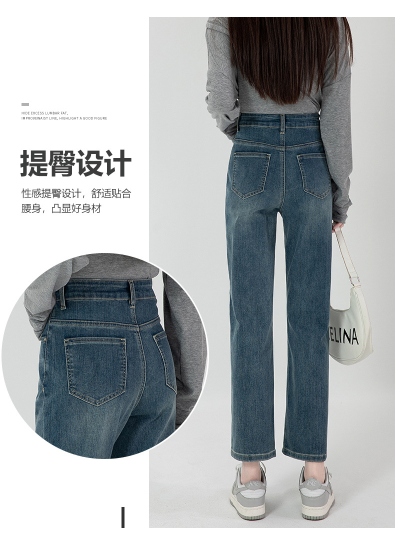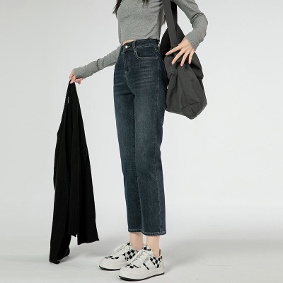 商品名称:直筒牛仔裤女高腰显瘦2026新款春秋九分梨形身材小个子烟管法棍裤