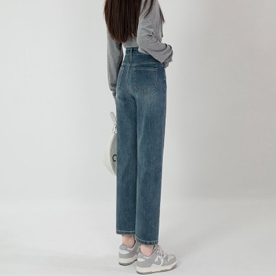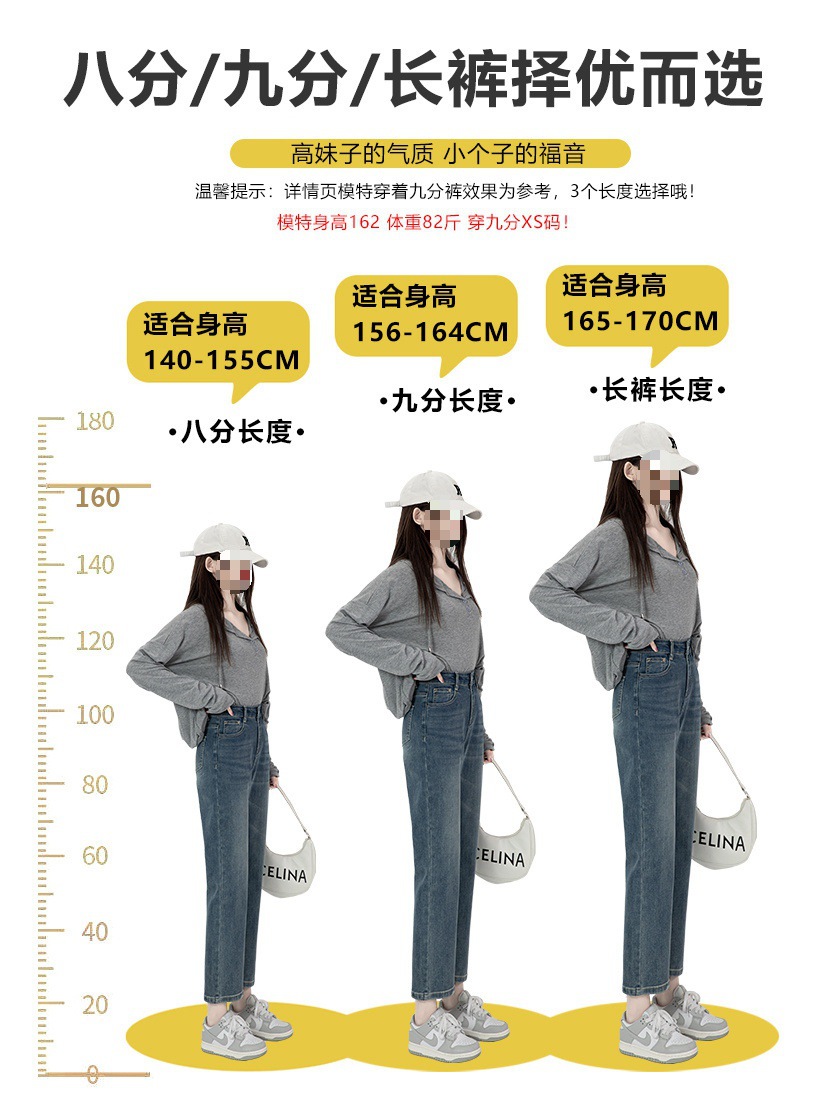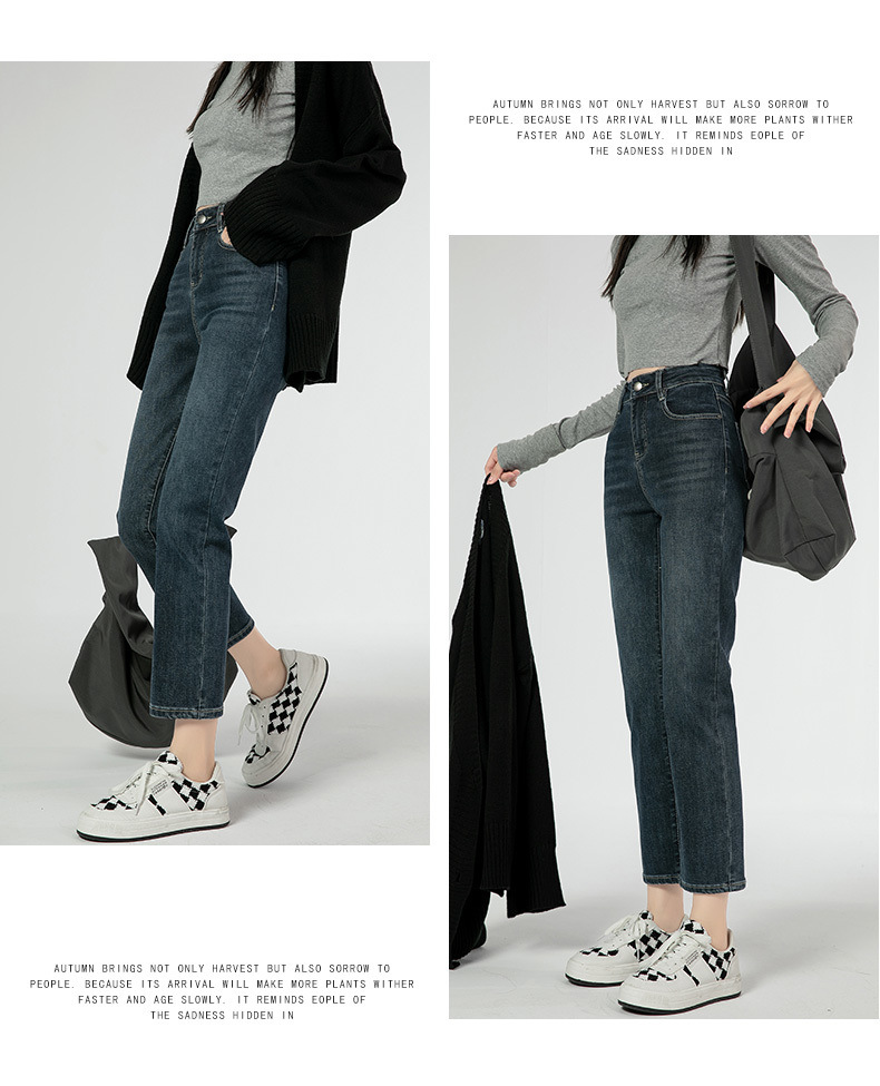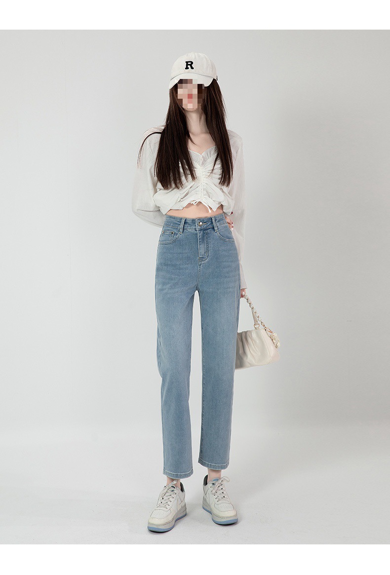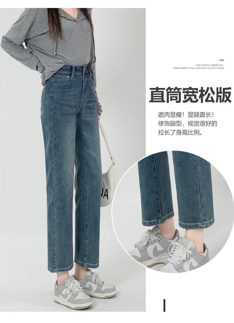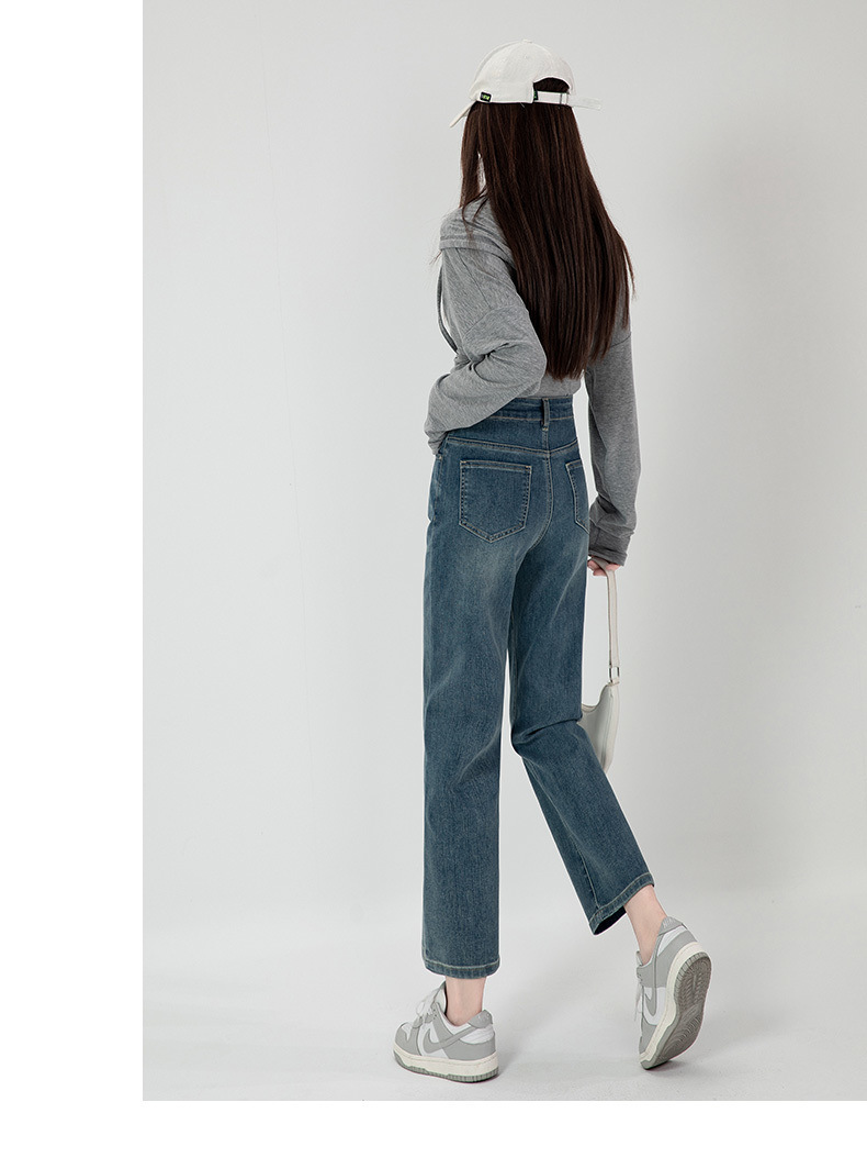 商品名称:直筒牛仔裤女高腰显瘦2026新款春秋九分梨形身材小个子烟管法棍裤