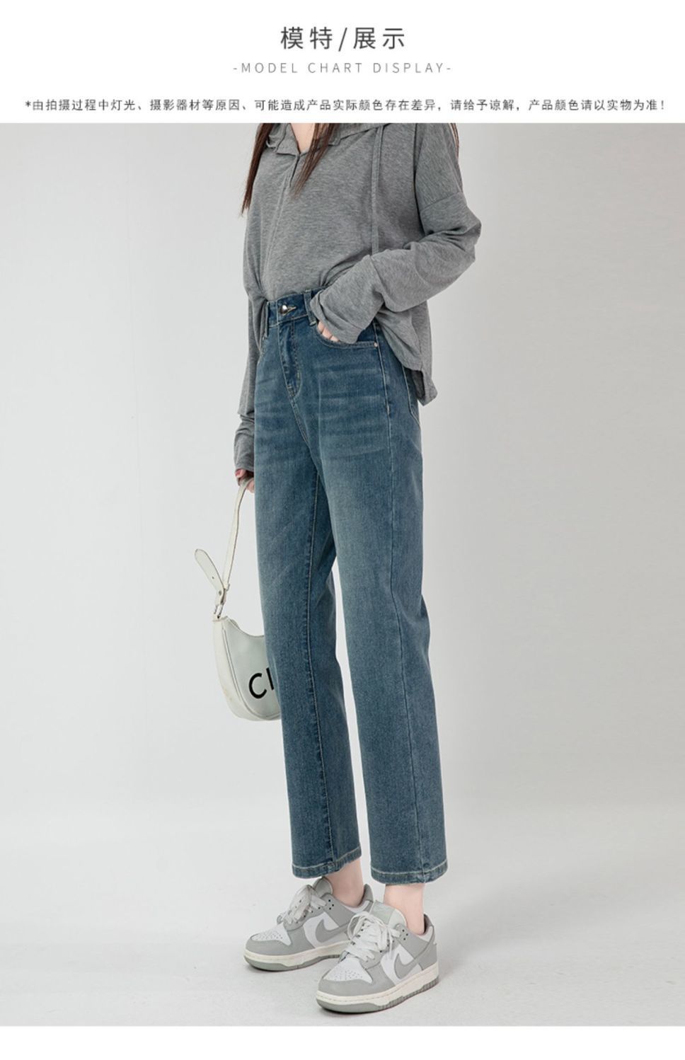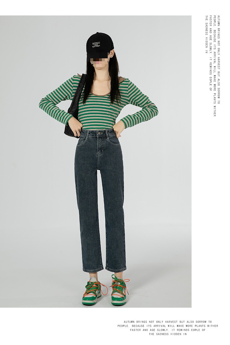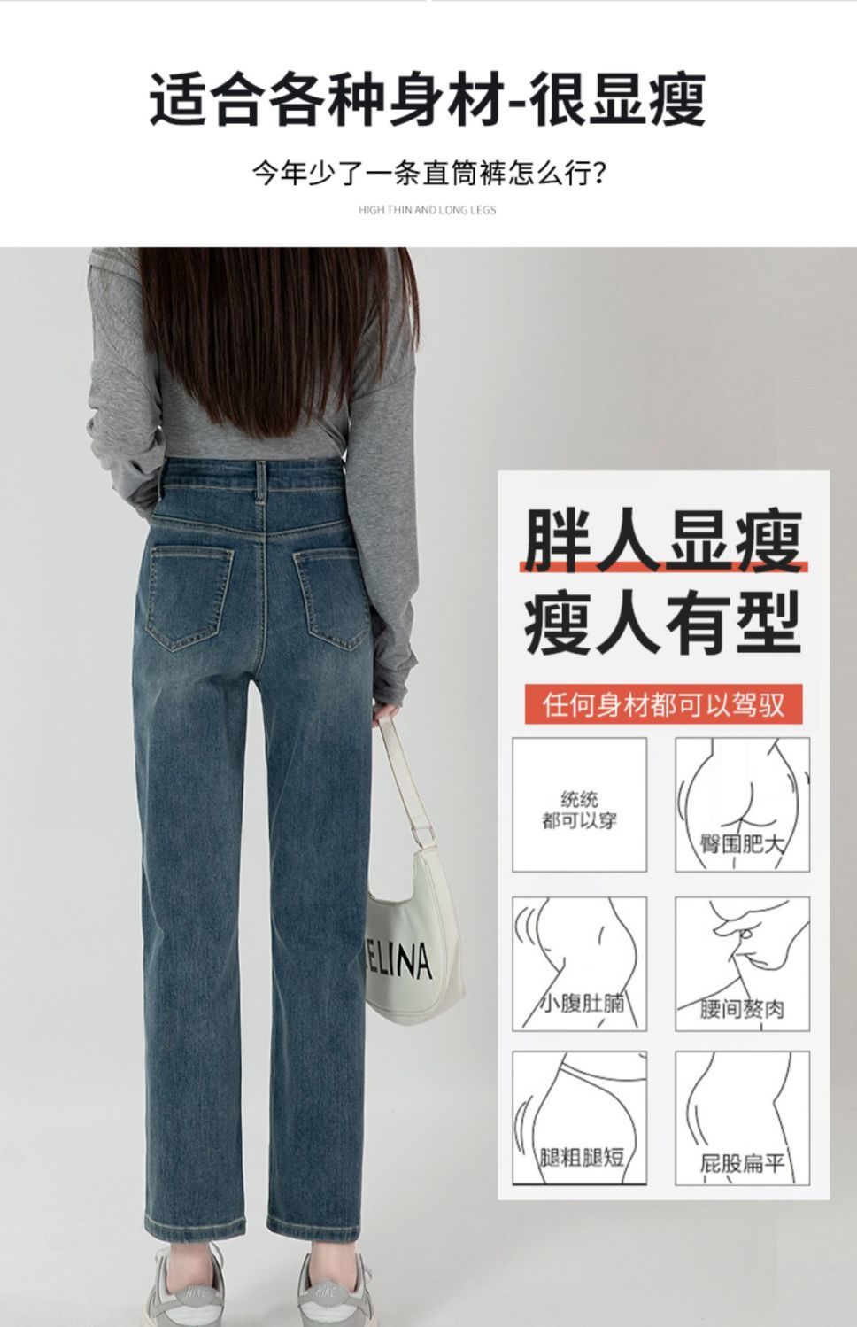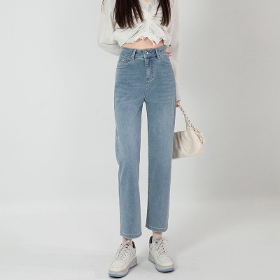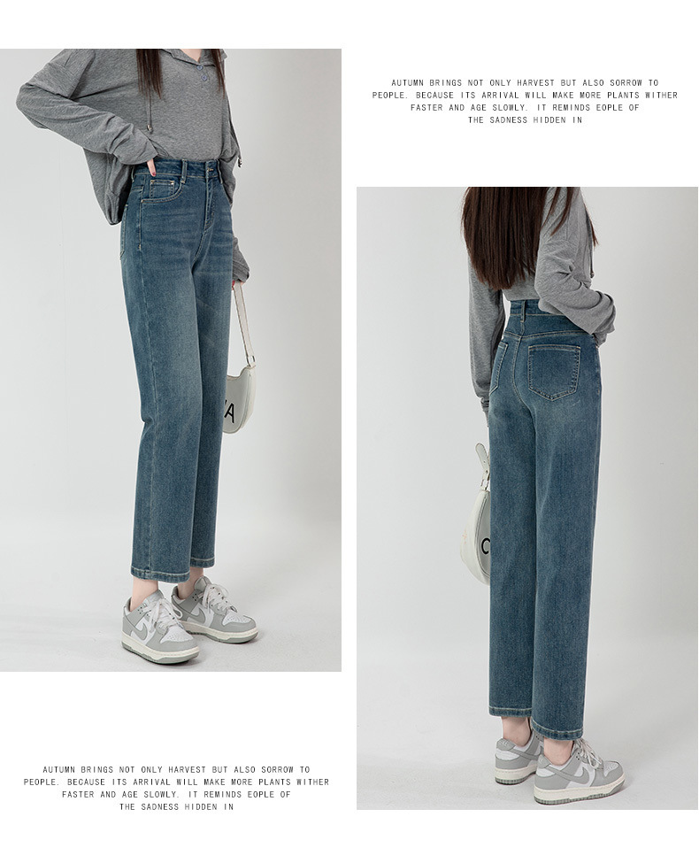 商品名称:直筒牛仔裤女高腰显瘦2026新款春秋九分梨形身材小个子烟管法棍裤