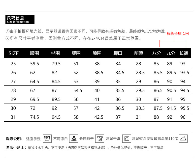 裤长:九分裤