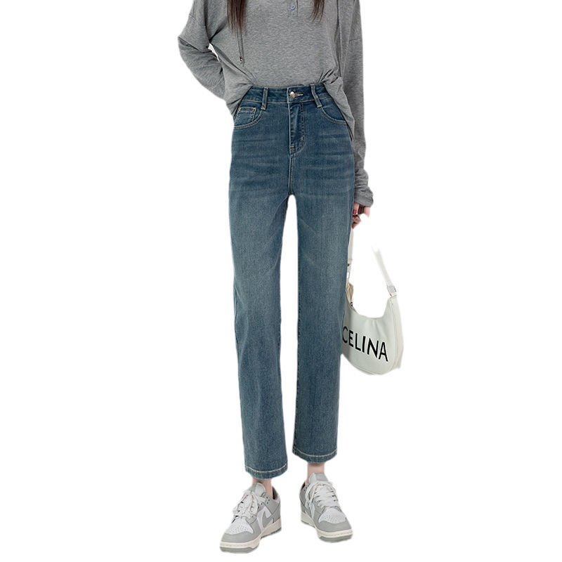 直筒牛仔裤女高腰显瘦2026新款春秋九分梨形身材小个子烟管法棍裤