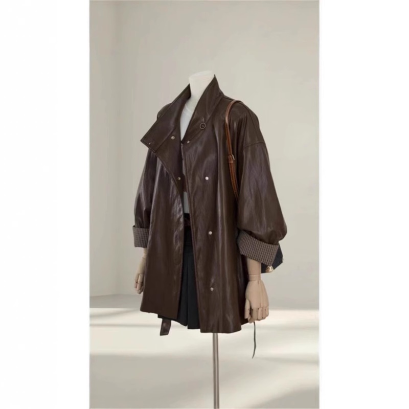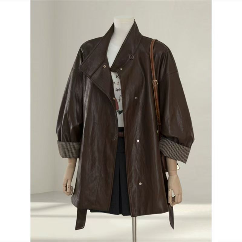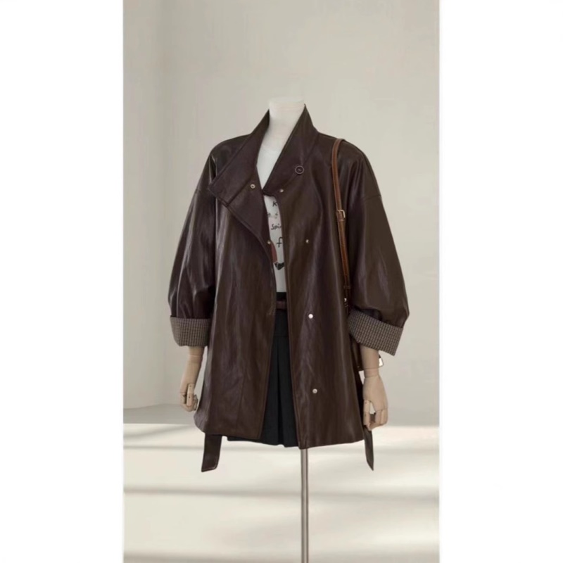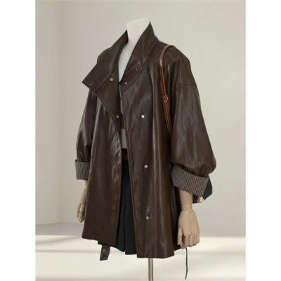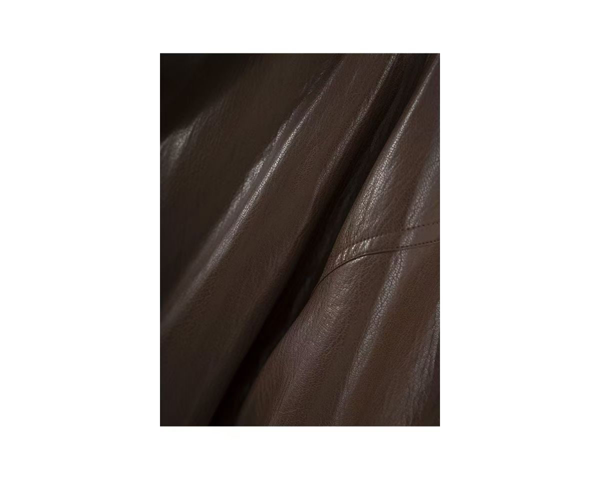 商品名称:高级感咖啡色皮衣外套女2026春秋季新款爆款宽松显瘦PU皮夹克上衣