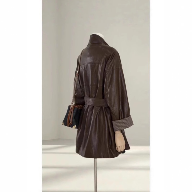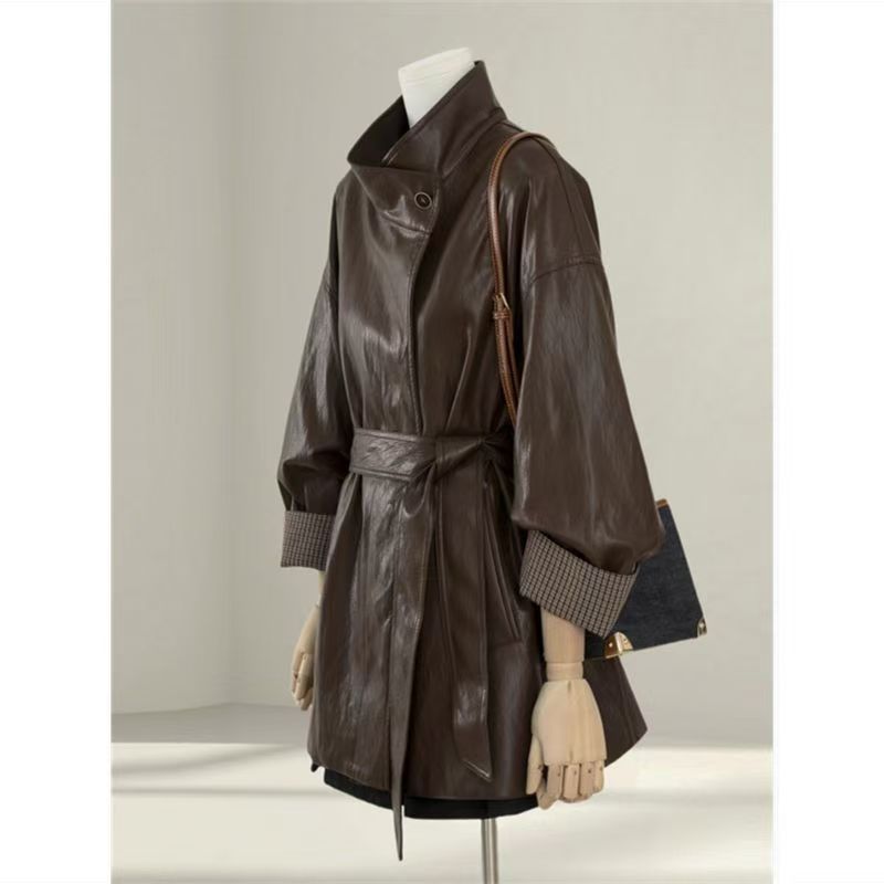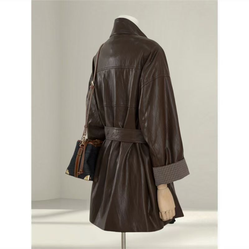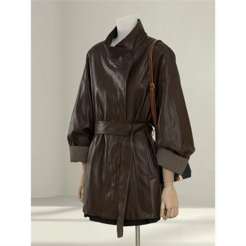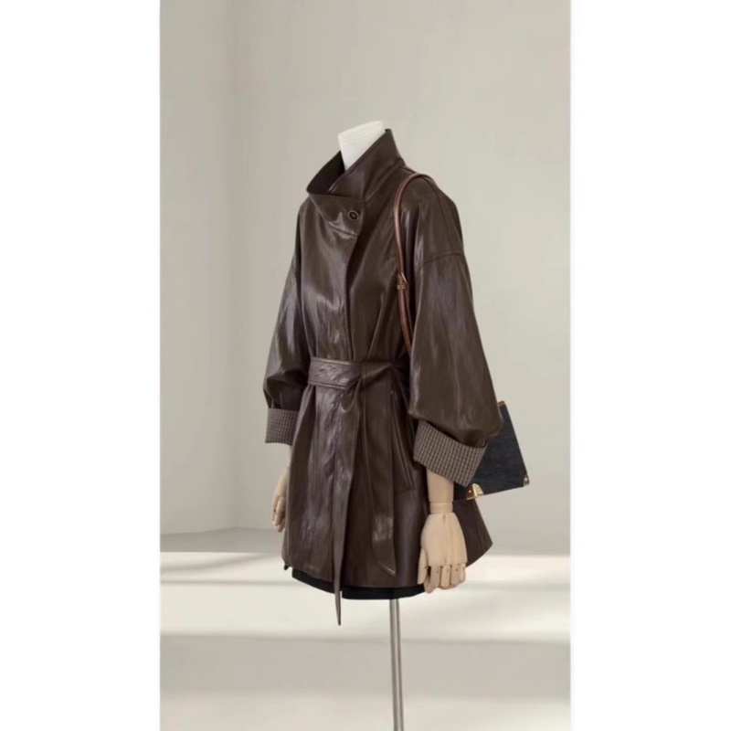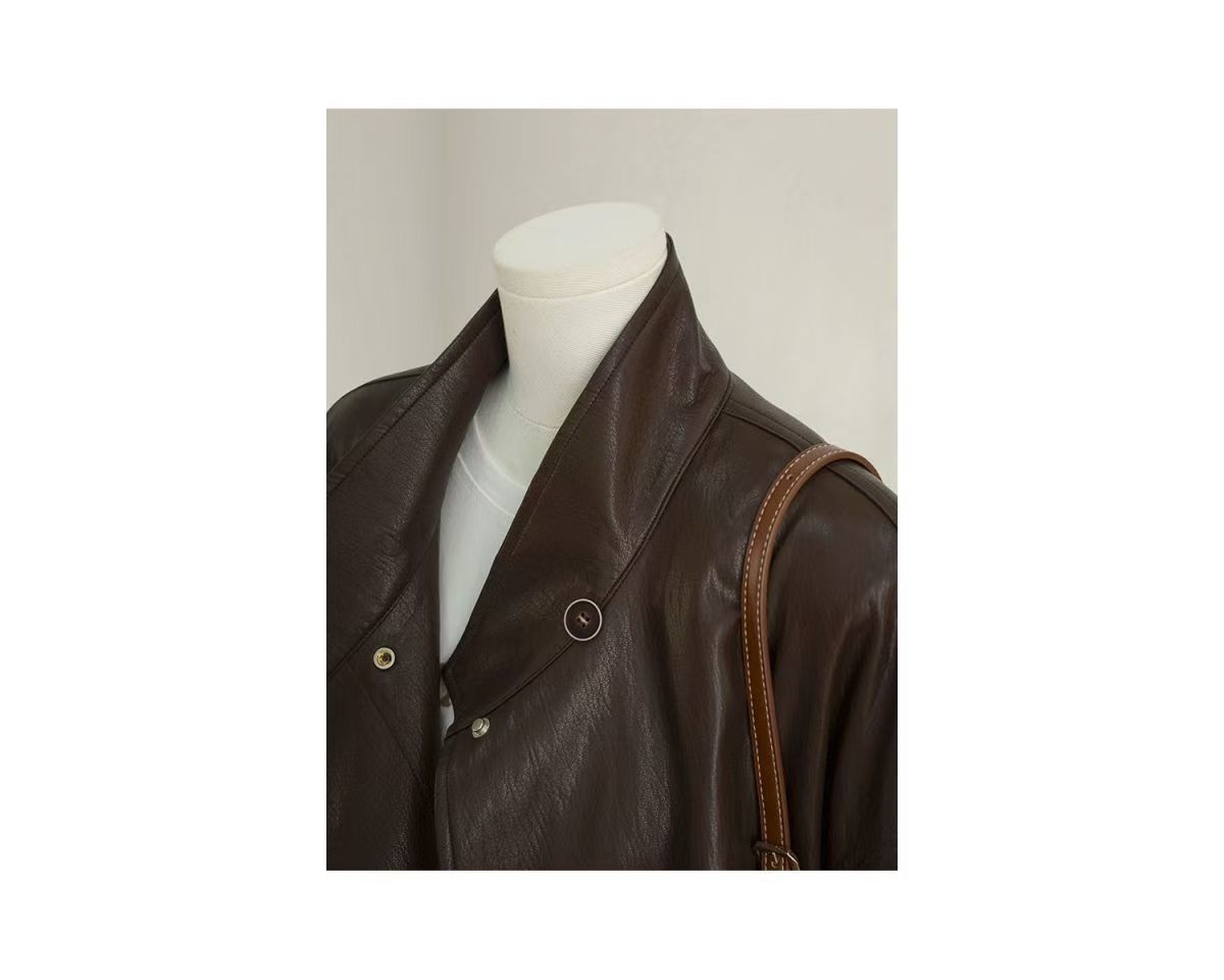 商品名称:高级感咖啡色皮衣外套女2026春秋季新款爆款宽松显瘦PU皮夹克上衣