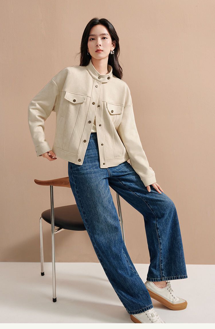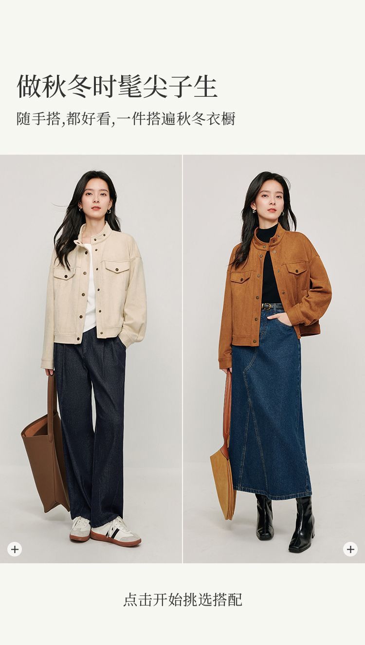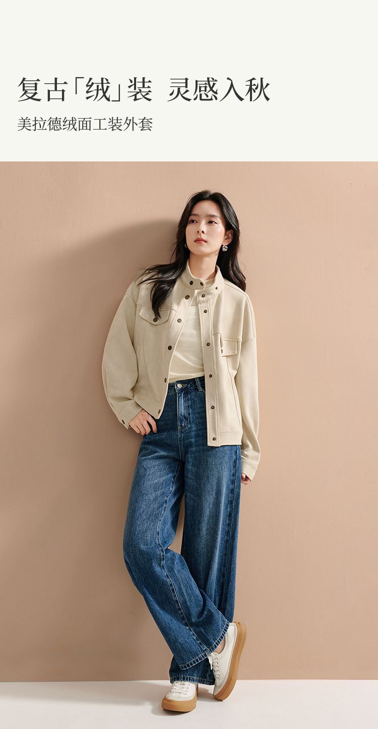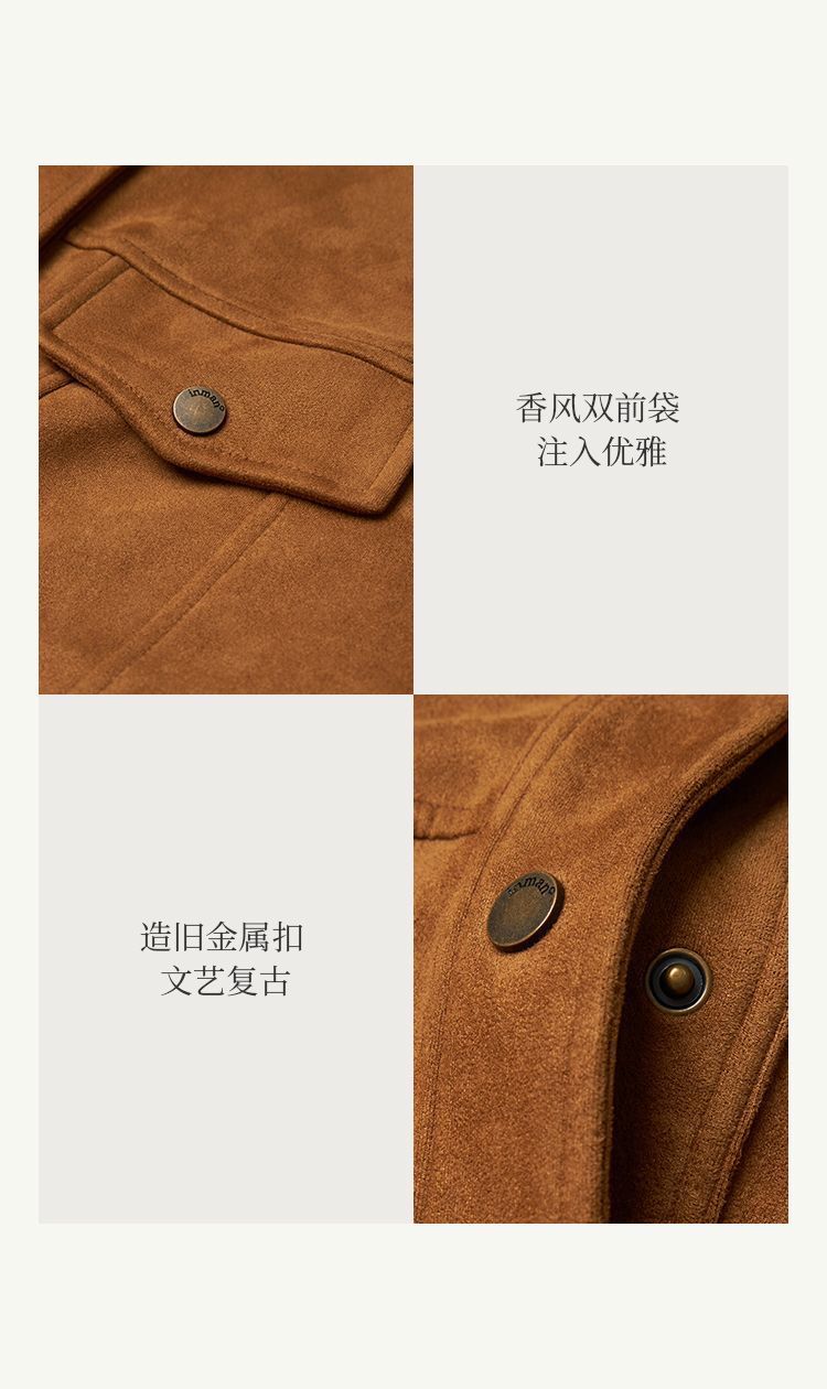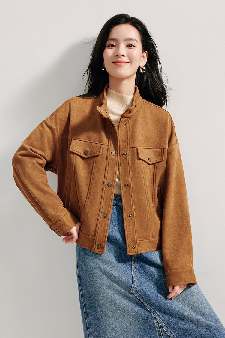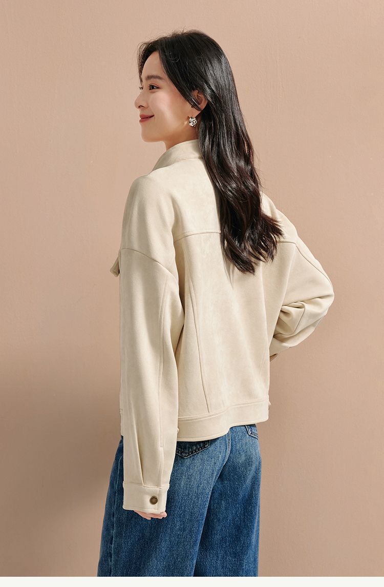 商品名称:麂皮绒休闲短外套女士2026年春秋季新款气质复古工装立领夹克上衣