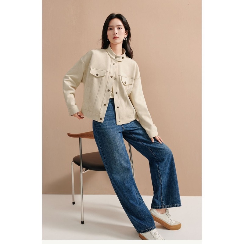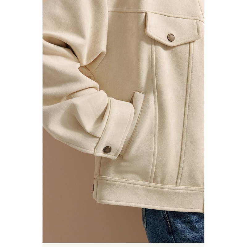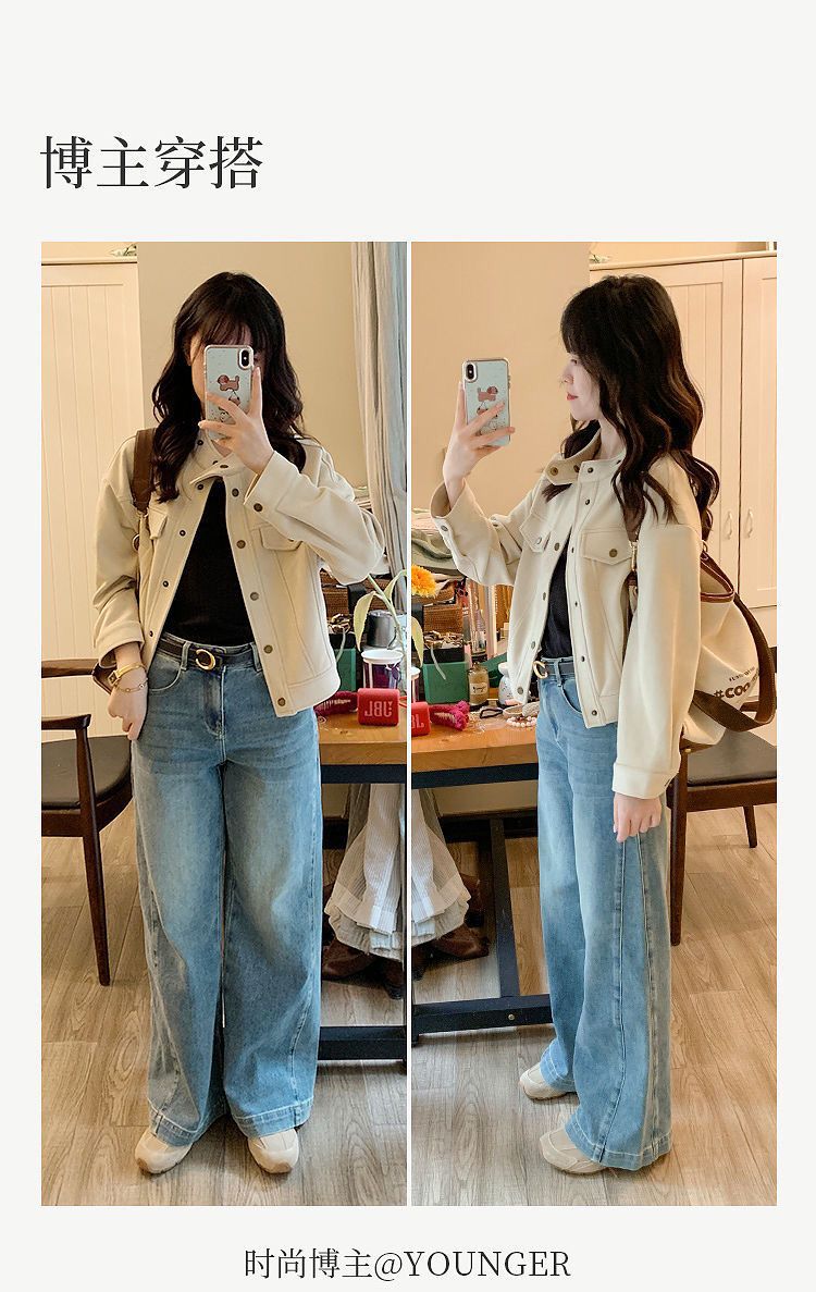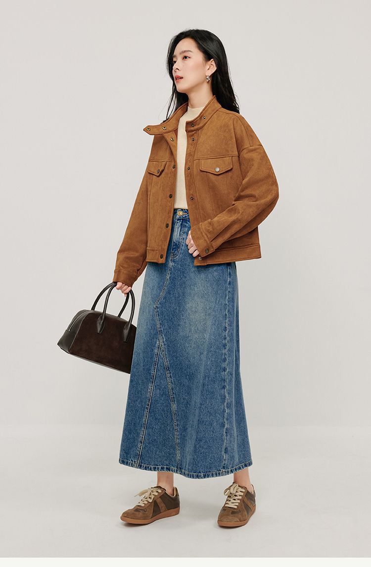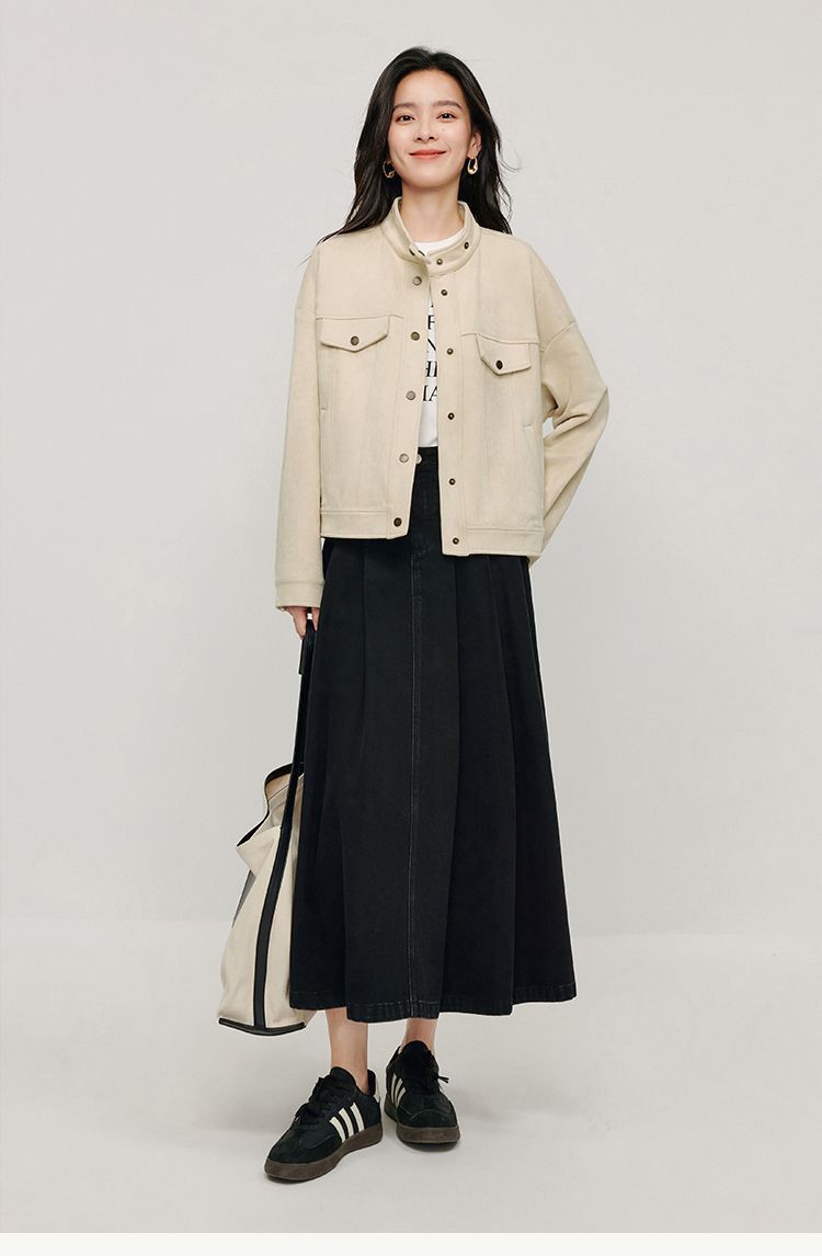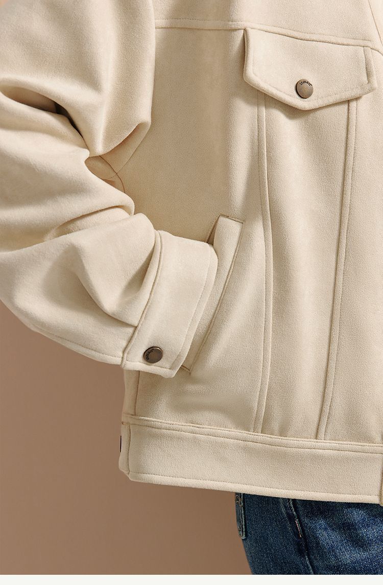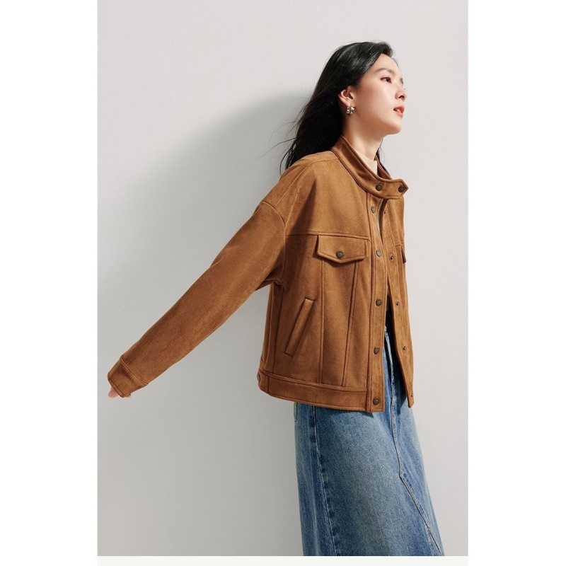 商品名称:麂皮绒休闲短外套女士2026年春秋季新款气质复古工装立领夹克上衣