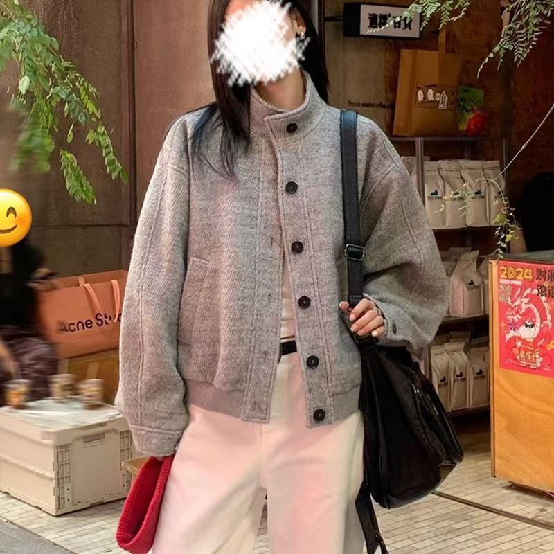 商品名称:美式复古立领夹克外套女学生秋季新款设计感宽松百搭休闲棒球服潮