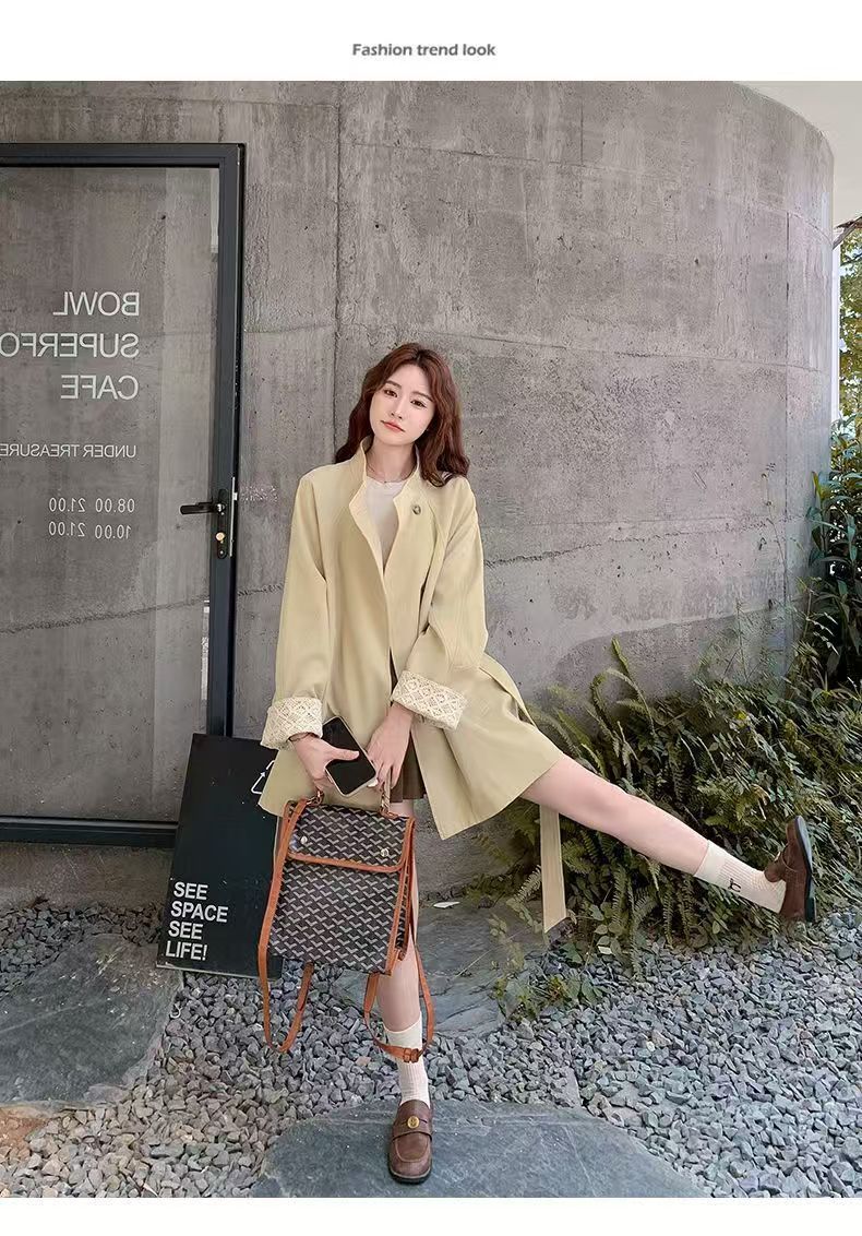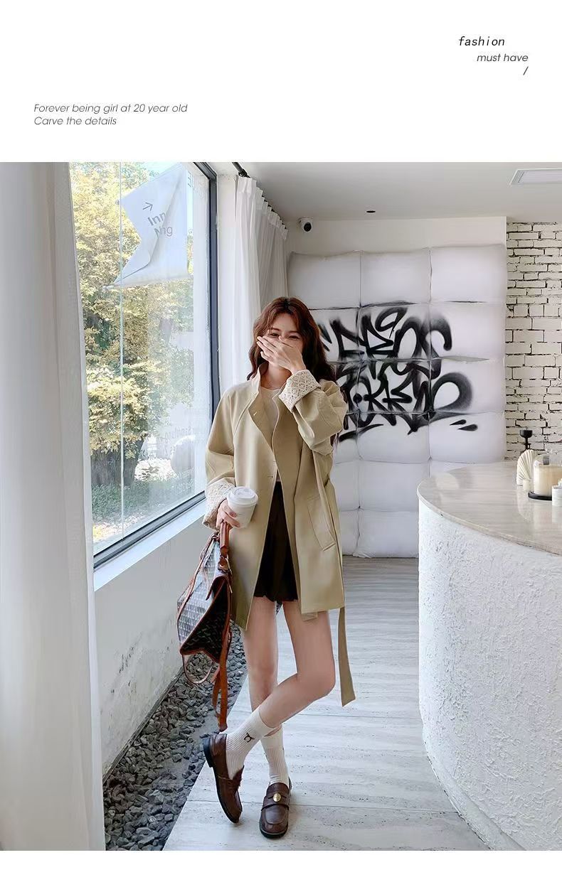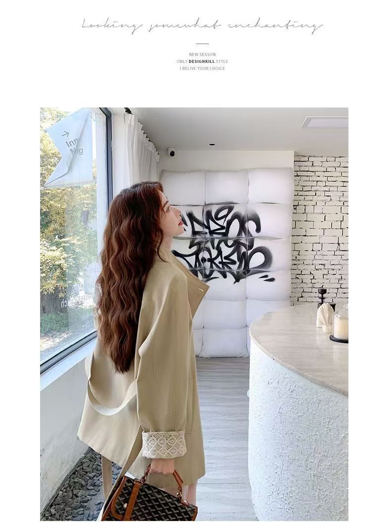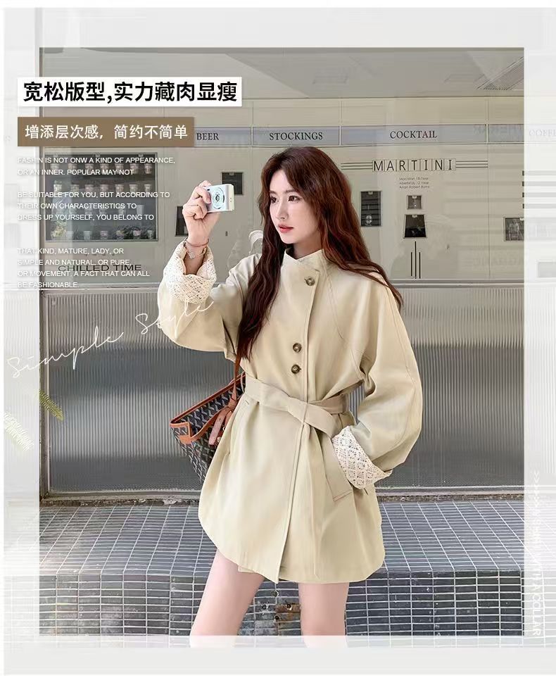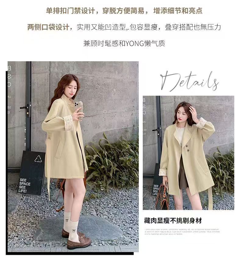 商品名称:杏色巨好看蕾丝拼接衣外套女秋季2026新款小个子气质通勤休闲大衣