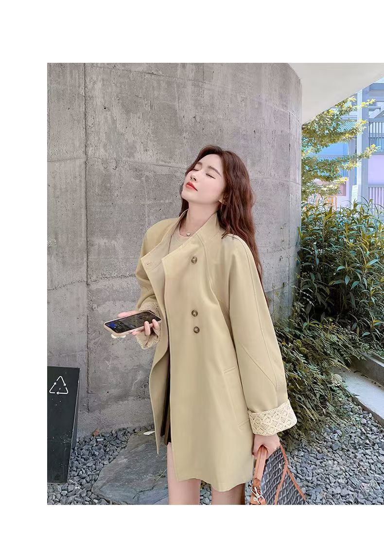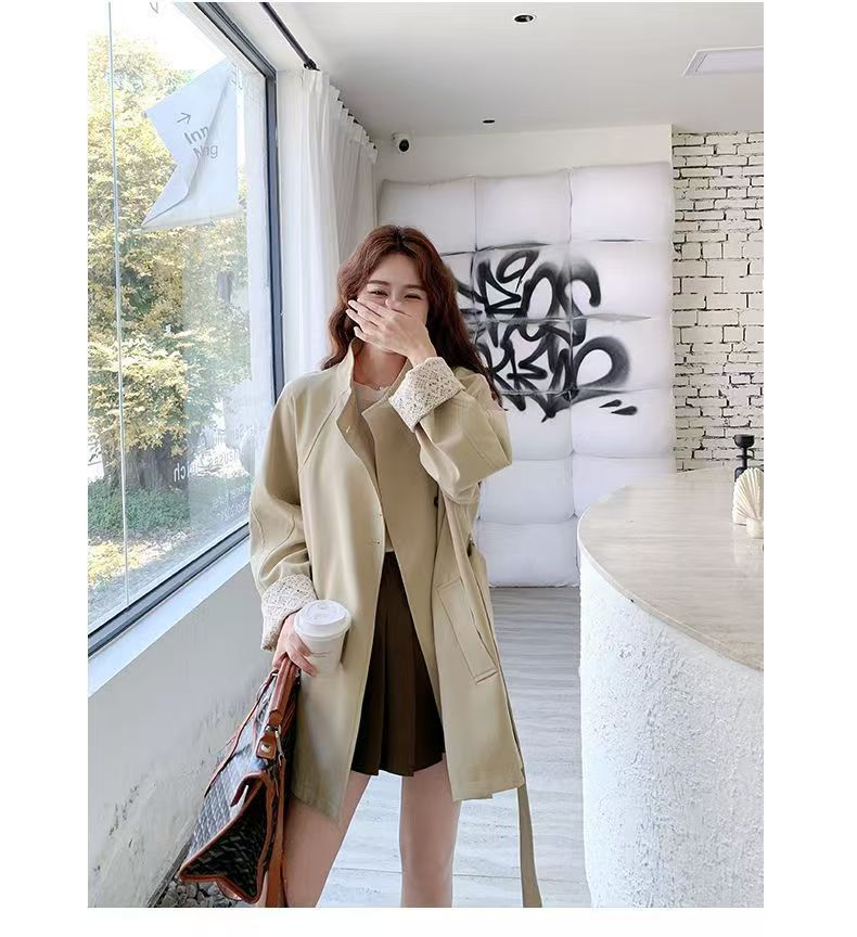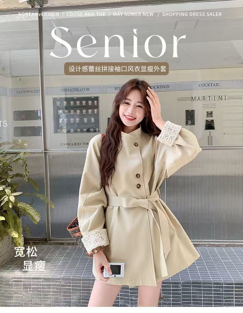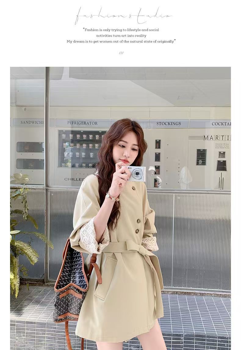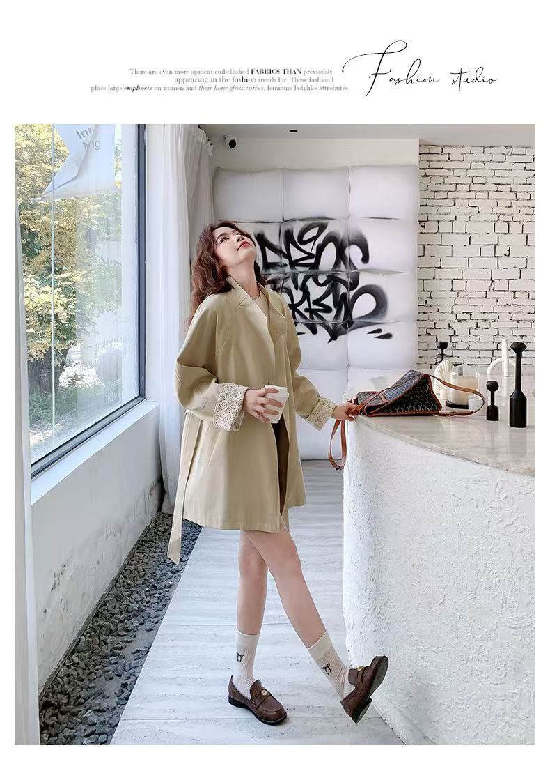 商品名称:杏色巨好看蕾丝拼接衣外套女秋季2026新款小个子气质通勤休闲大衣