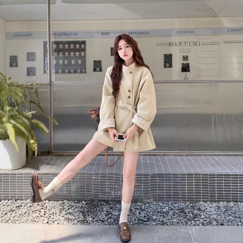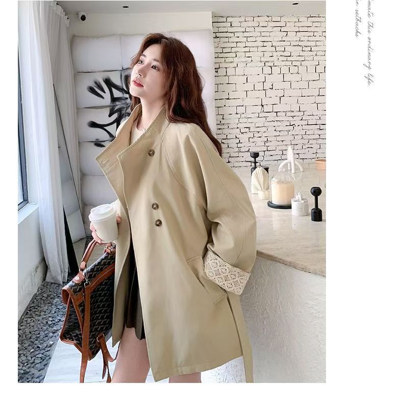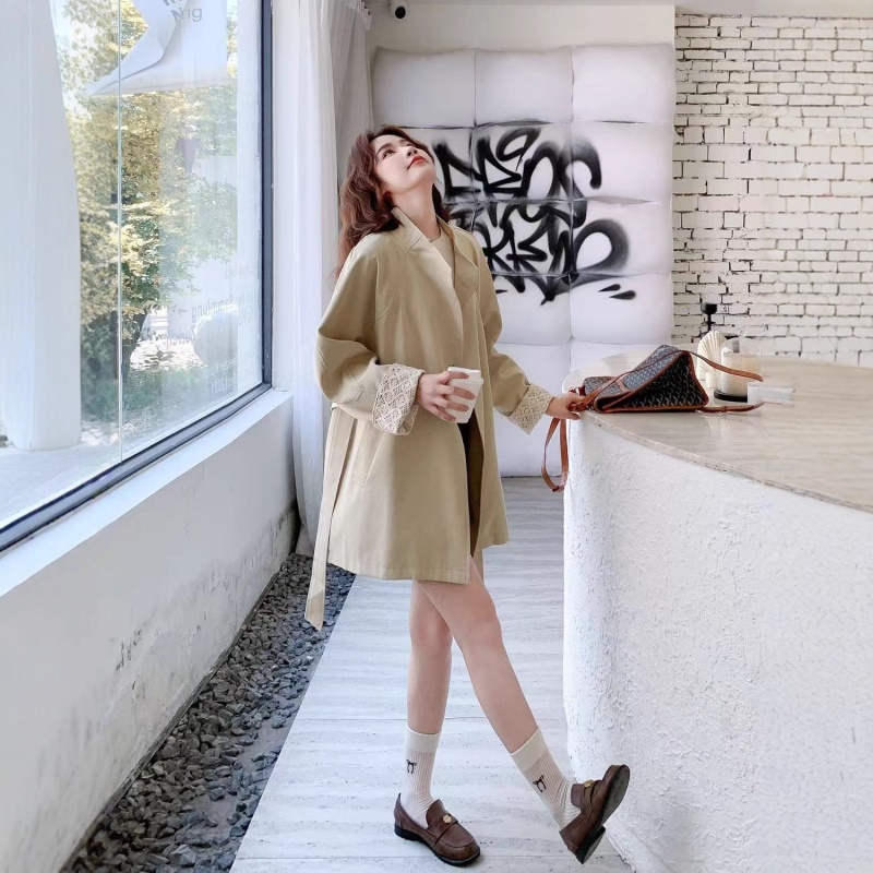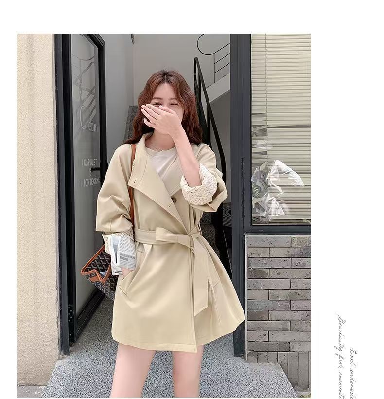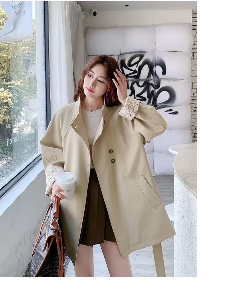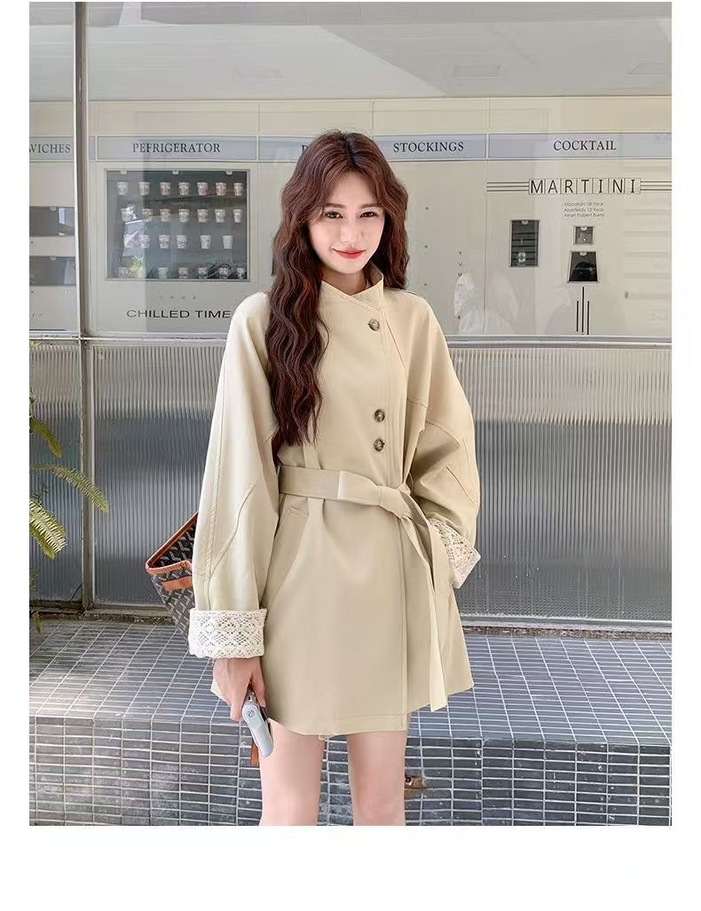 商品名称:杏色巨好看蕾丝拼接衣外套女秋季2026新款小个子气质通勤休闲大衣