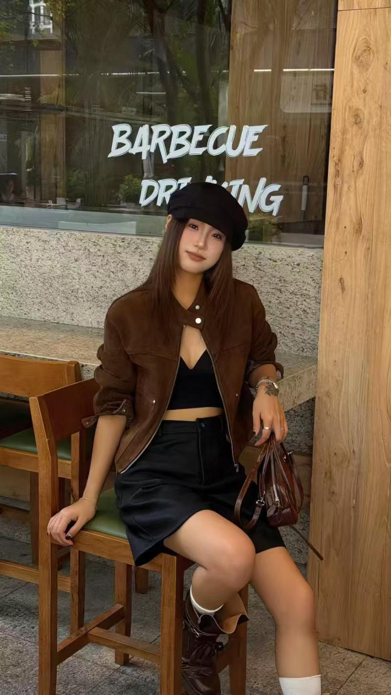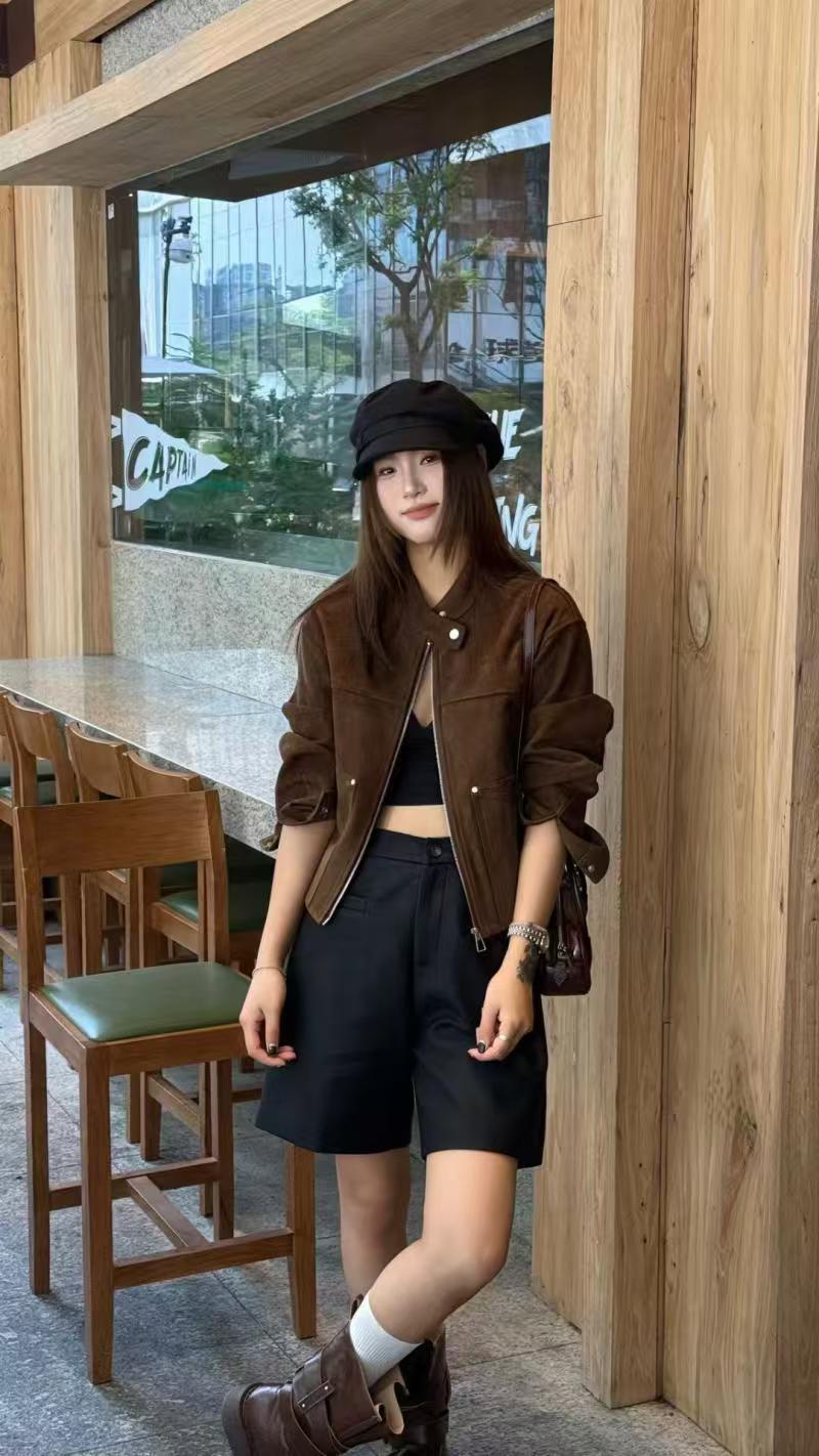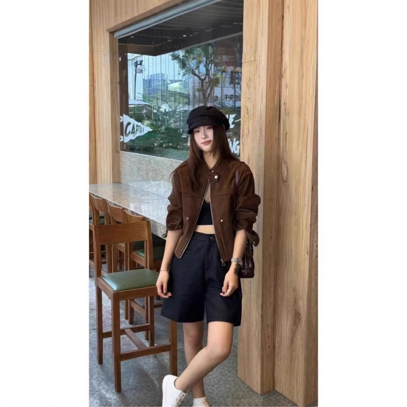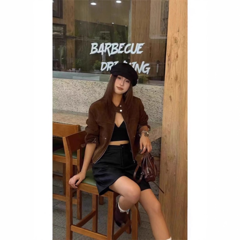 2026秋季新款小个子立领短款休闲鹿皮绒外套宽松上衣夹克款机车风