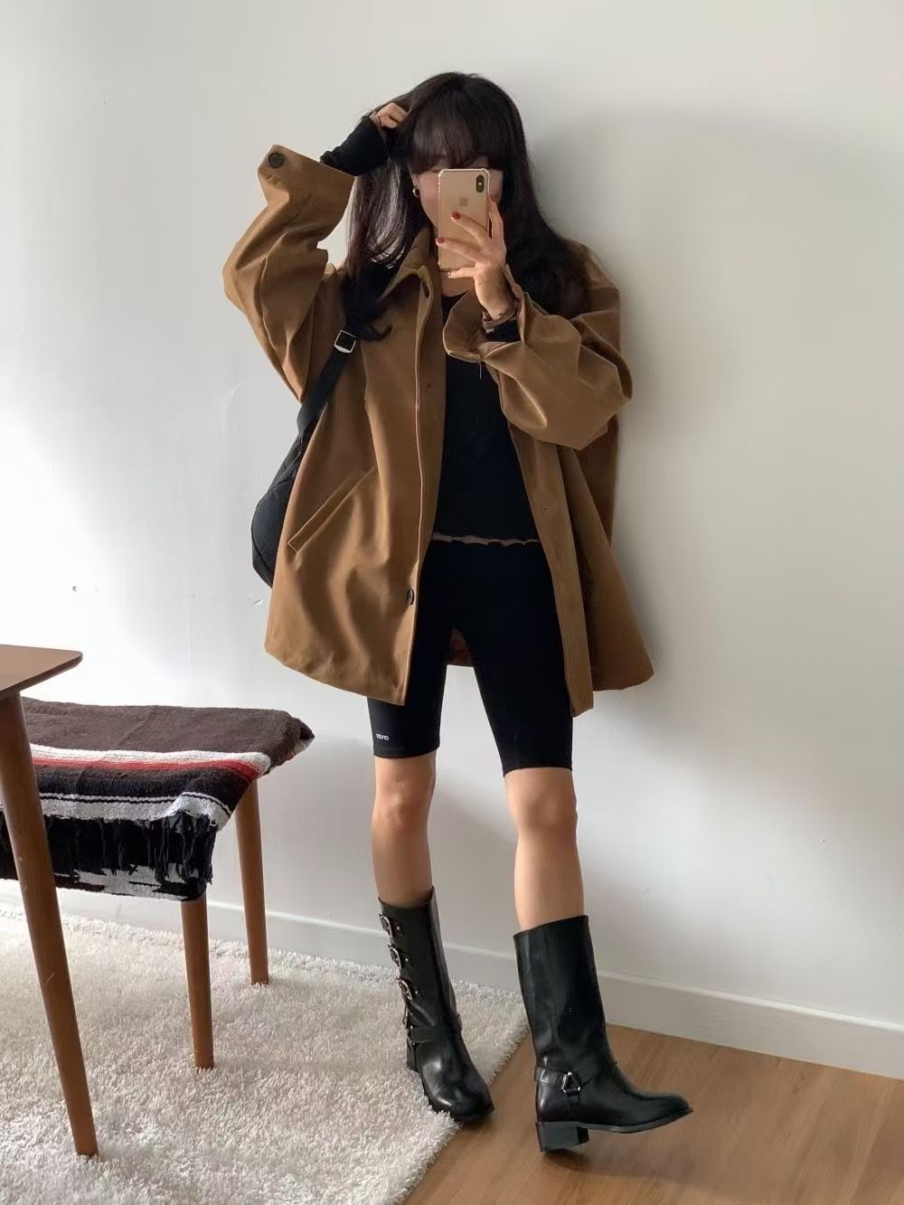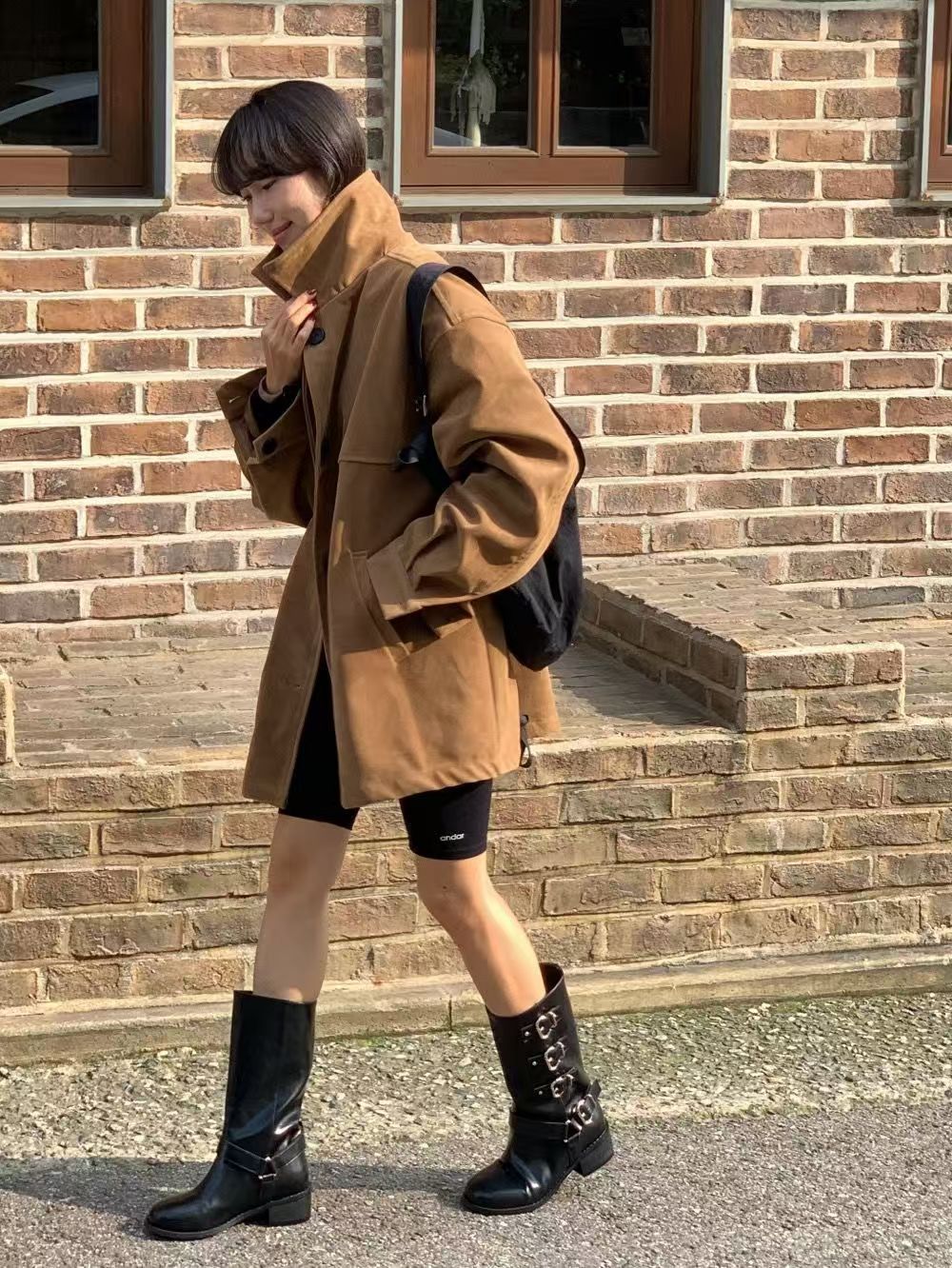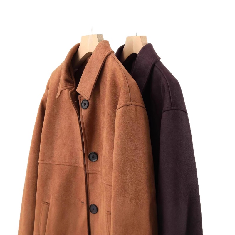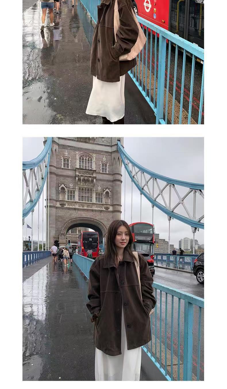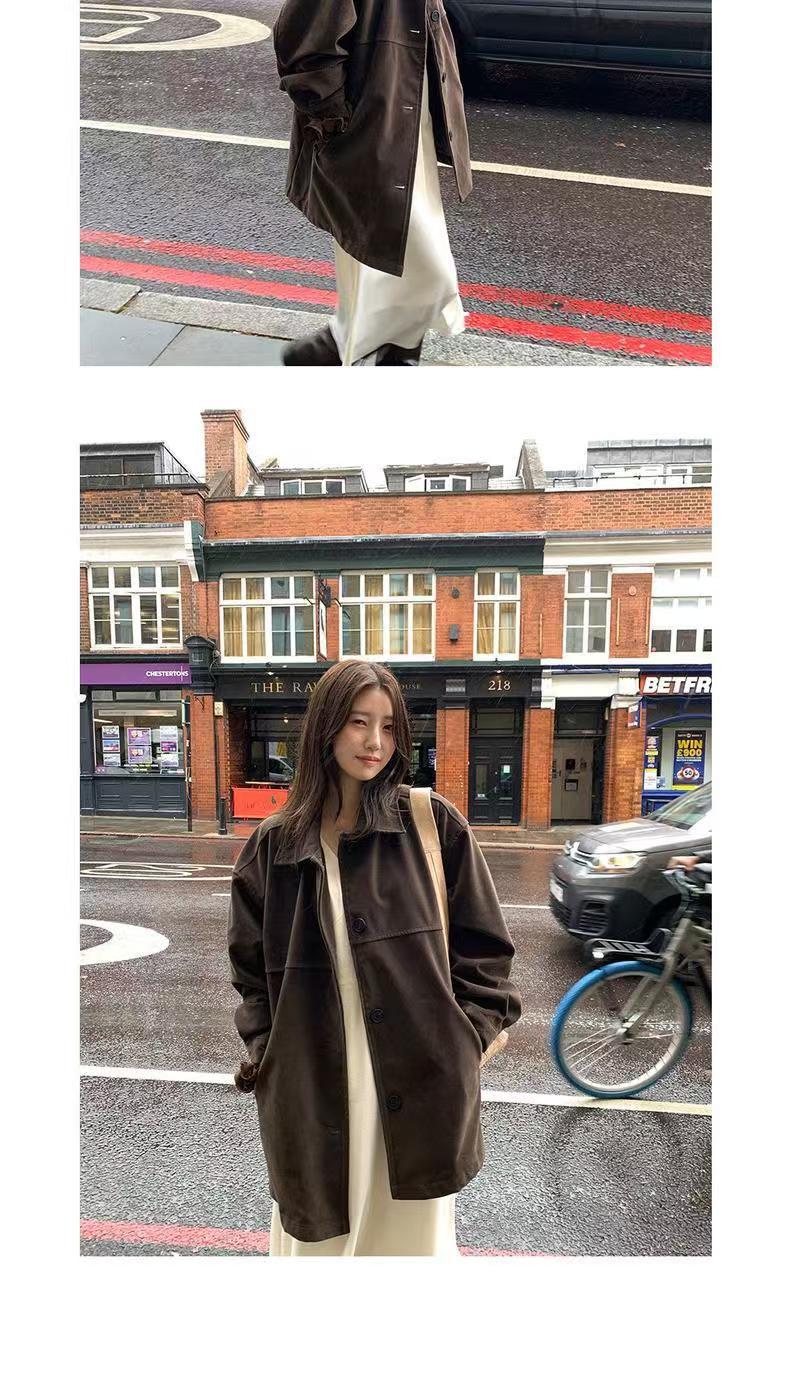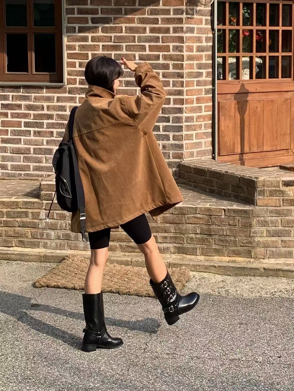 美拉德麂皮绒外套女韩国复古翻领宽松慵懒显瘦秋冬时髦长袖风衣女