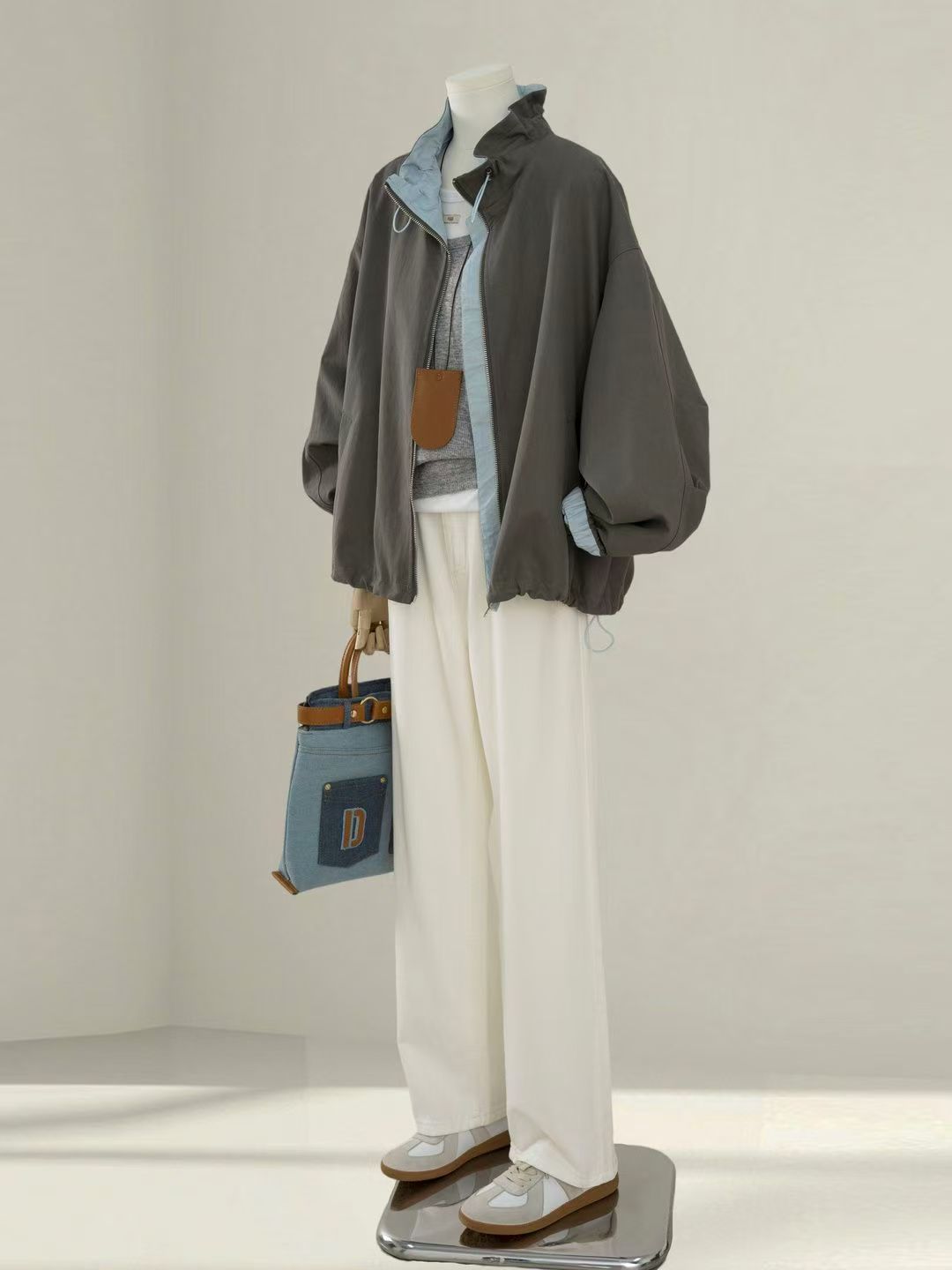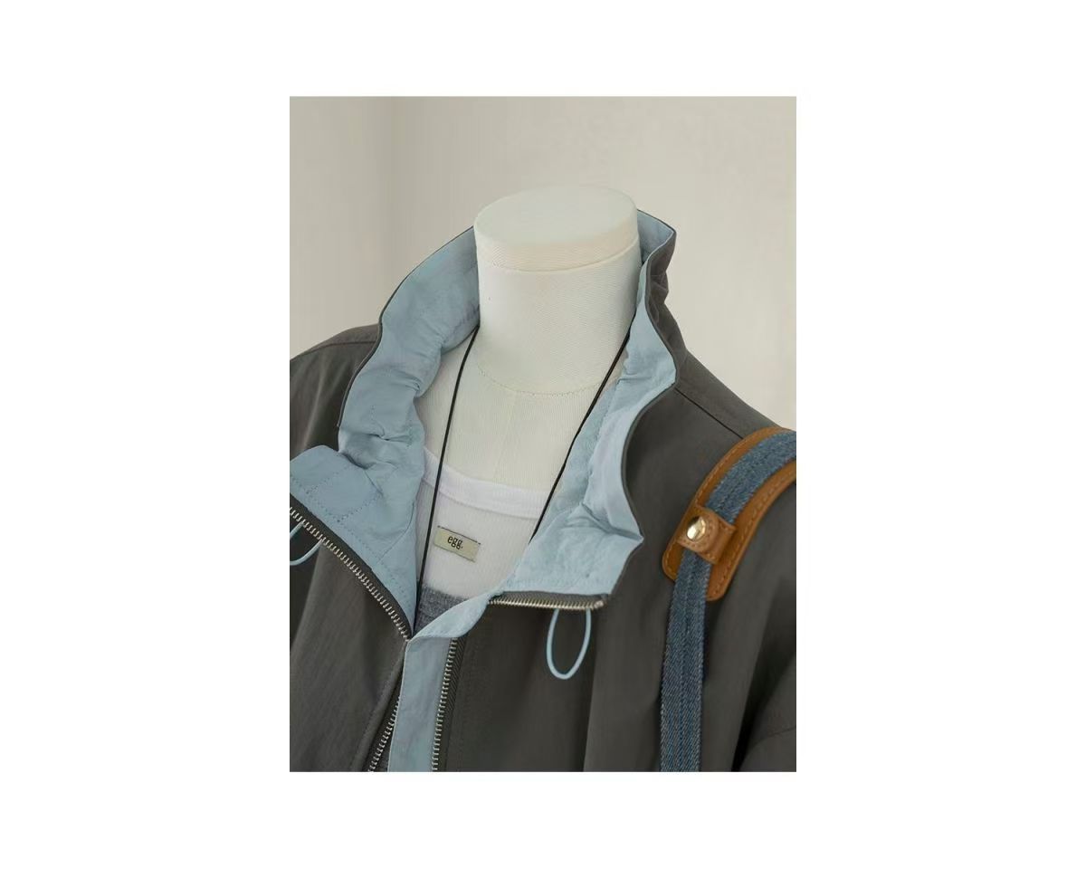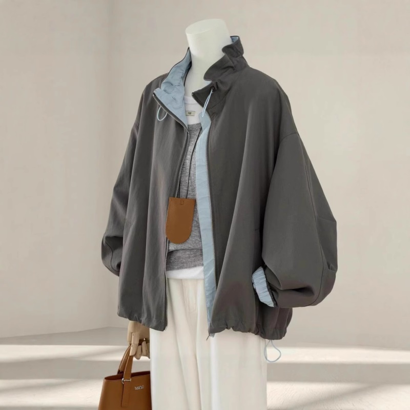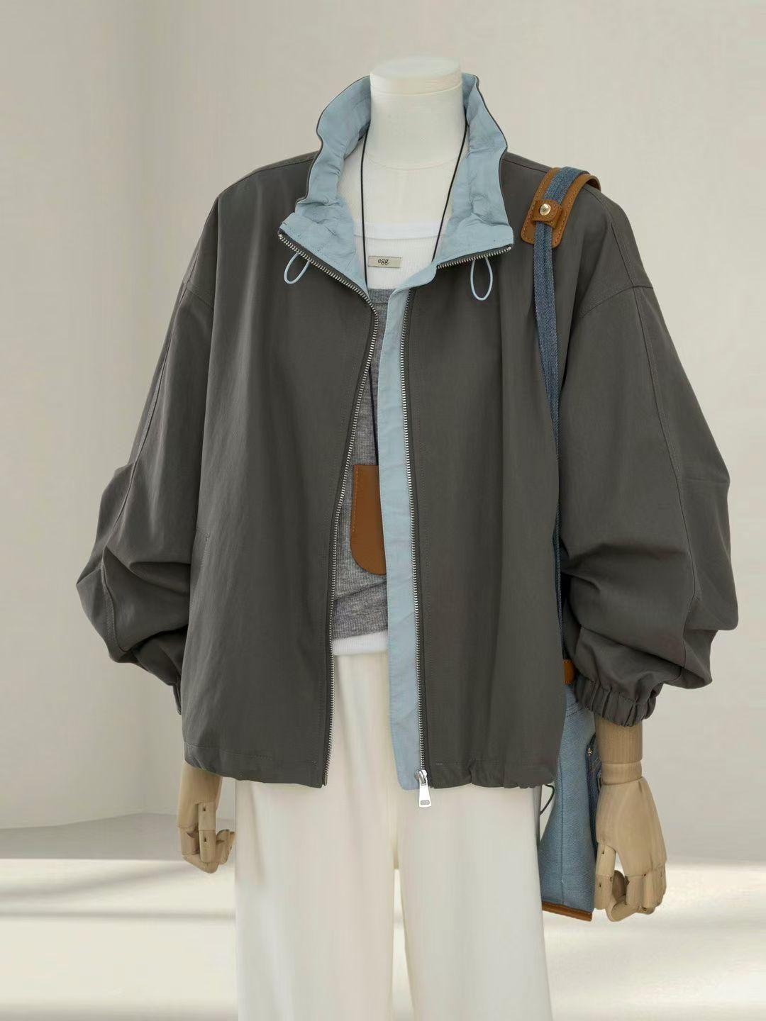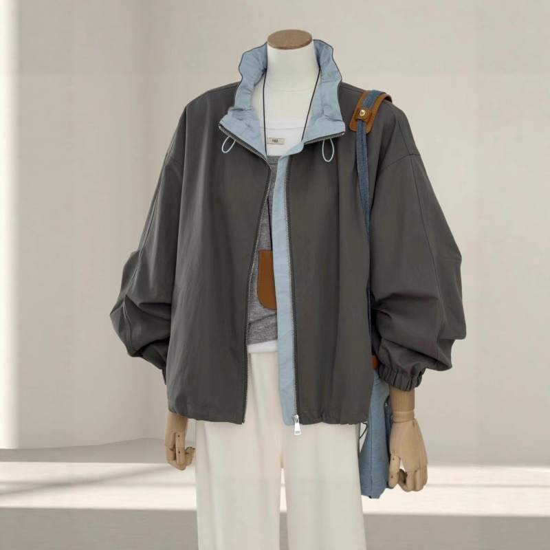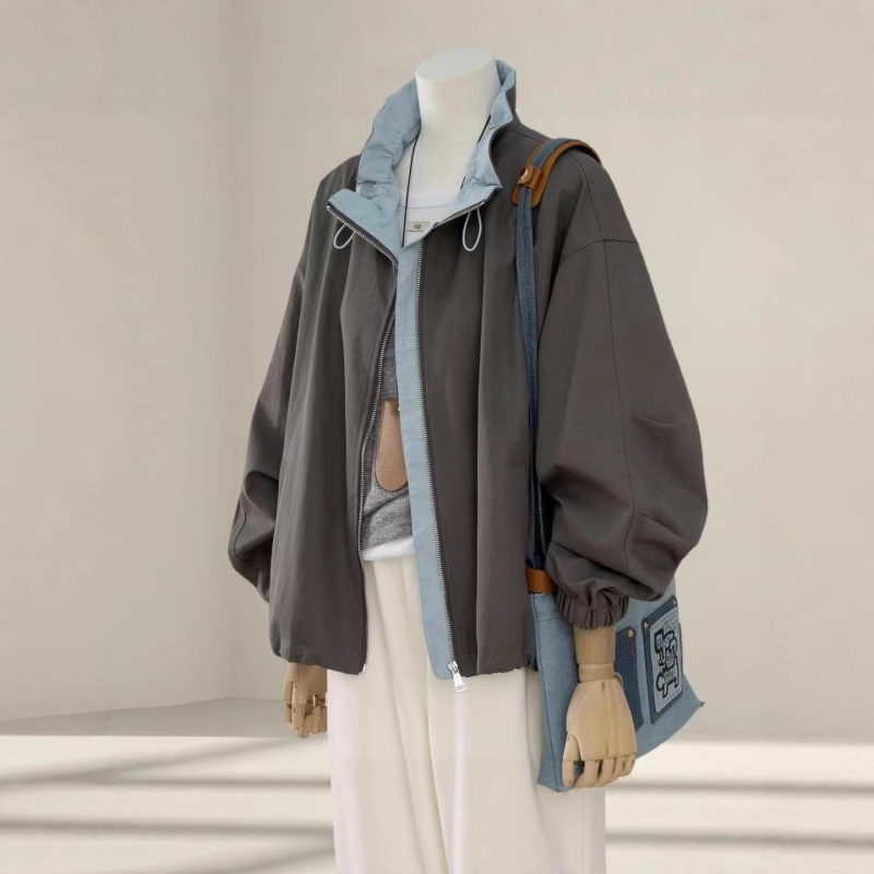 商品名称:高级感韩系慵懒风立领工装外套女小个子2026秋季新款休闲短款夹克