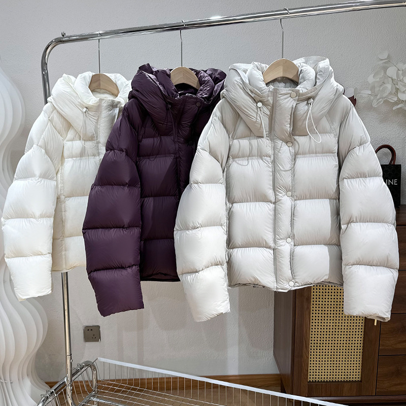 商品名称:云朵感泡芙鹅绒服女短款2026新款90白鹅绒加厚保暖连帽面包服外套