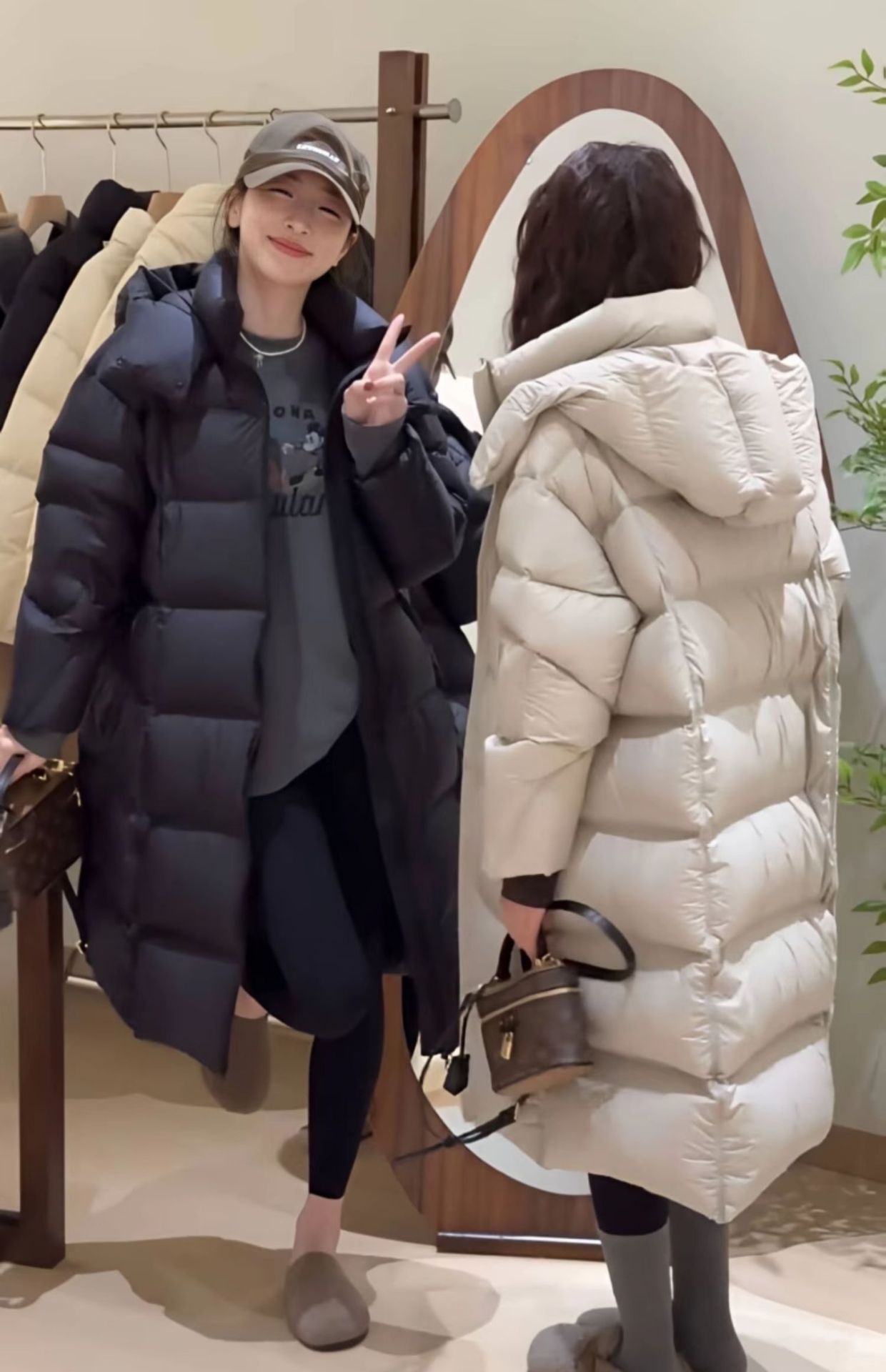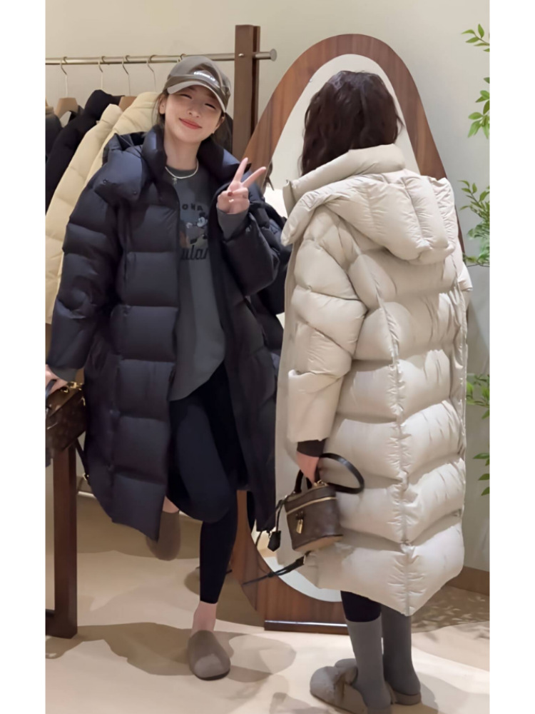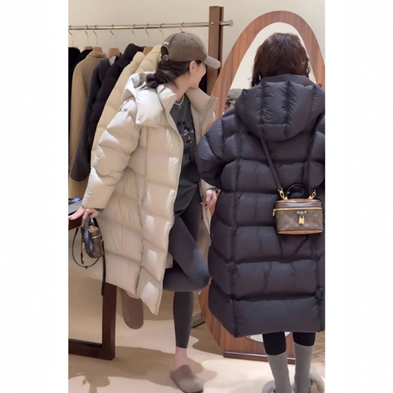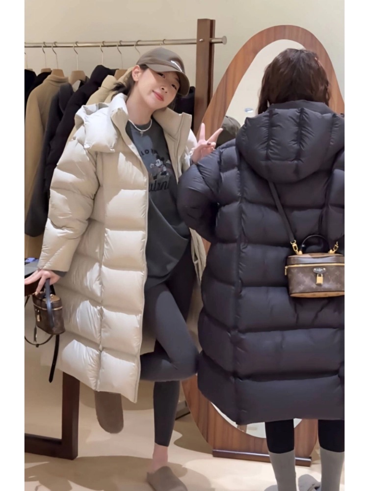 ~爆款连帽鹅绒服2026年女冬韩系加厚宽松过膝长款白鹅绒保暖外套
