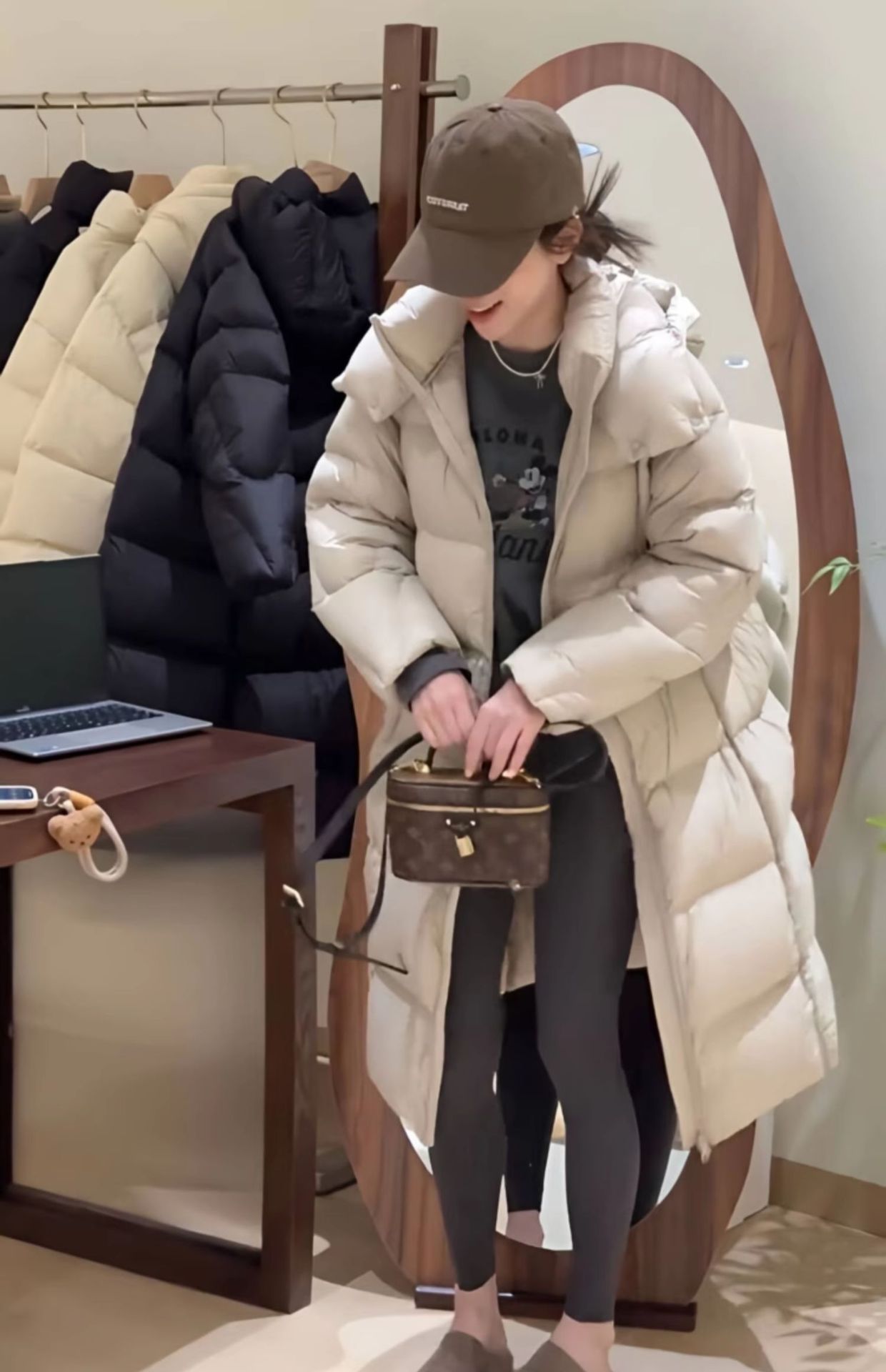商品名称:~爆款连帽鹅绒服2026年女冬韩系加厚宽松过膝长款白鹅绒保暖外套