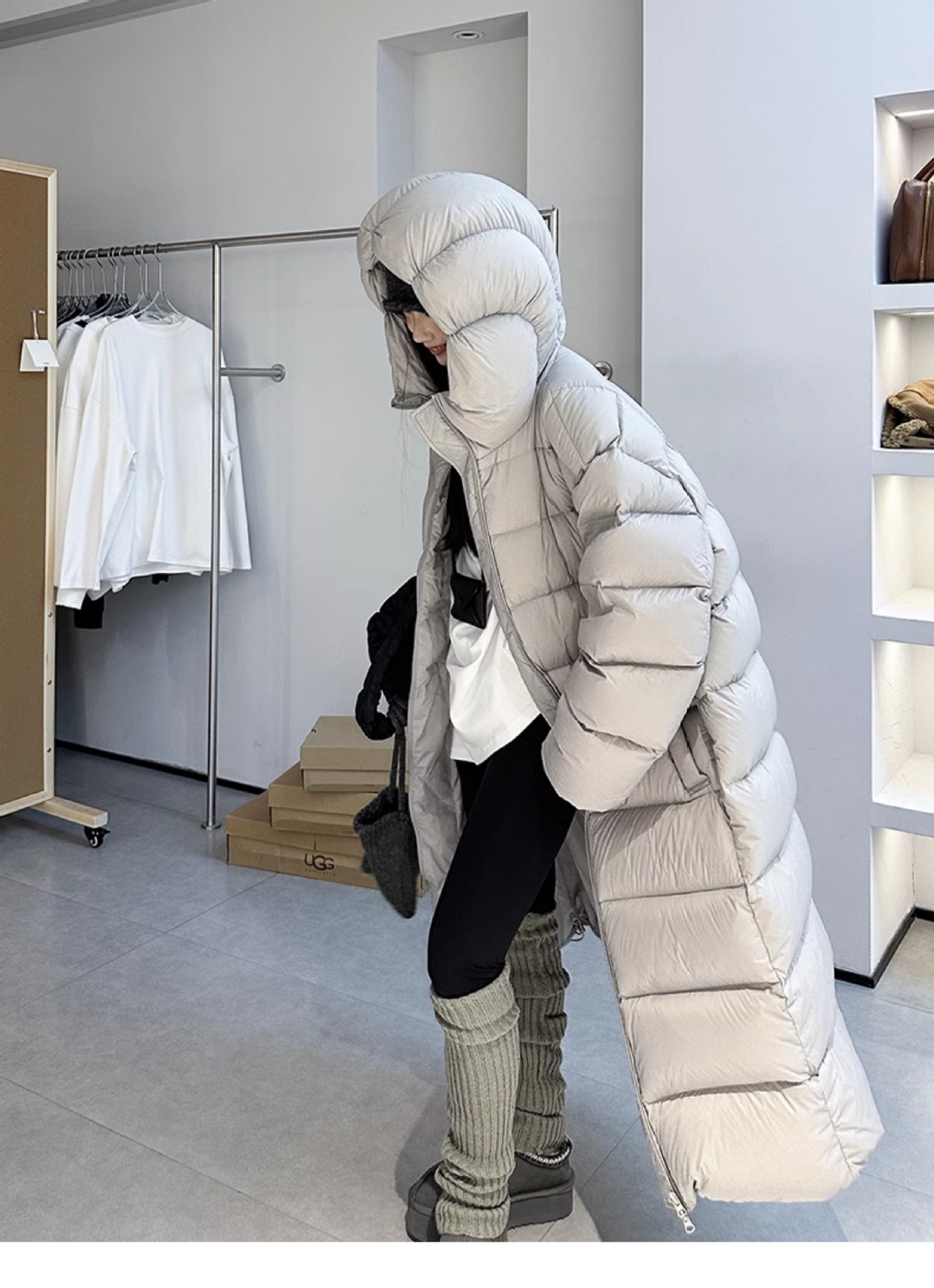 90白鹅绒2026爆款超轻加厚章鱼帽云朵泡芙羽绒服女长款过膝到脚踝