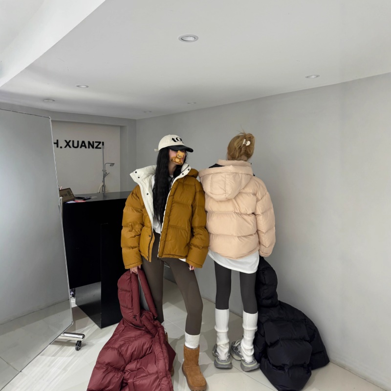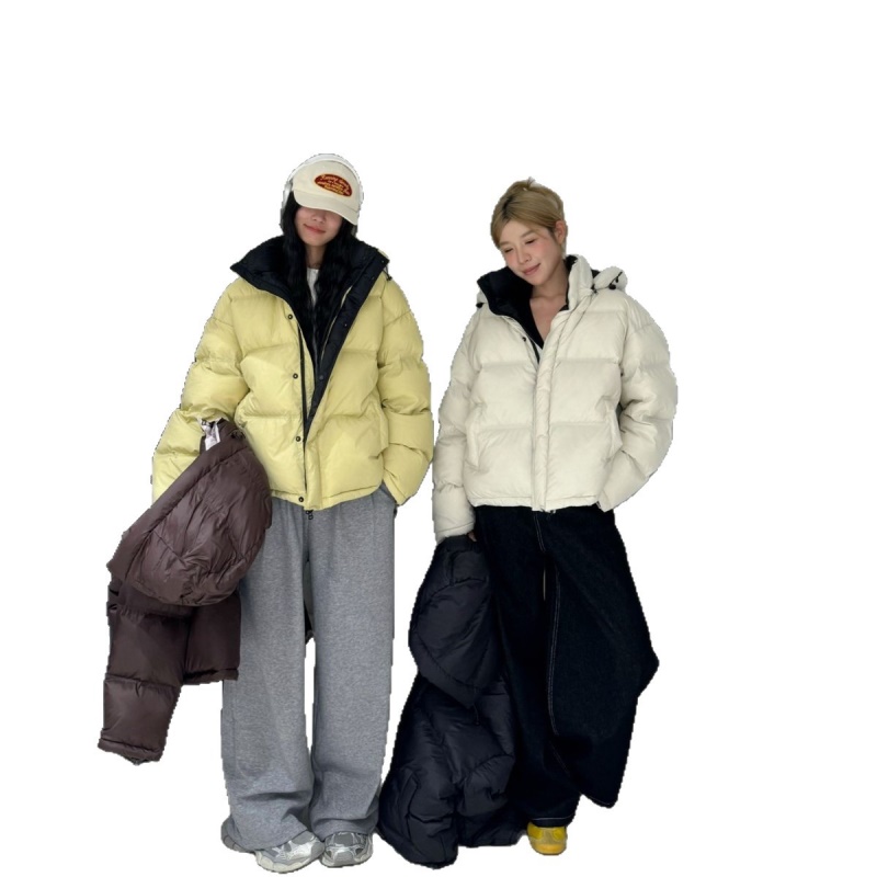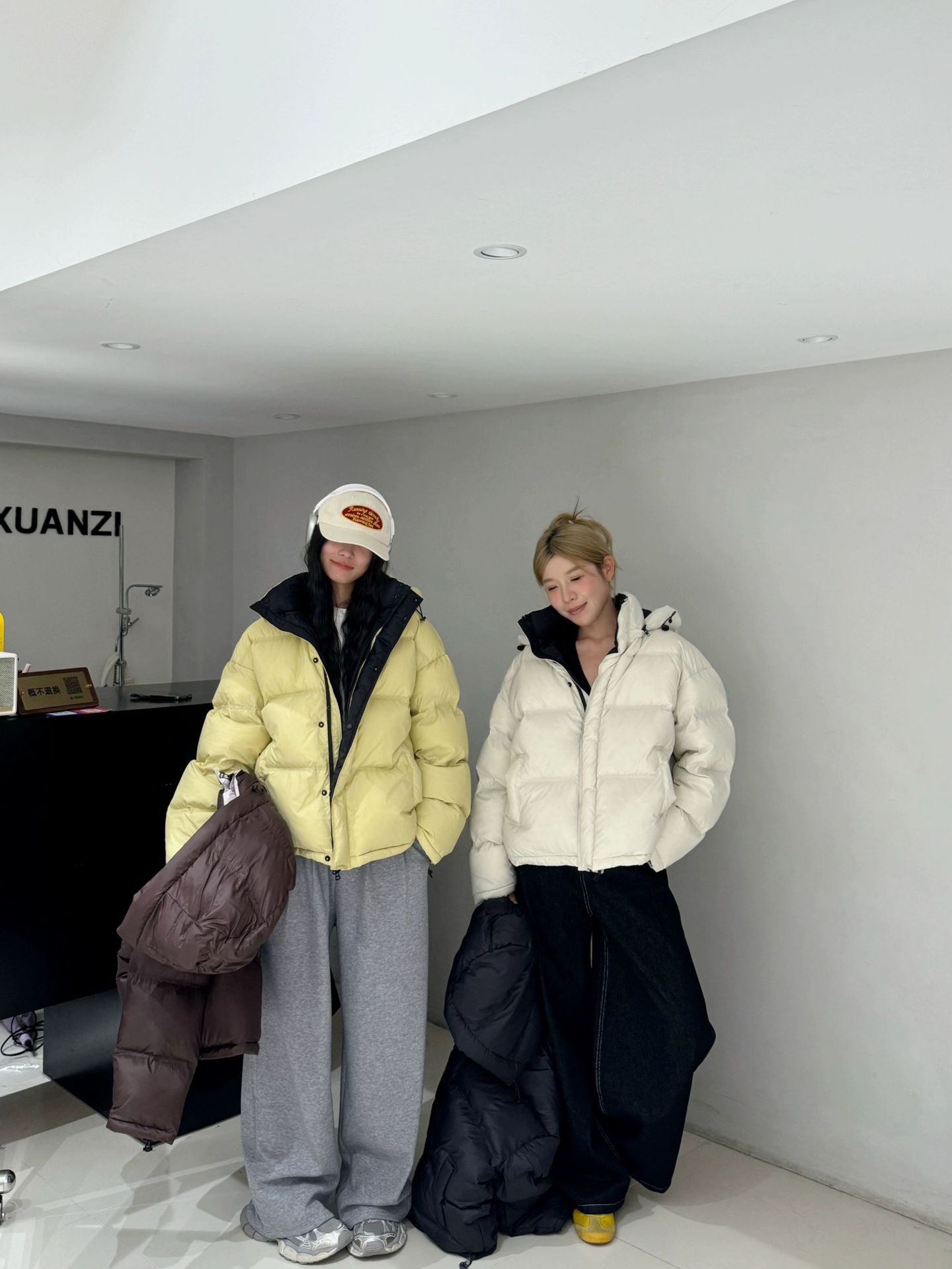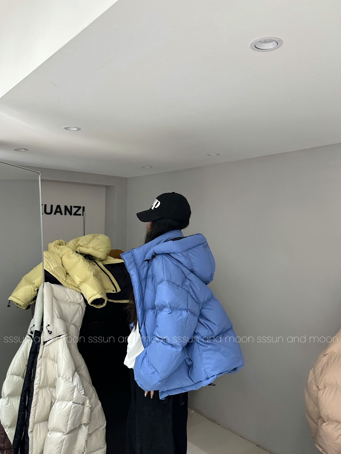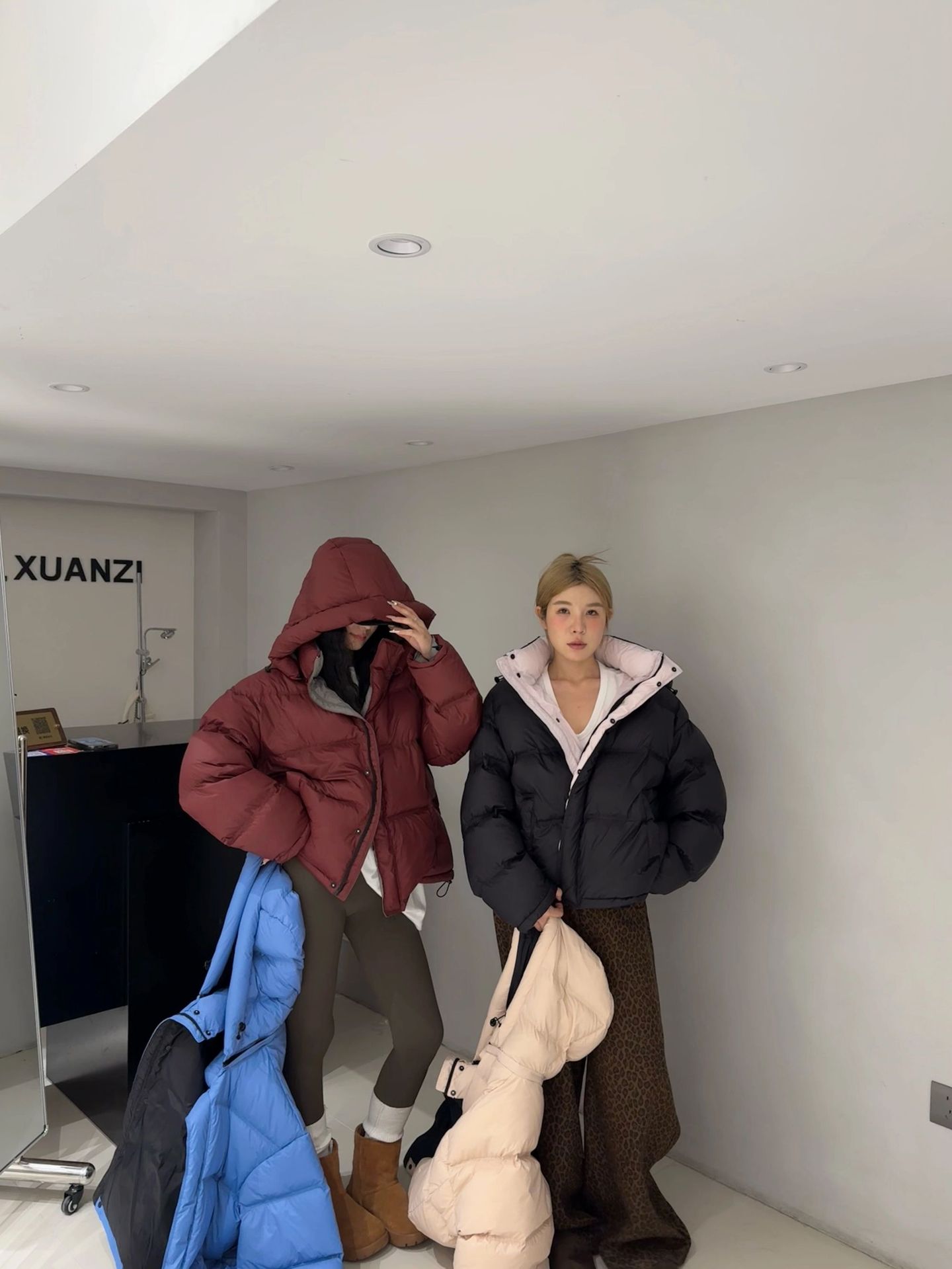商品名称:韩国原版撞色鹅绒服女2026冬新款宽松加厚短款连帽糖果色外套潮
