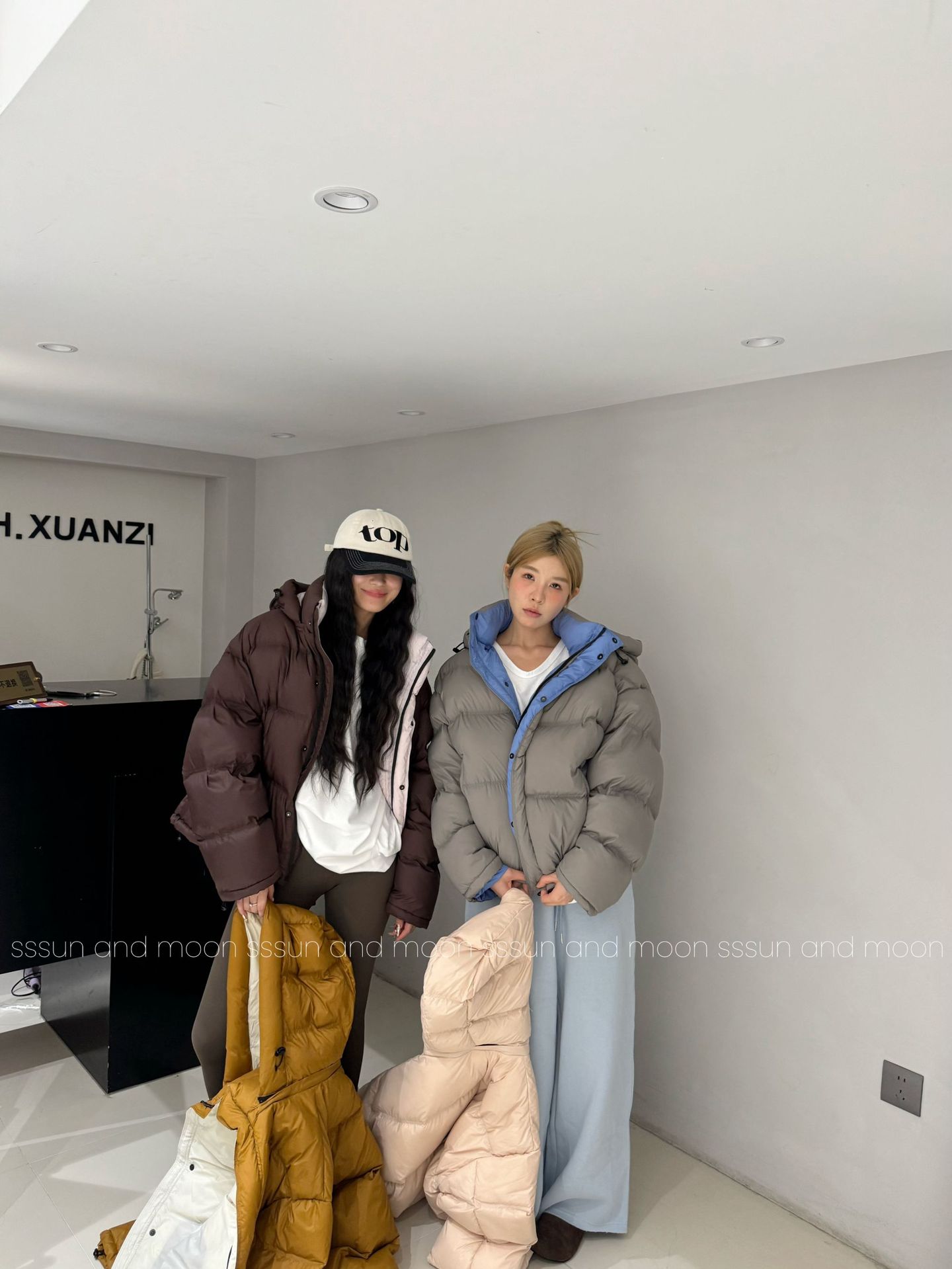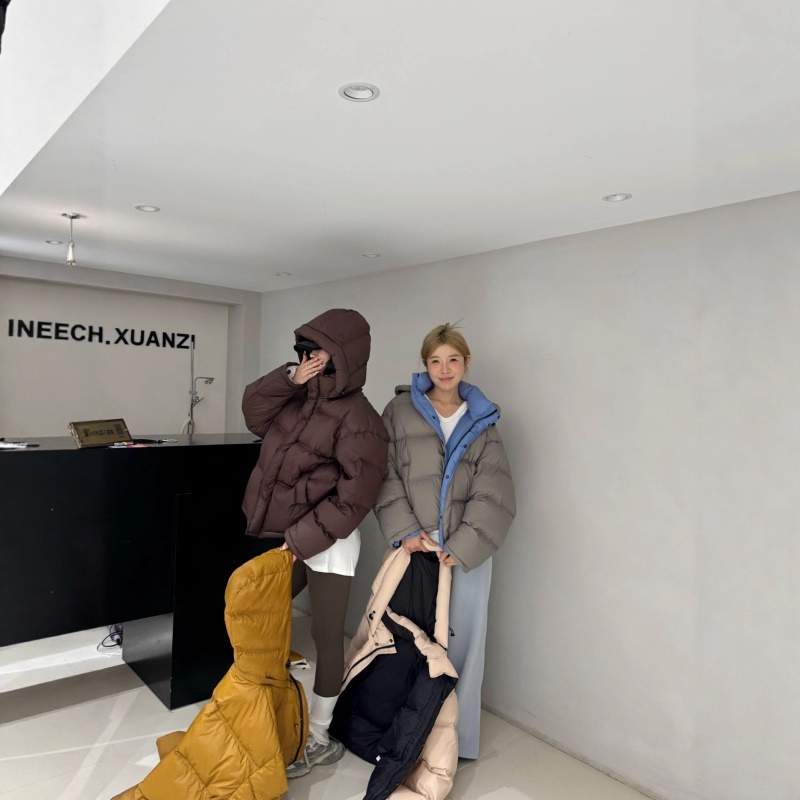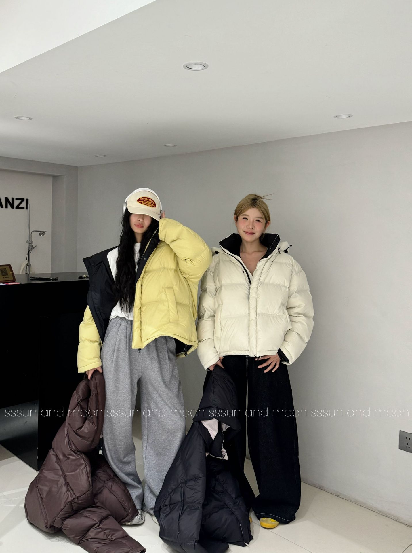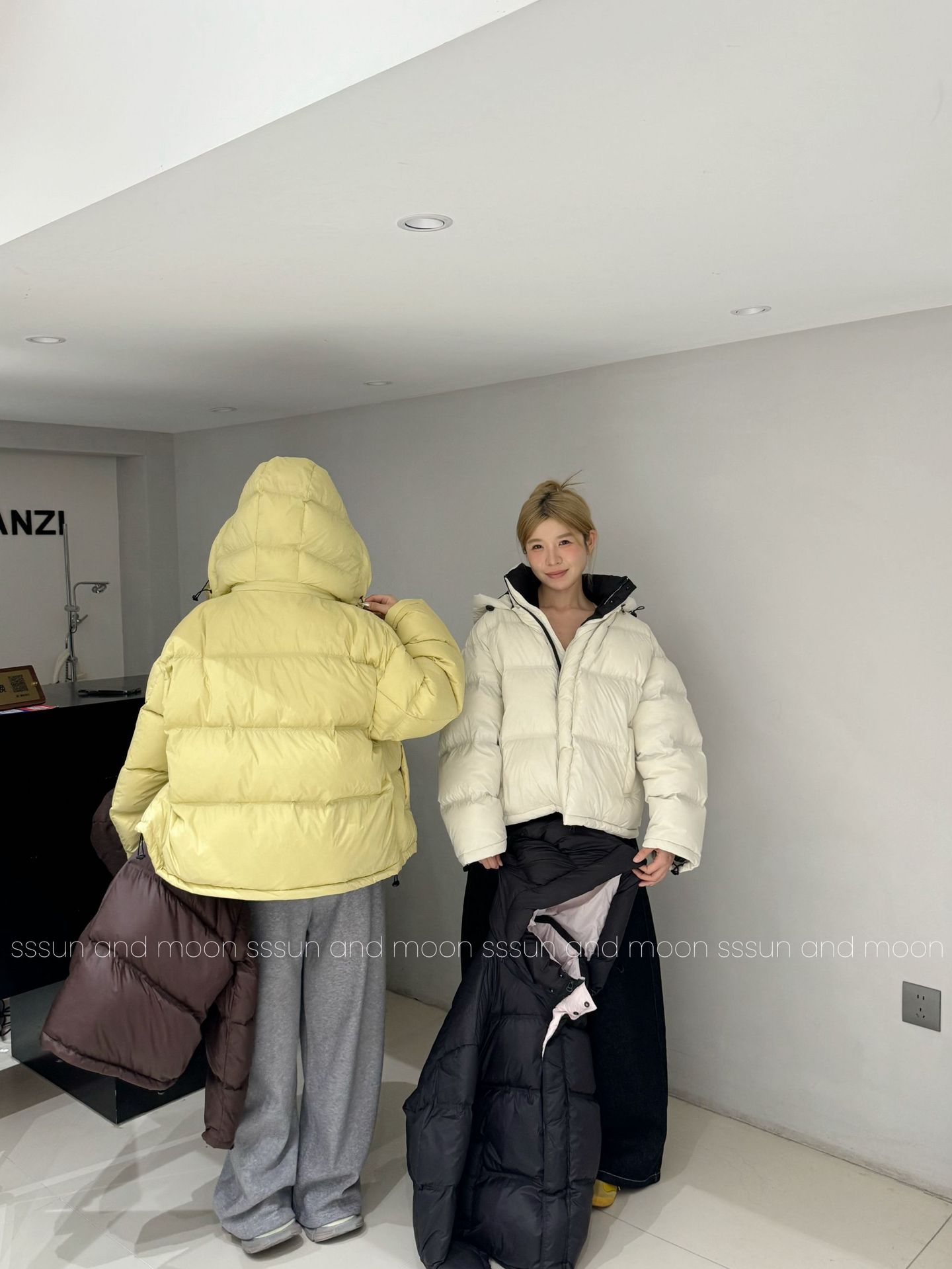商品名称:韩国原版撞色鹅绒服女2026冬新款宽松加厚短款连帽糖果色外套潮