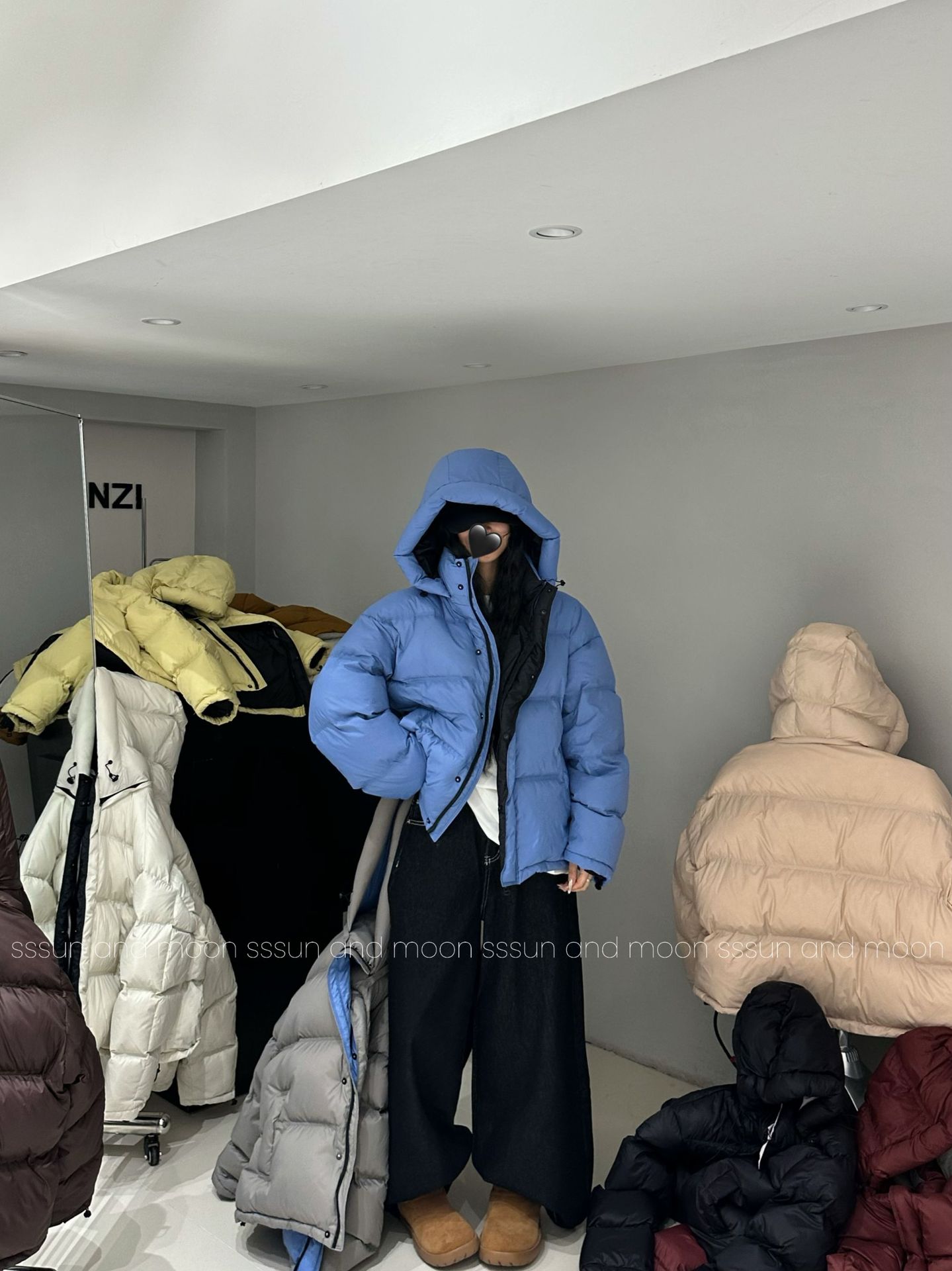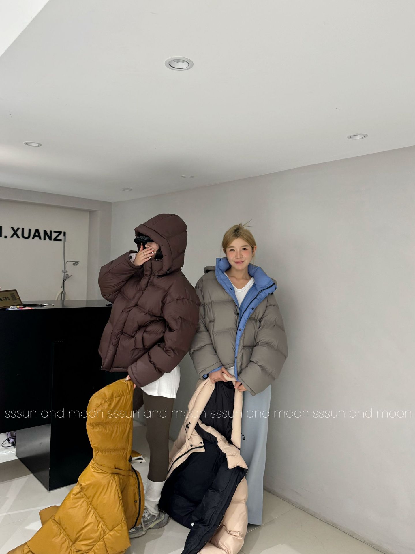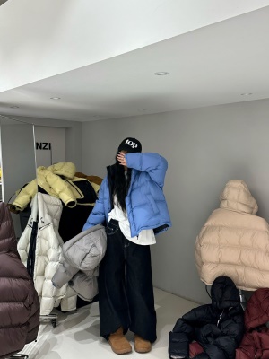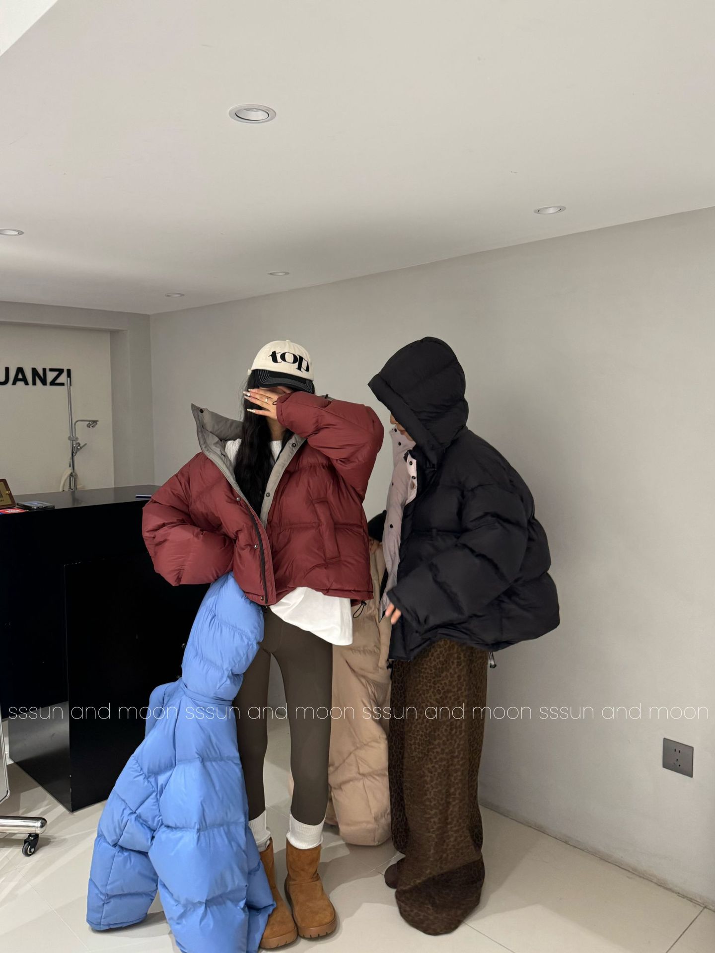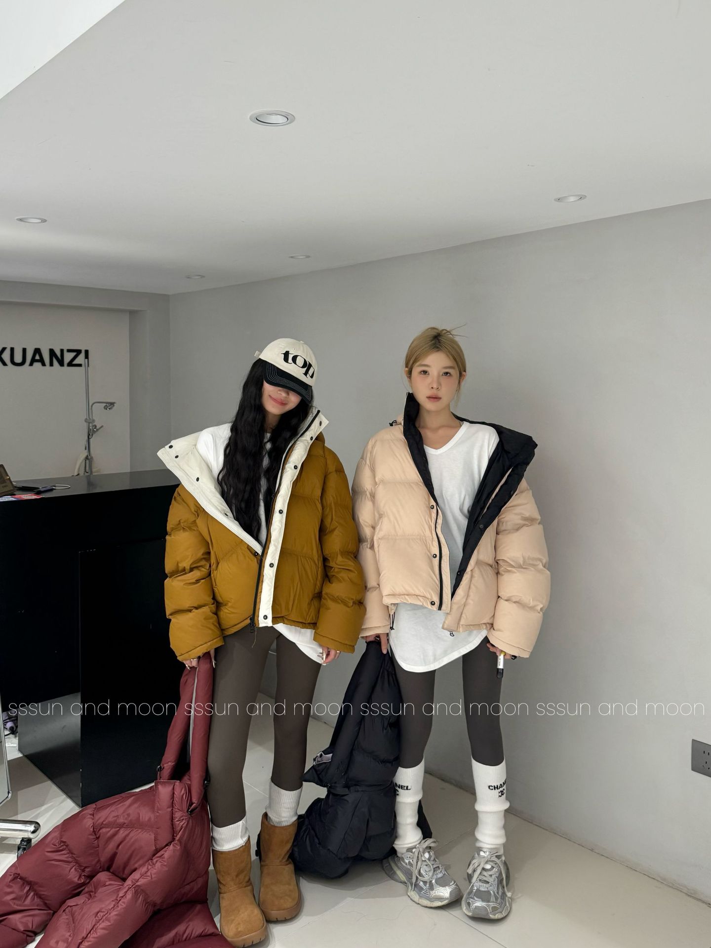 商品名称:韩国原版撞色鹅绒服女2026冬新款宽松加厚短款连帽糖果色外套潮