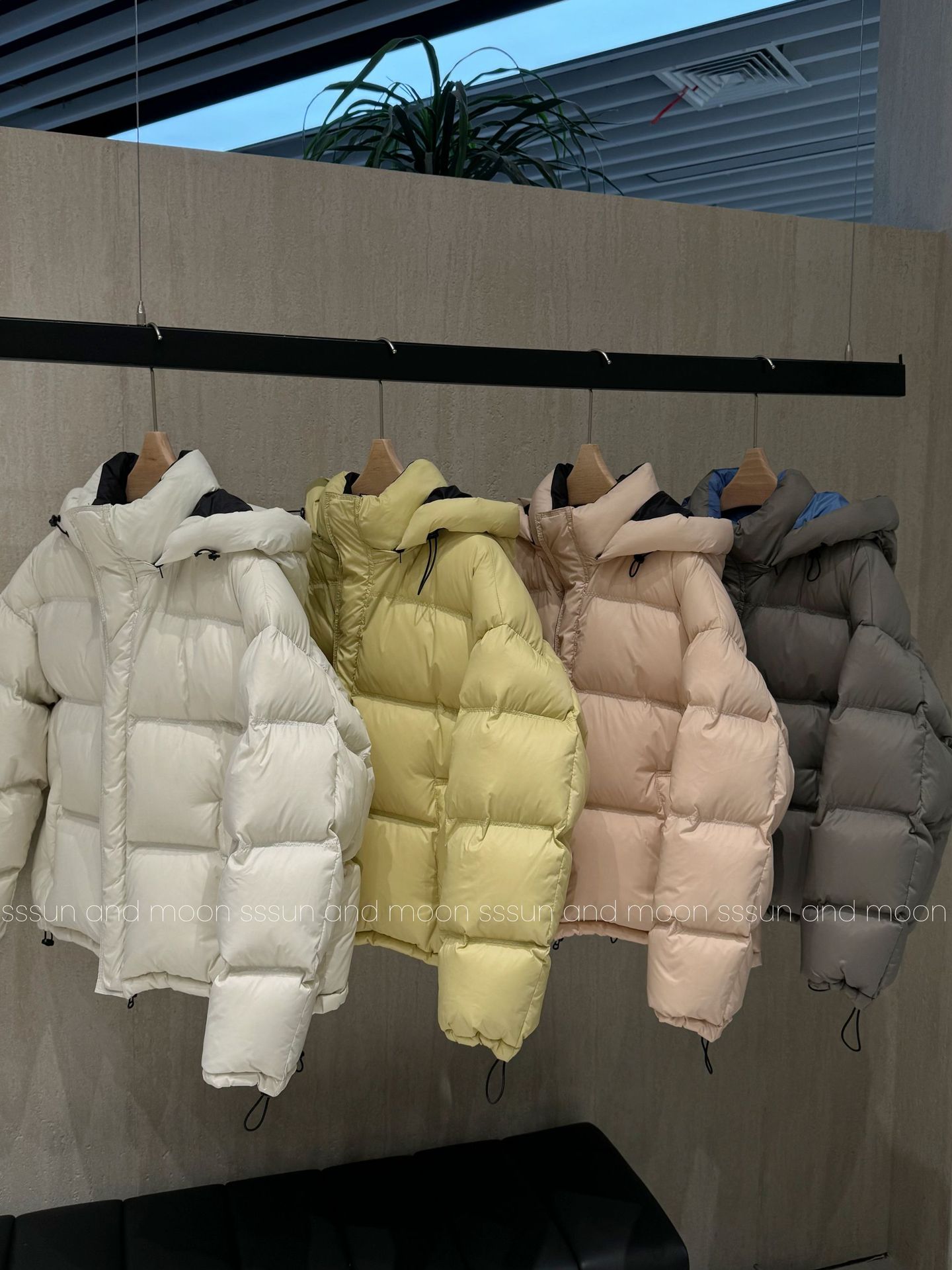 韩国原版撞色鹅绒服女2026冬新款宽松加厚短款连帽糖果色外套潮