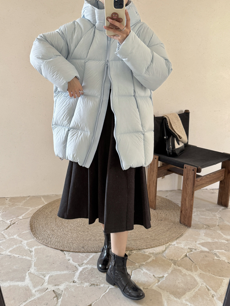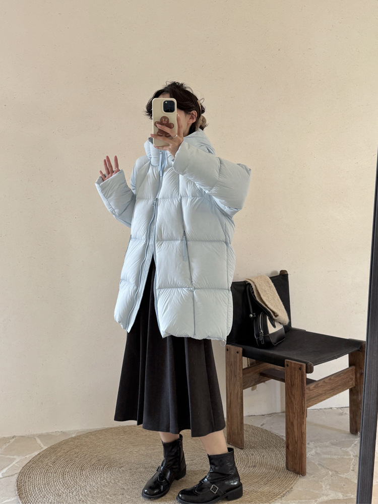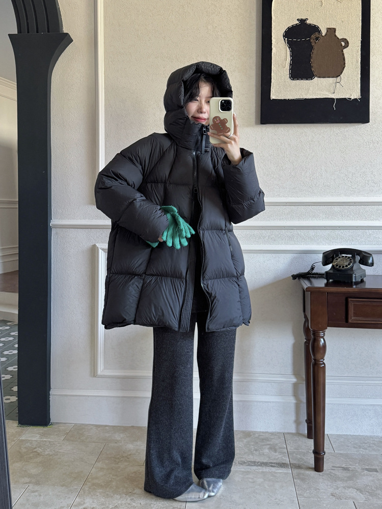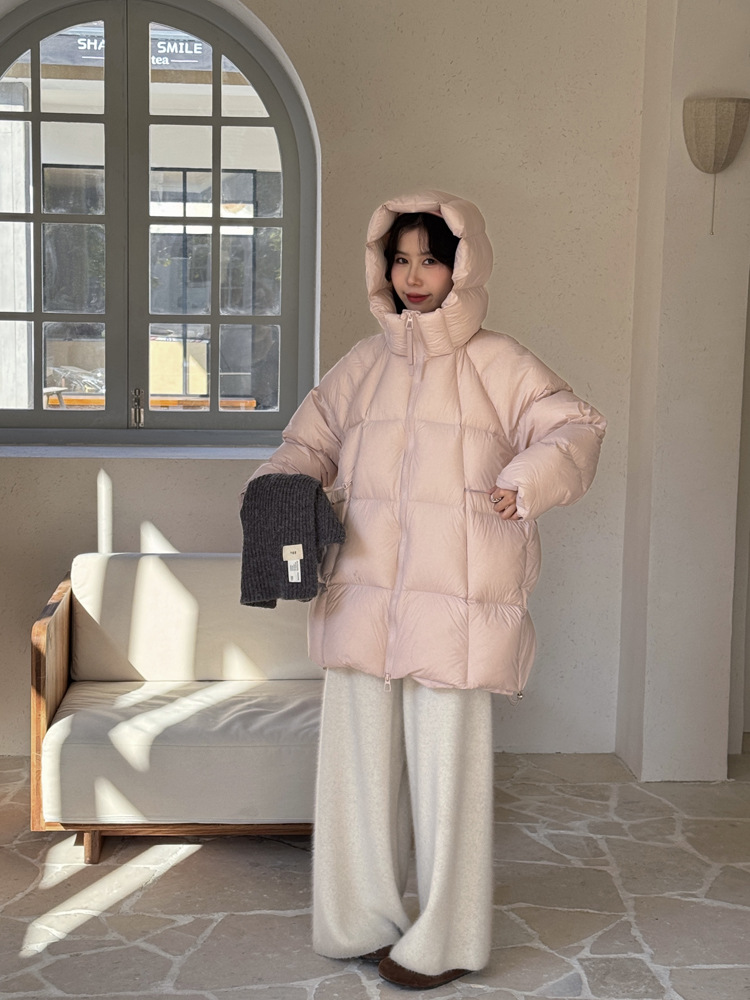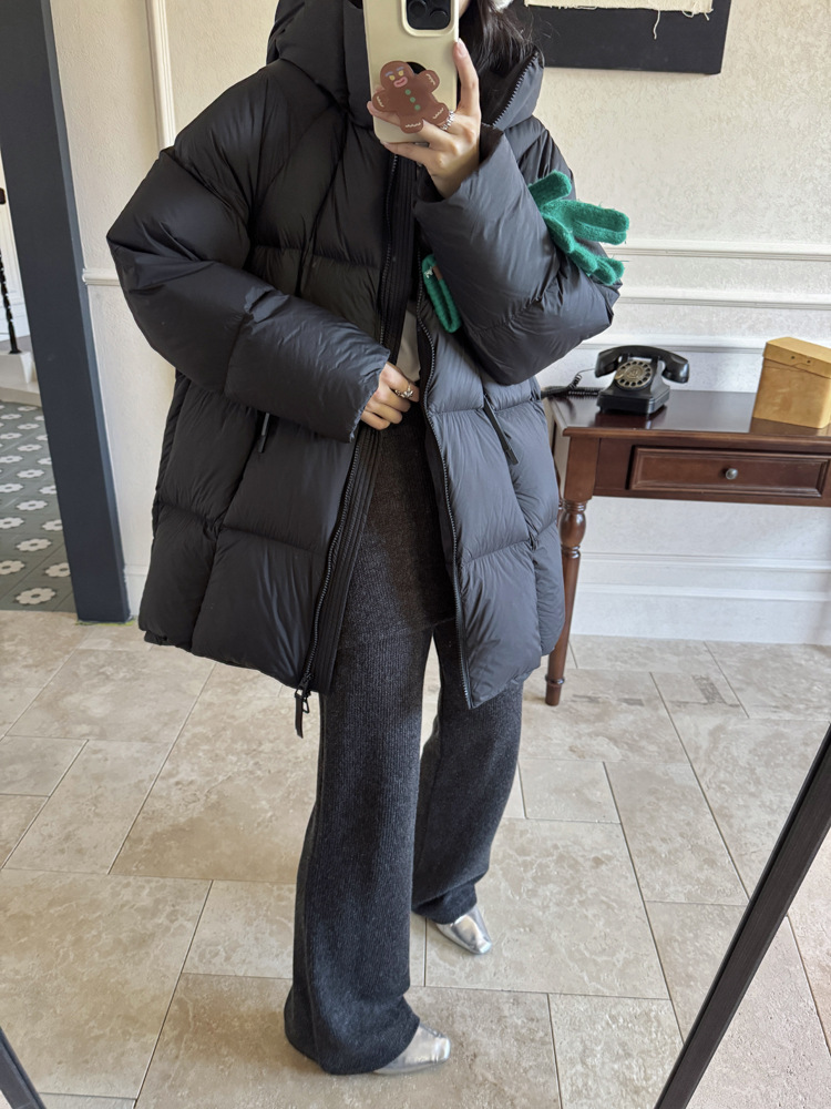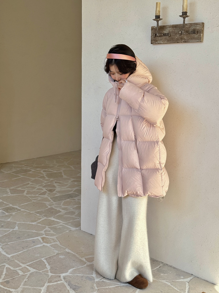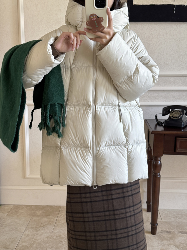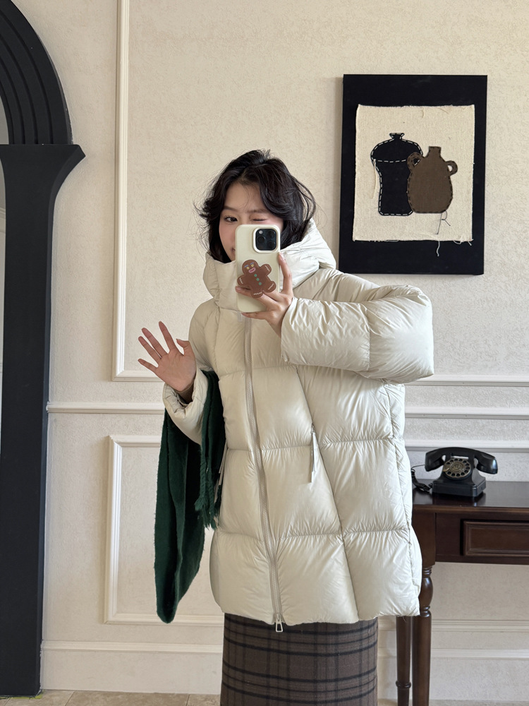 超软泡芙中长款鹅绒服女2026冬季新款90白鹅绒连帽加厚面包服外套