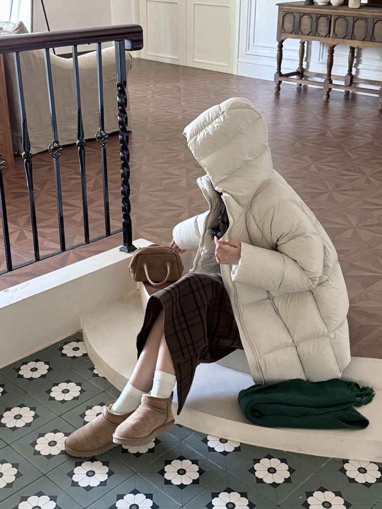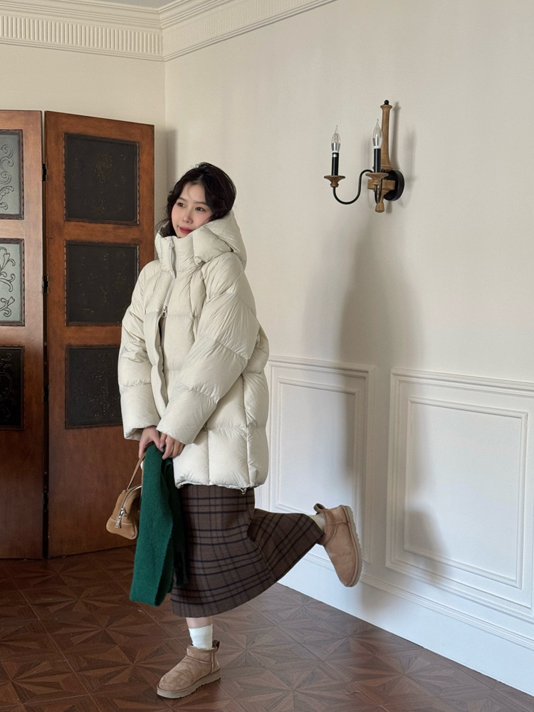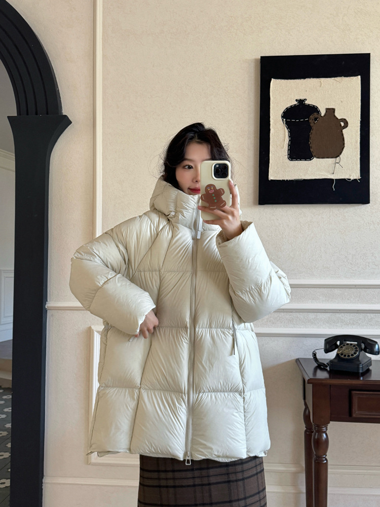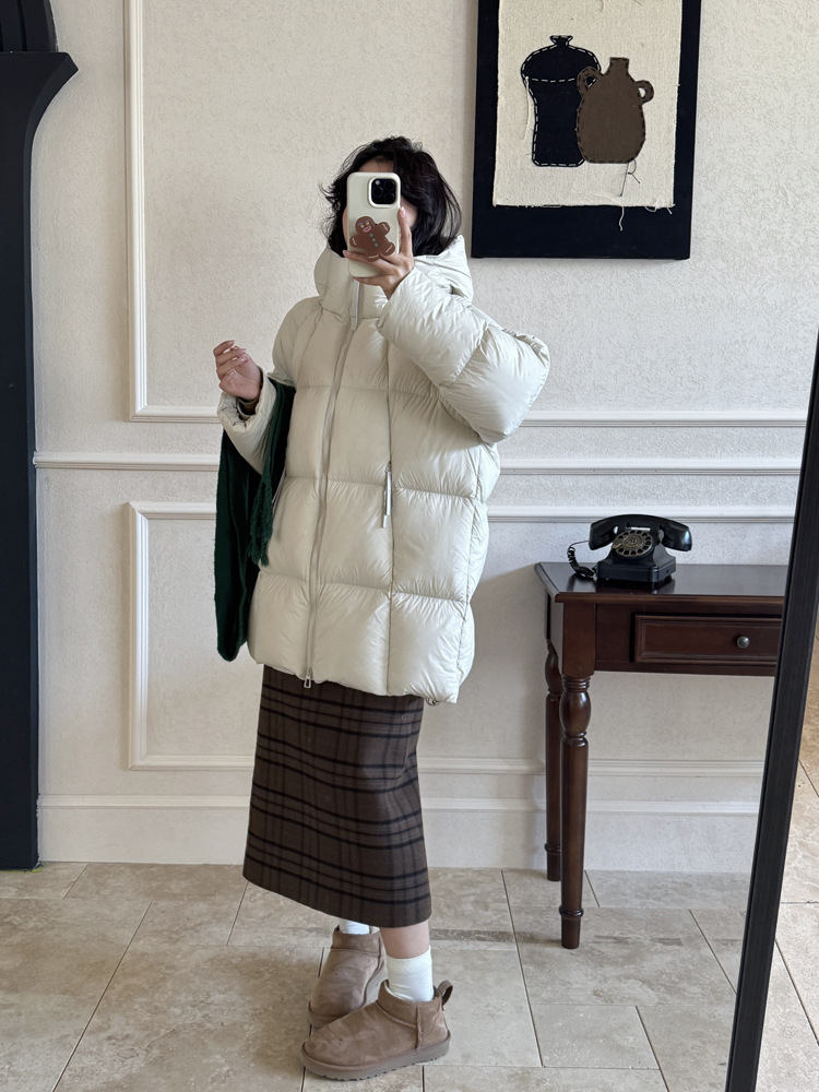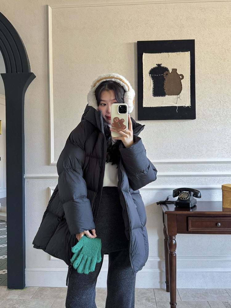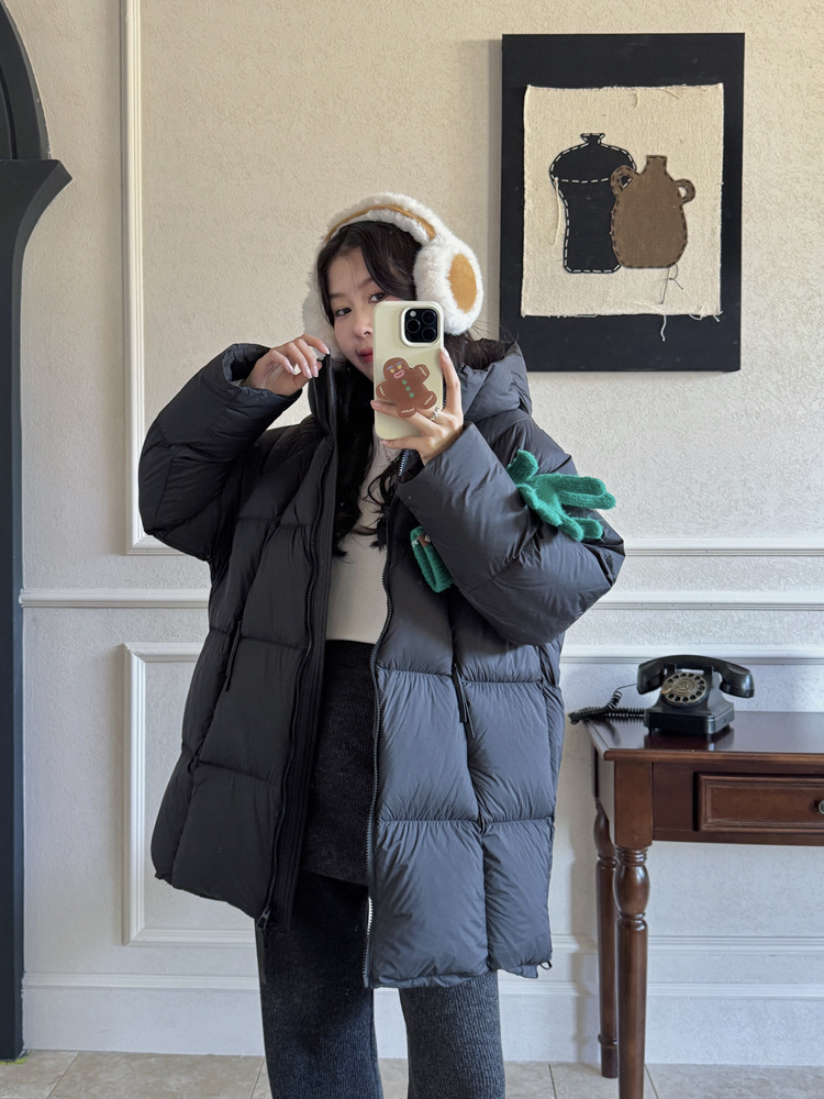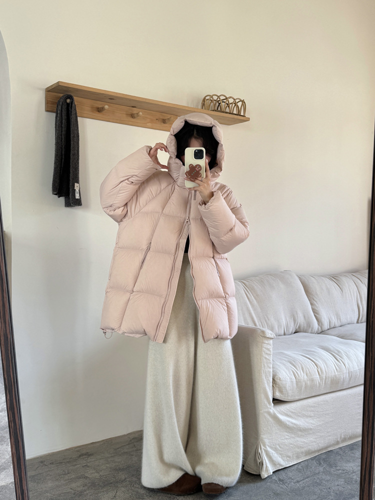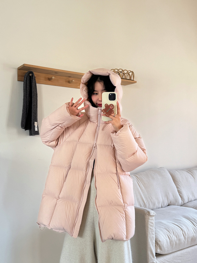 商品名称:超软泡芙中长款鹅绒服女2026冬季新款90白鹅绒连帽加厚面包服外套