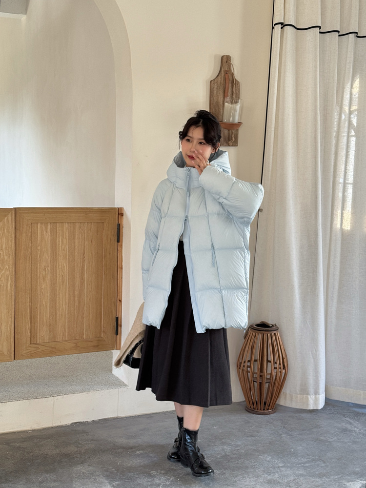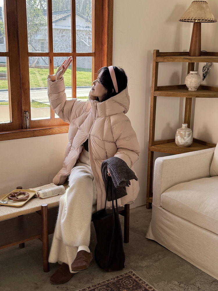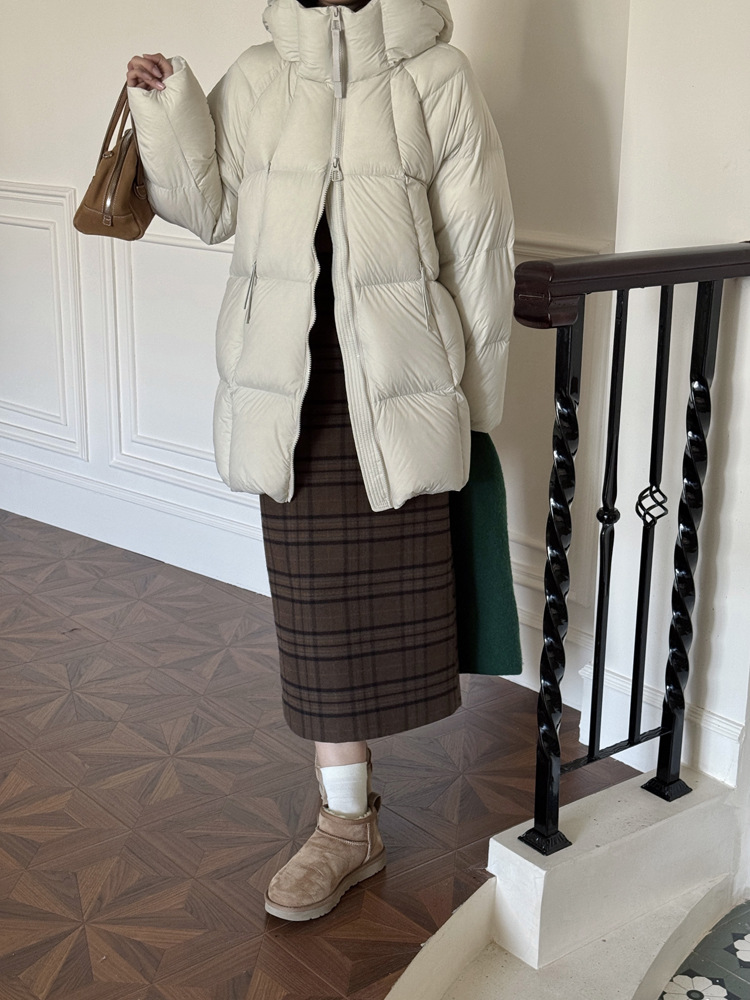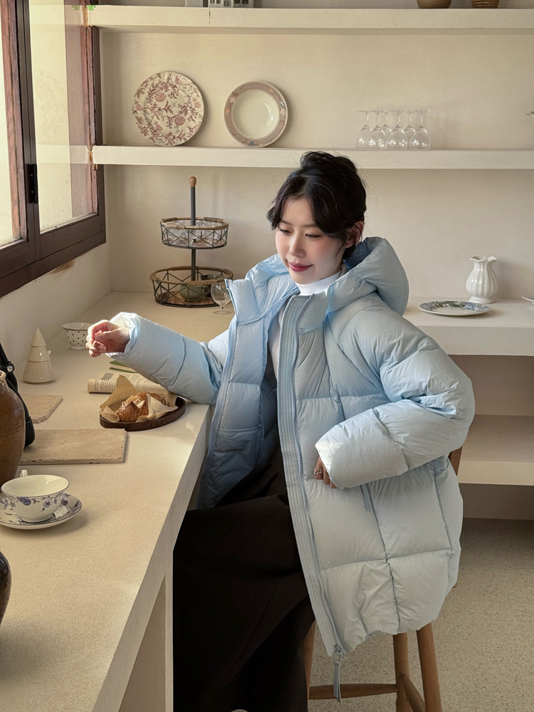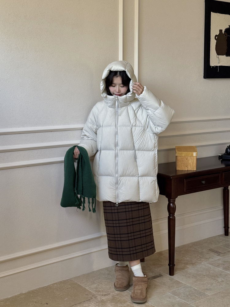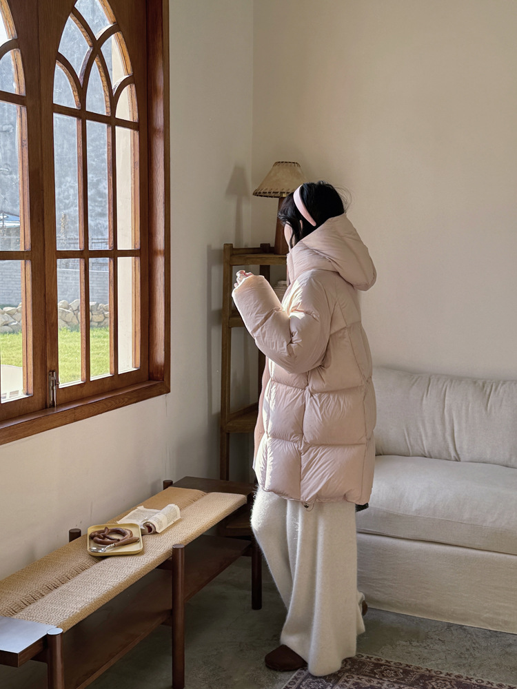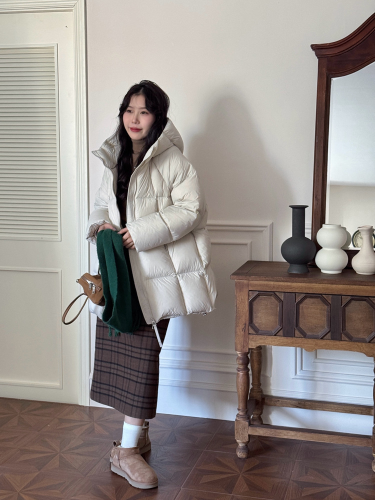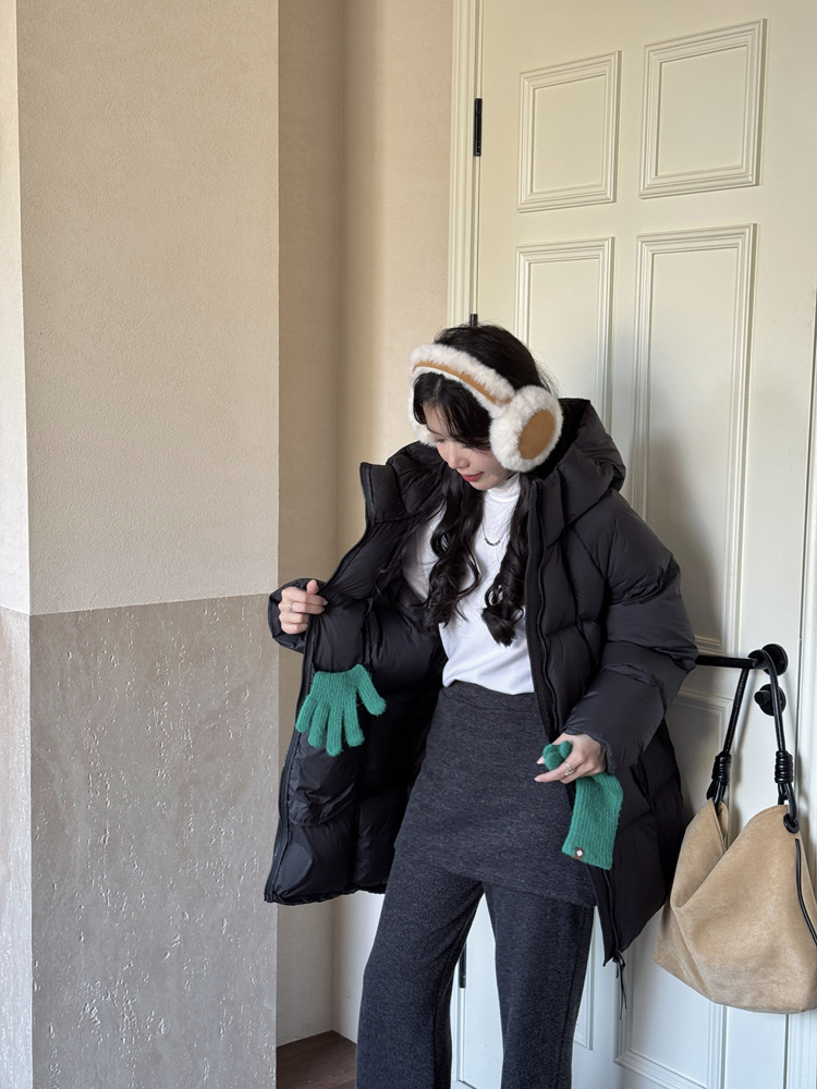 商品名称:超软泡芙中长款鹅绒服女2026冬季新款90白鹅绒连帽加厚面包服外套