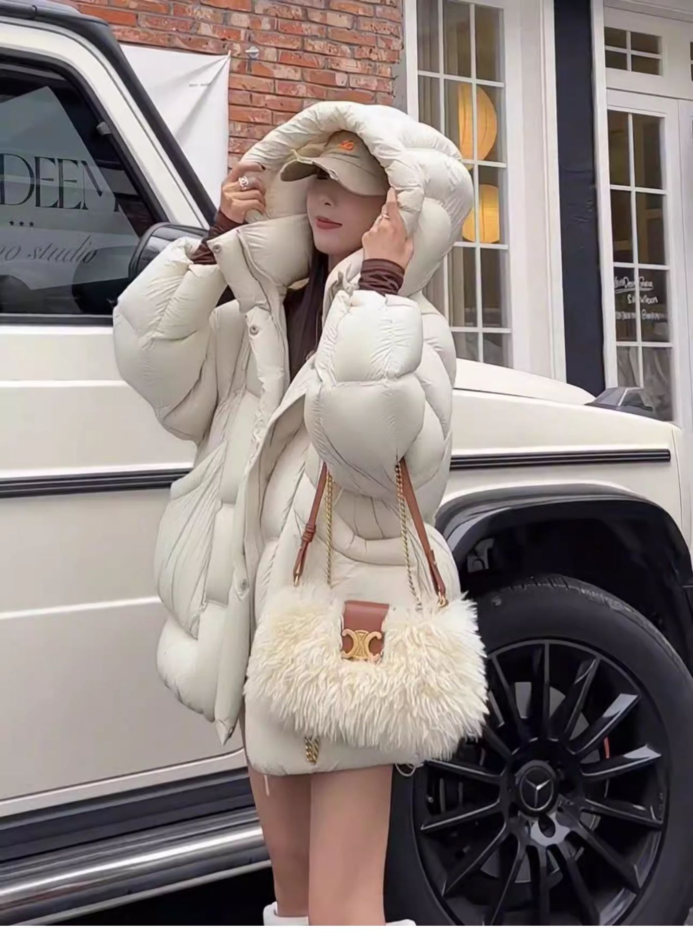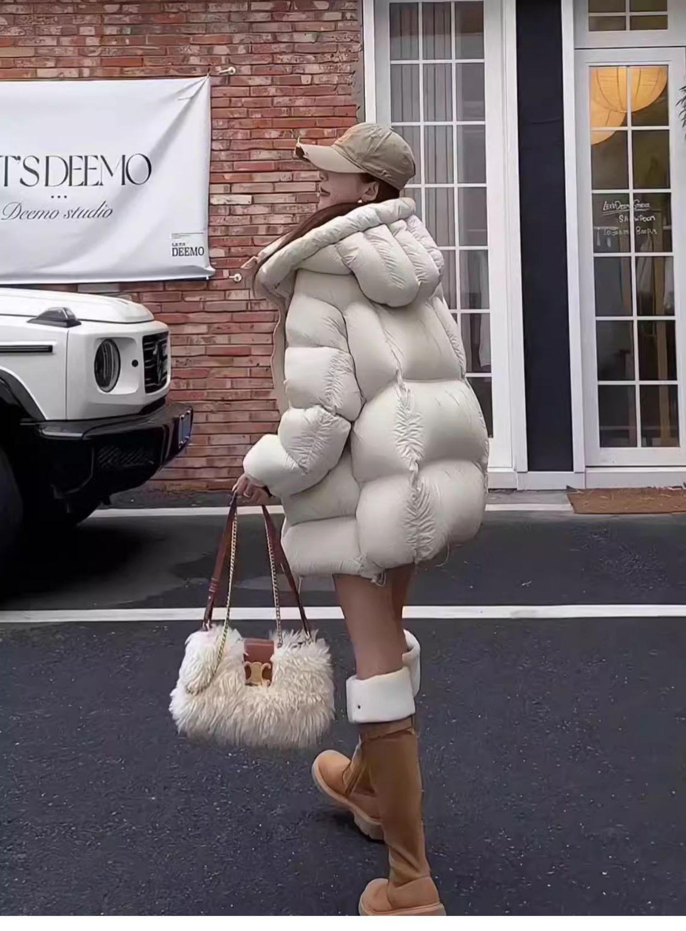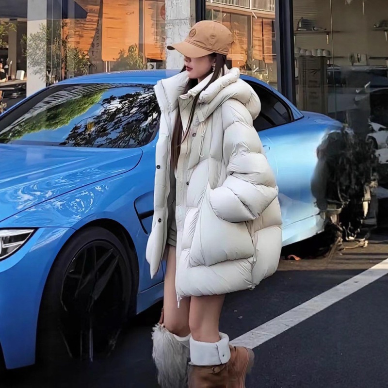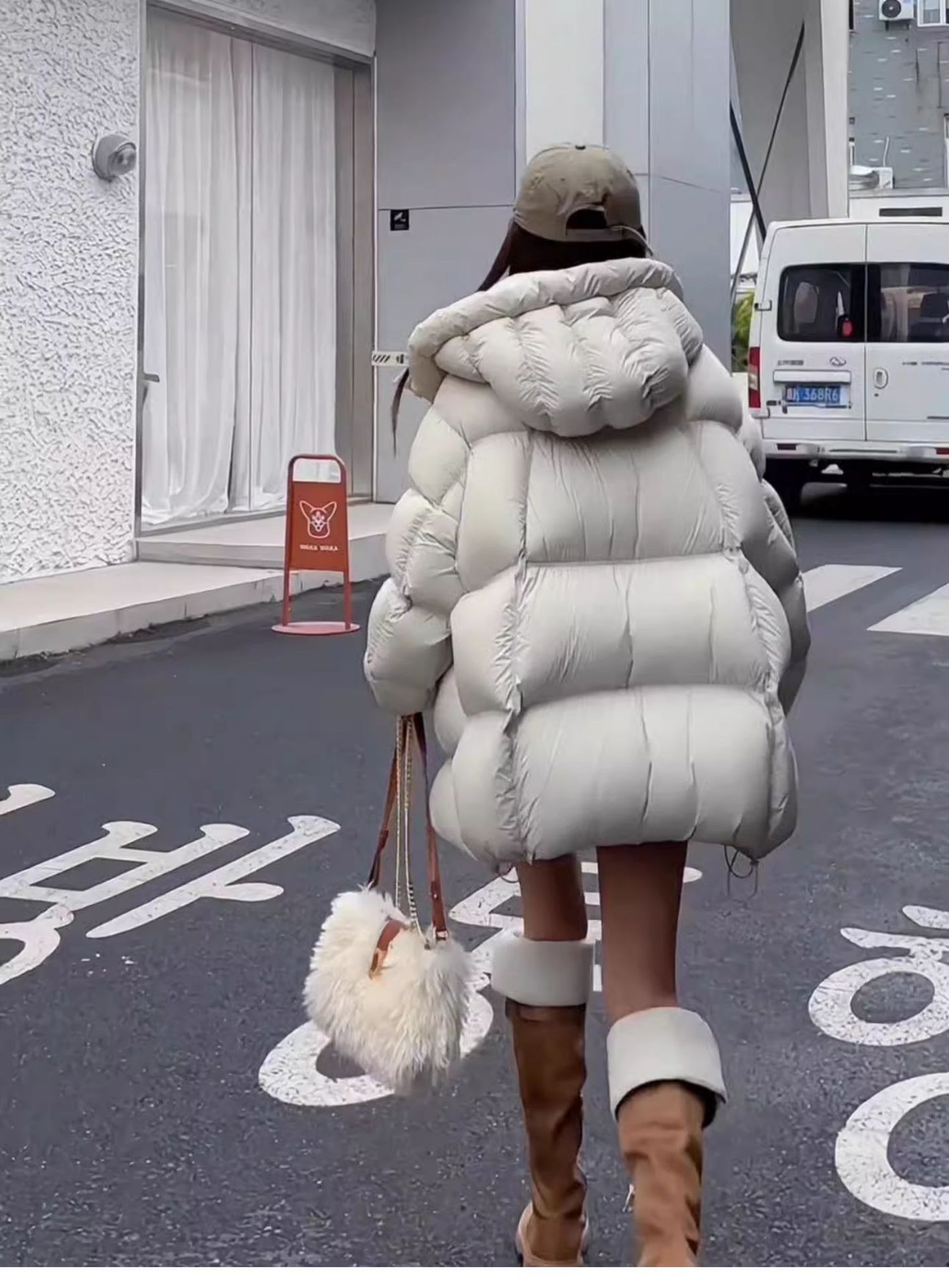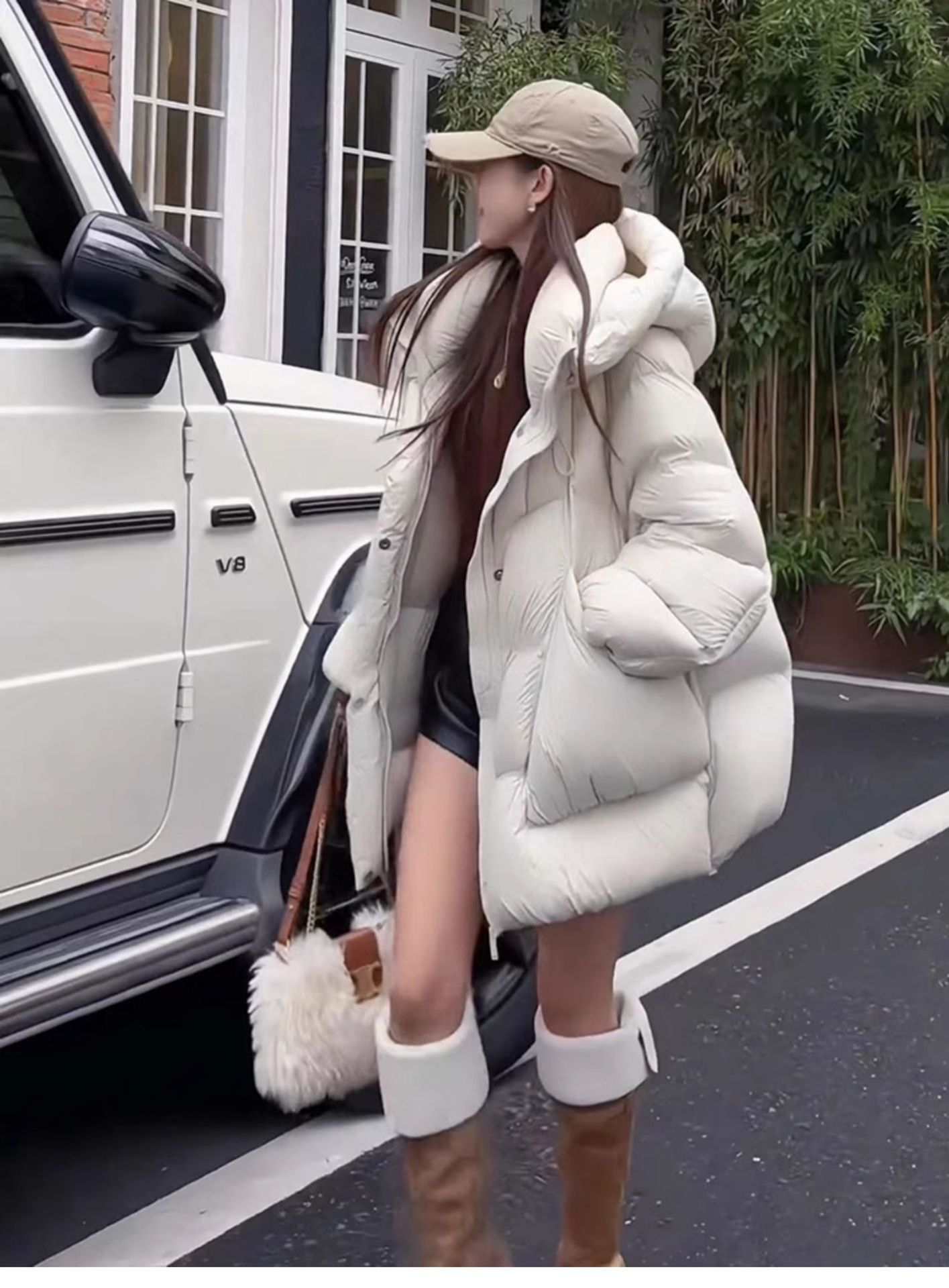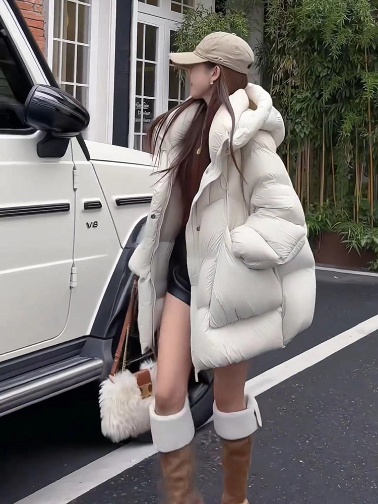 2026年冬季新款轻奢白绒服女中长款小个子时尚加厚宽松面包服外套
