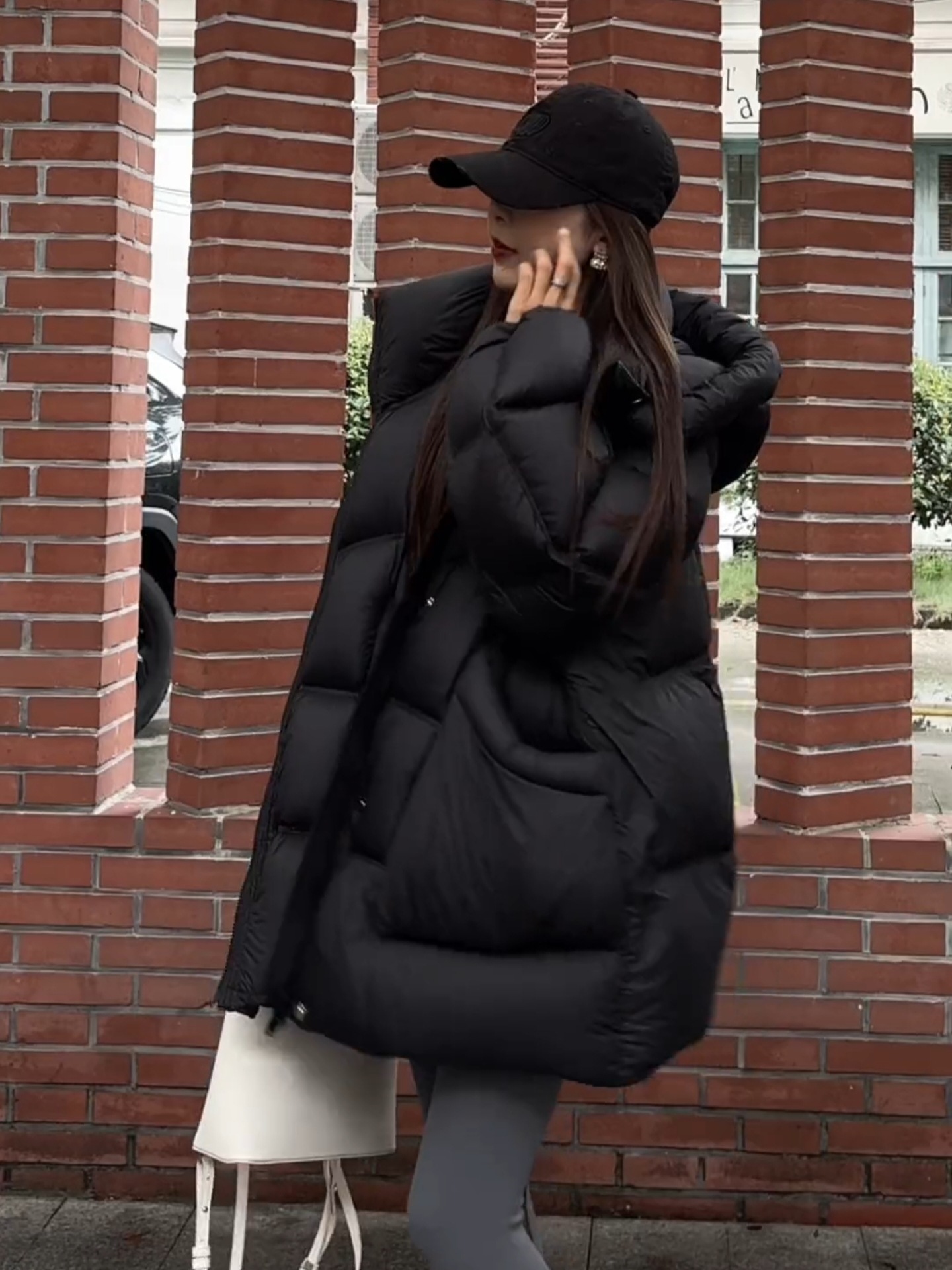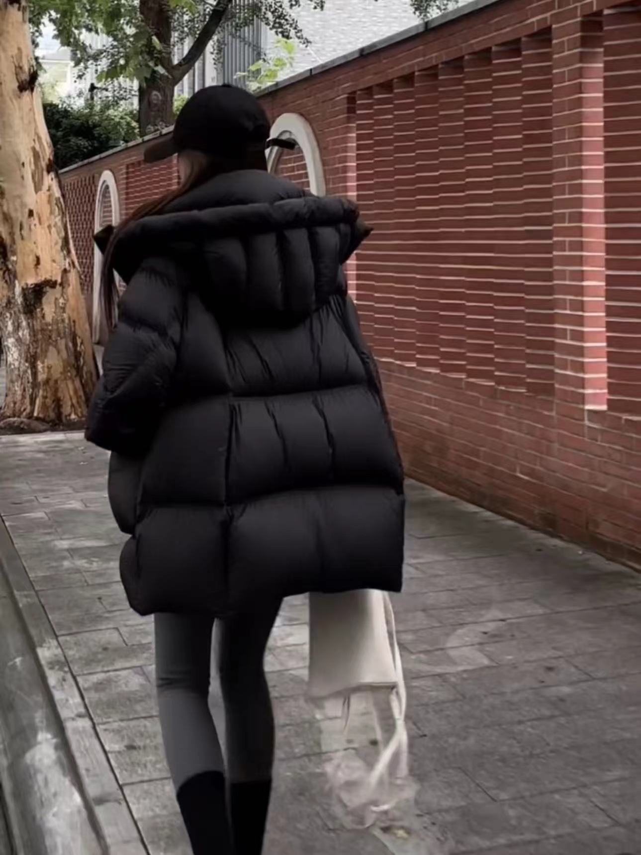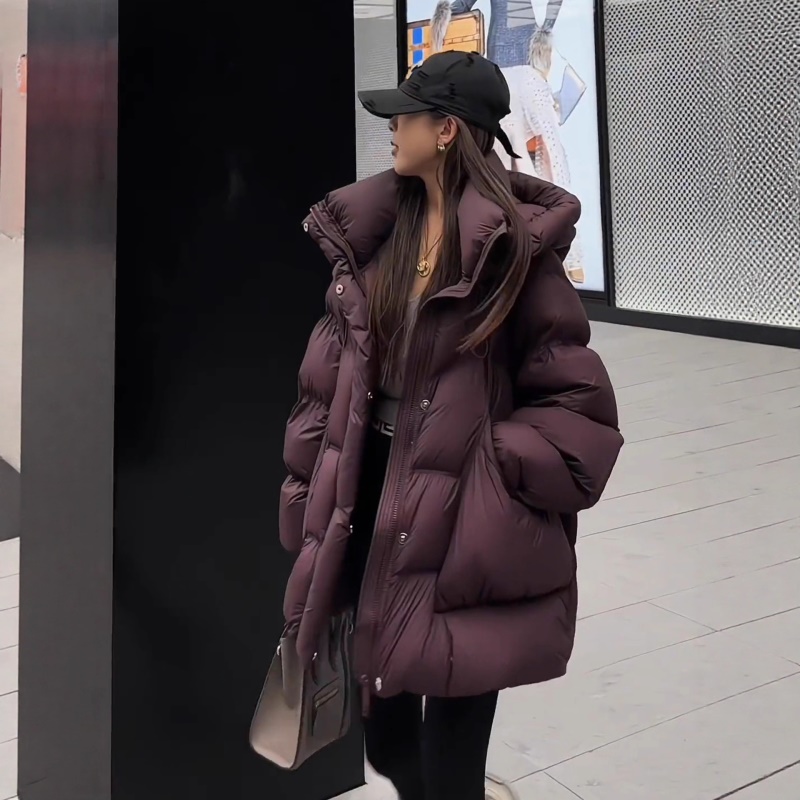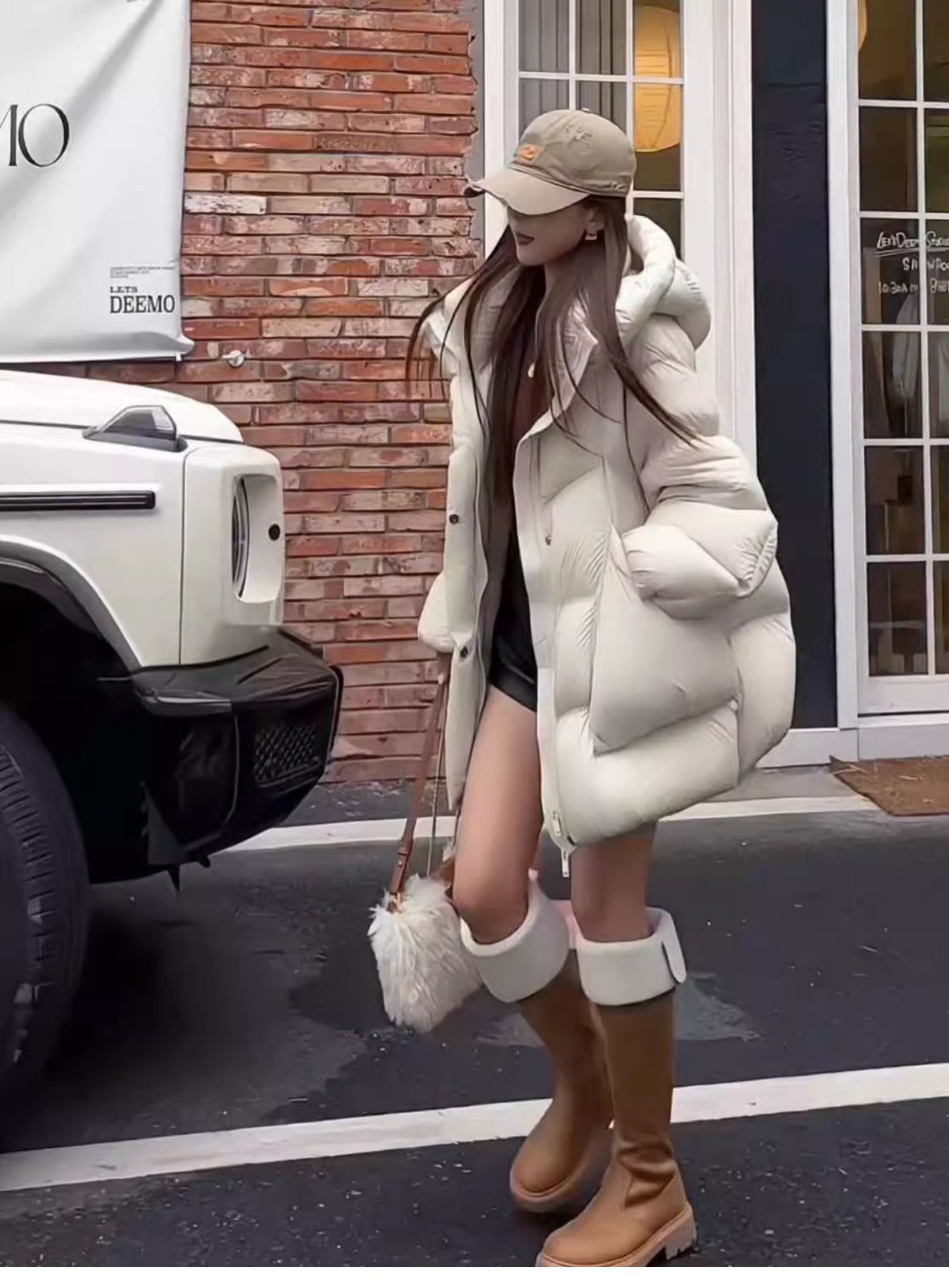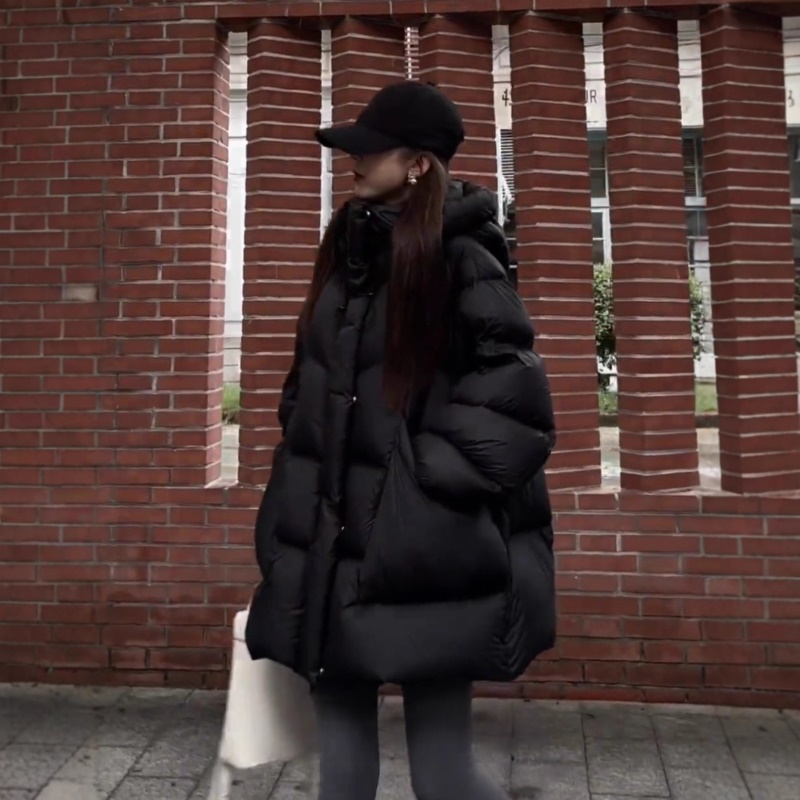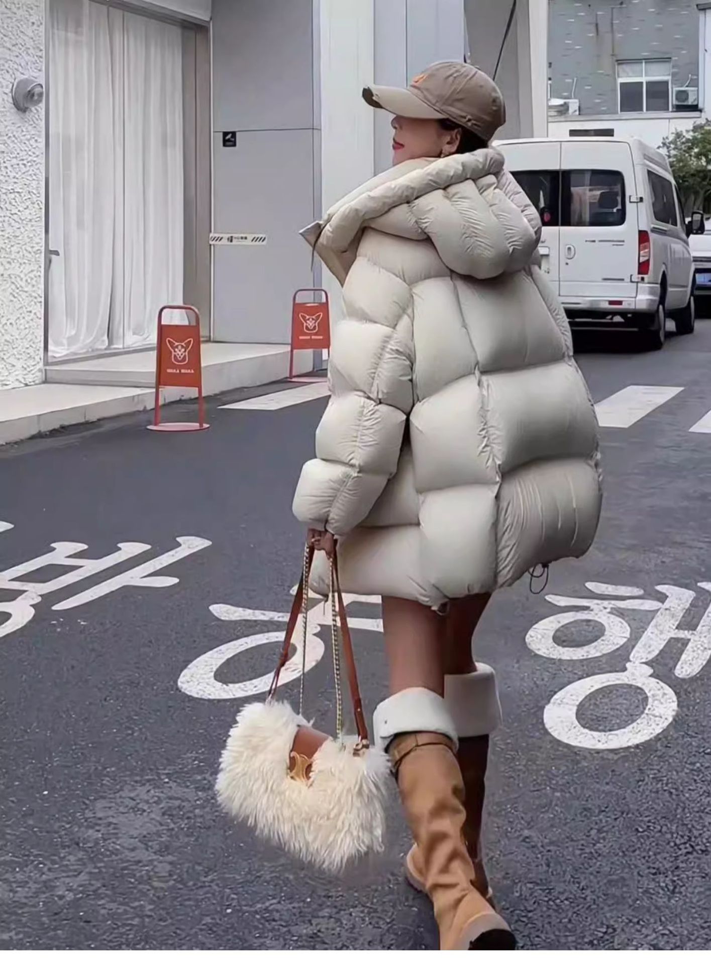 2026年冬季新款轻奢白绒服女中长款小个子时尚加厚宽松面包服外套