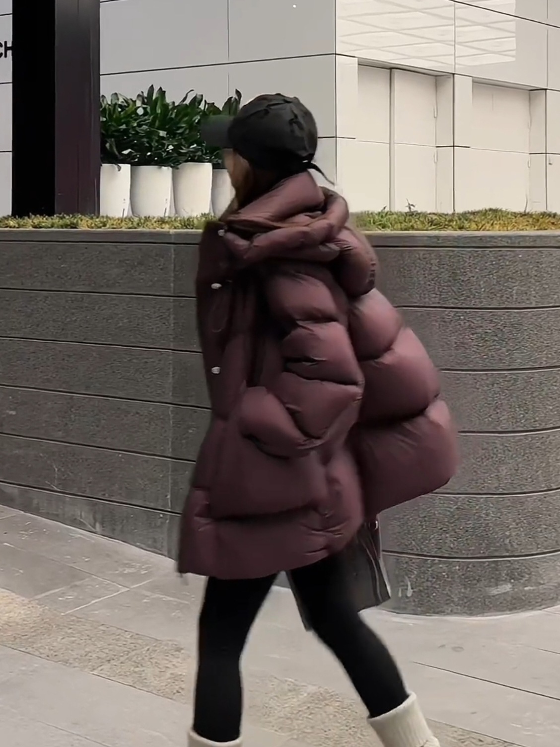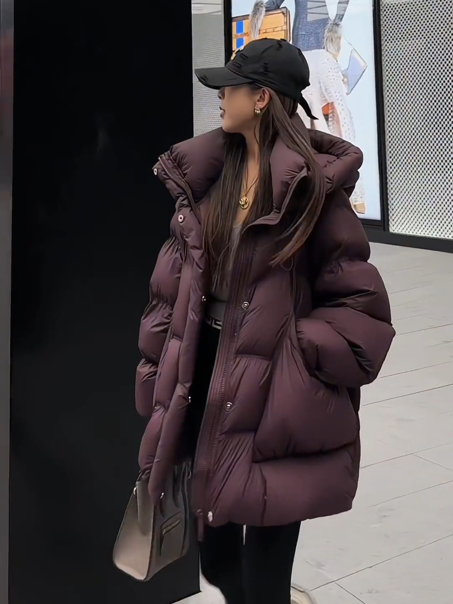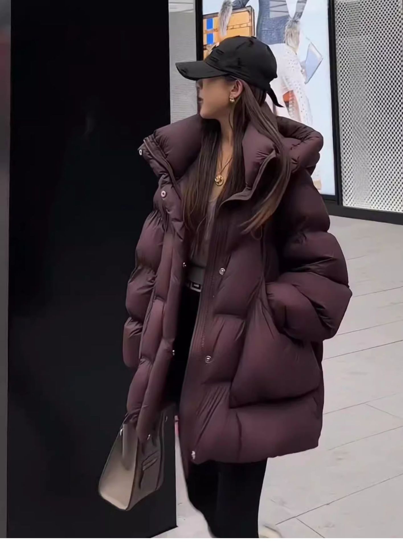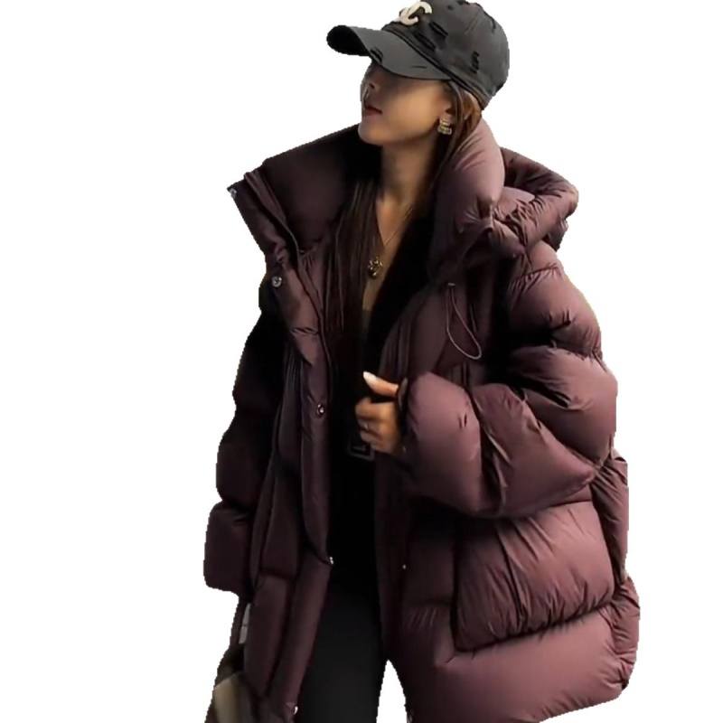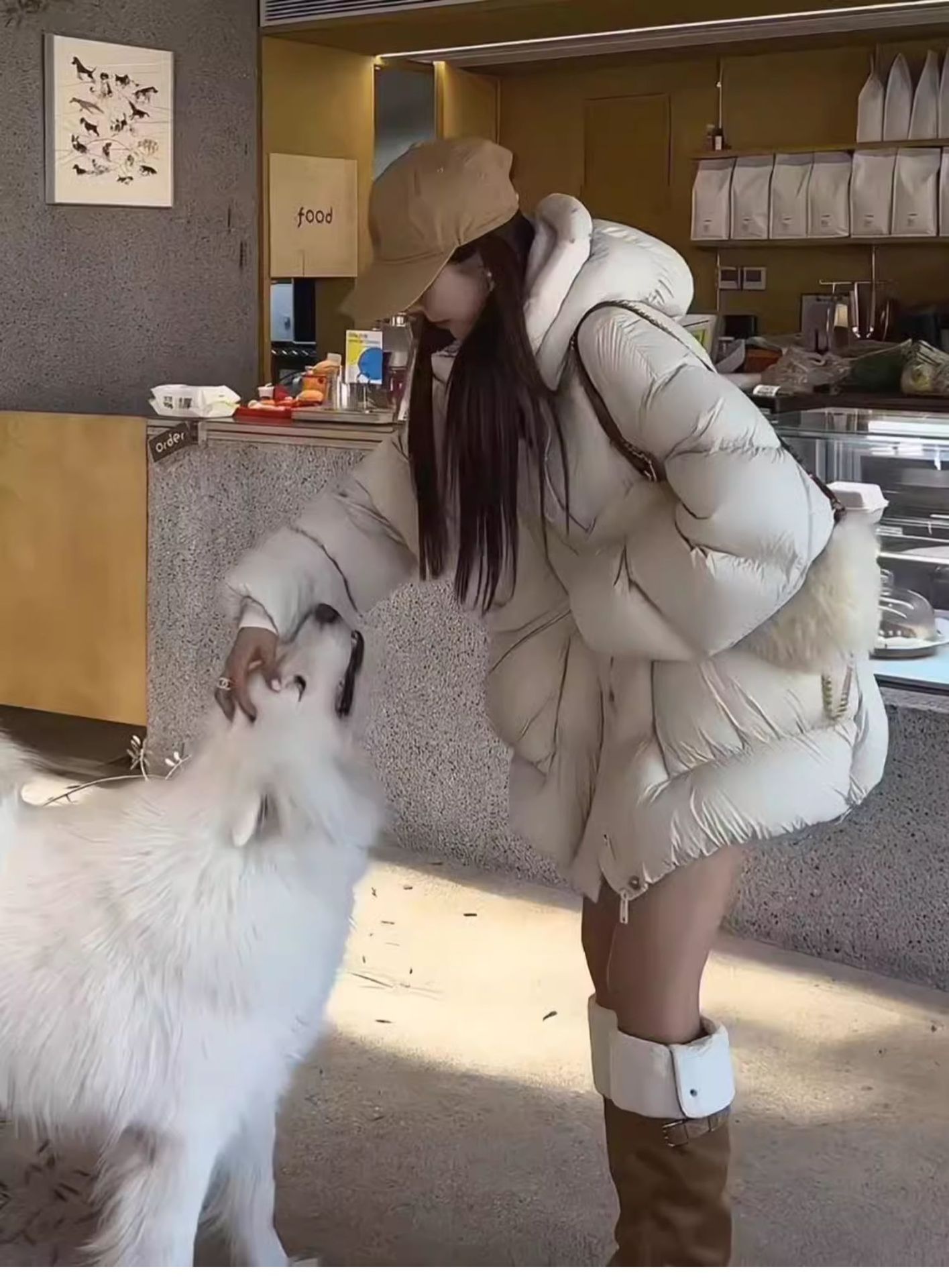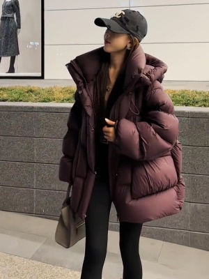 2026年冬季新款轻奢白绒服女中长款小个子时尚加厚宽松面包服外套