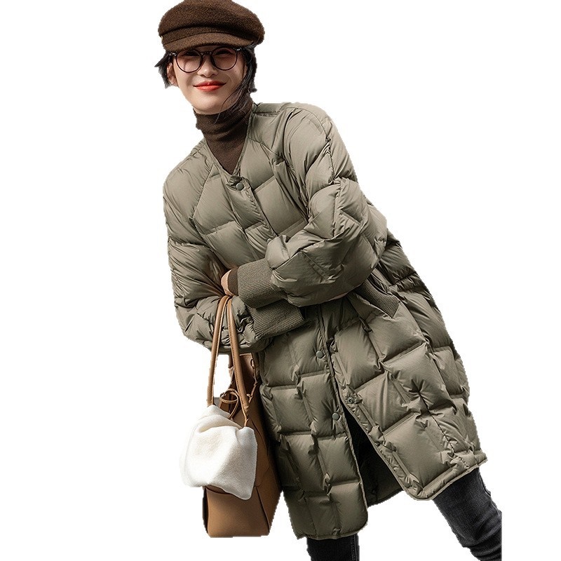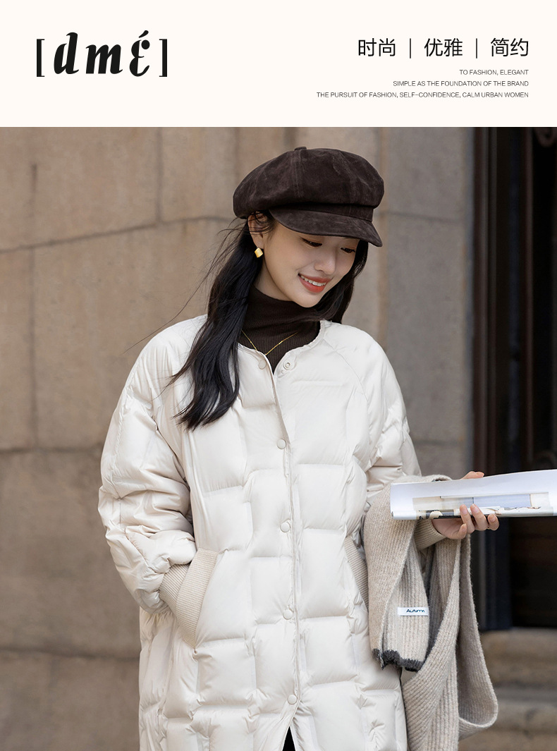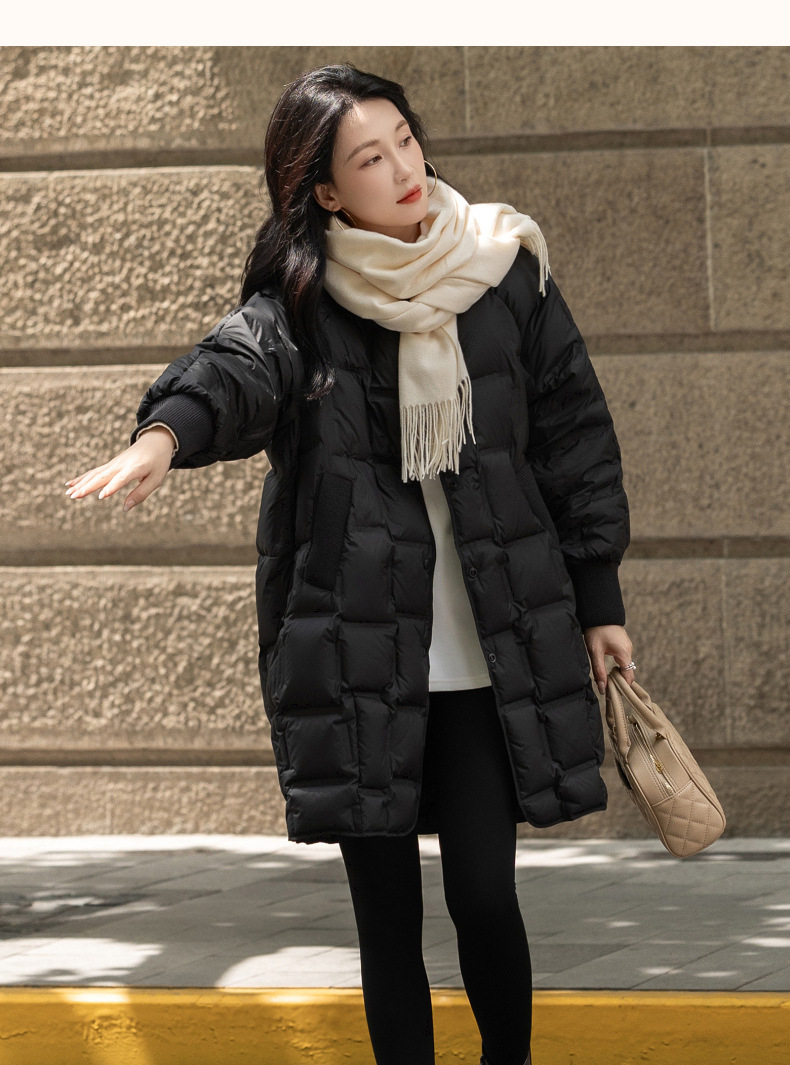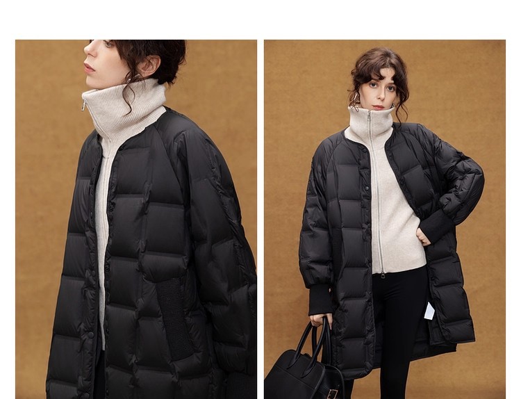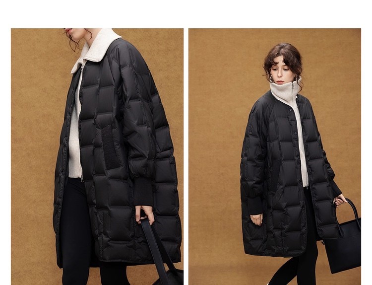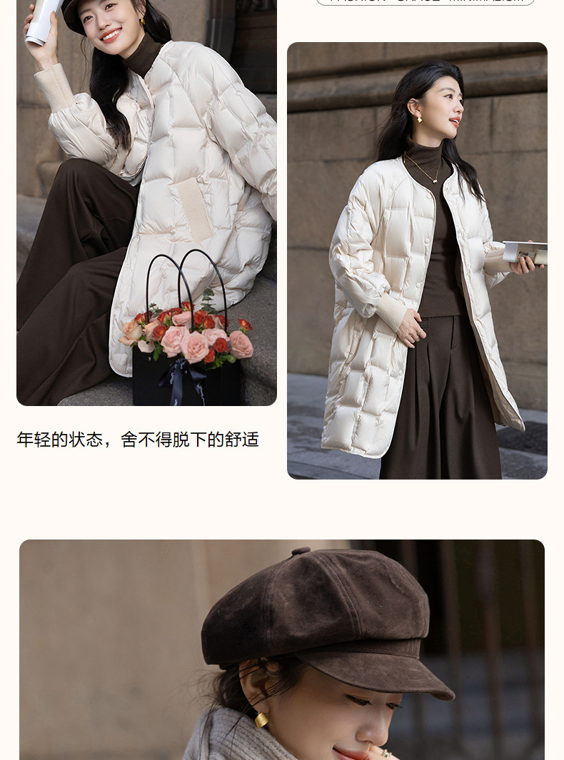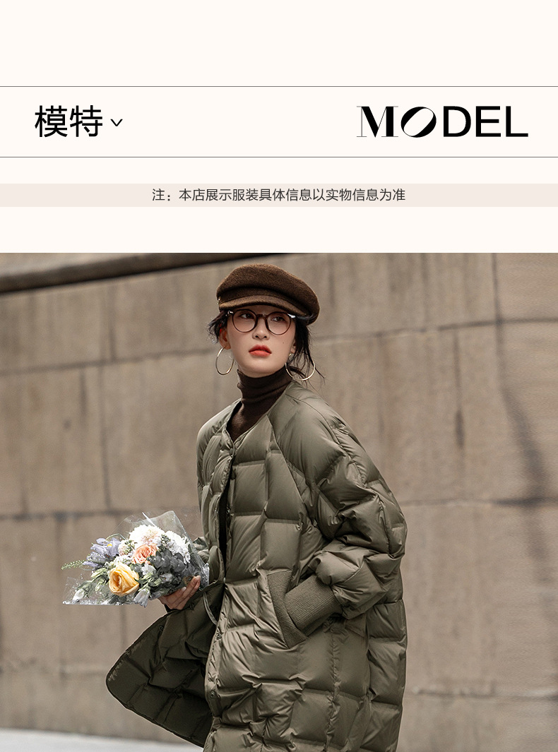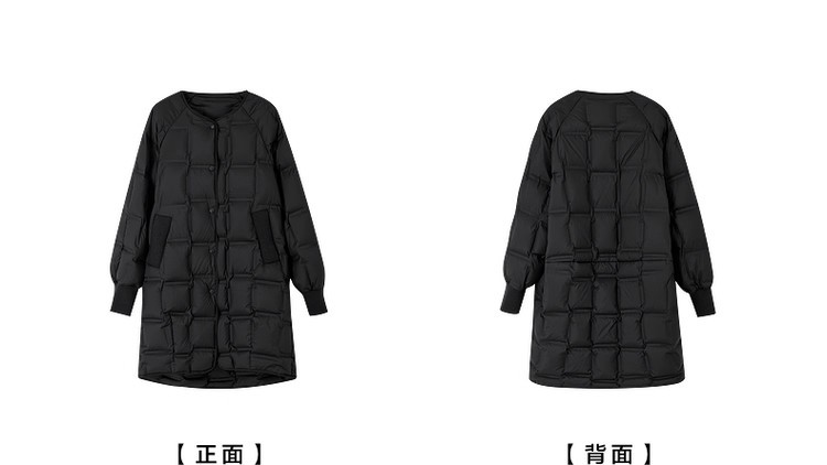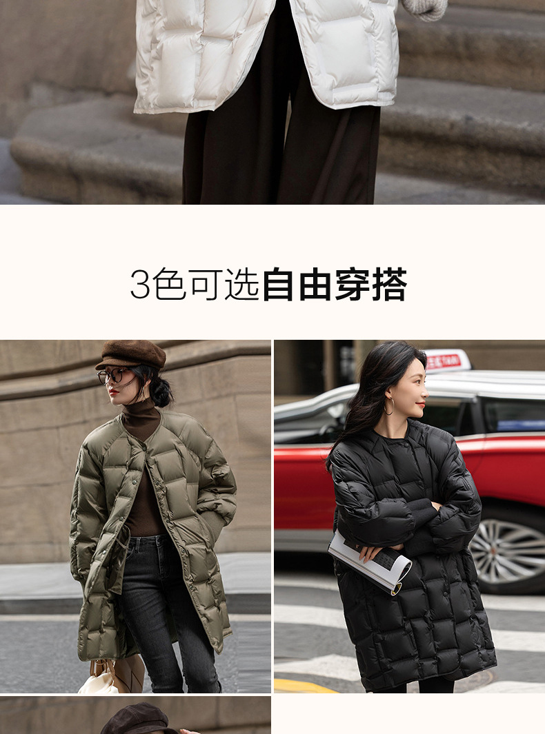 商品名称:2026冬季新款轻量感90鹅绒服压胶羽绒服女中长款文艺轻薄款保暖外