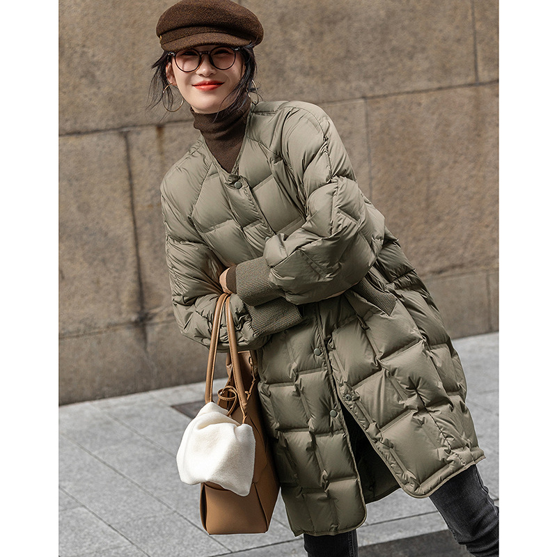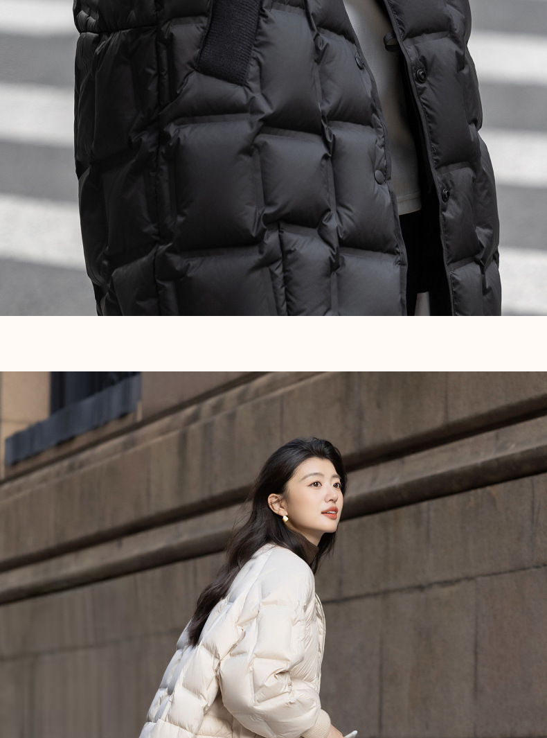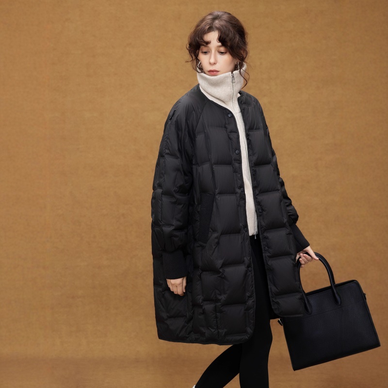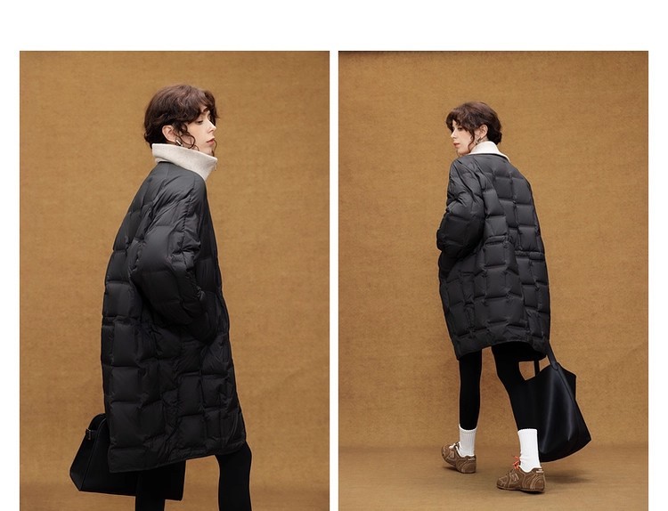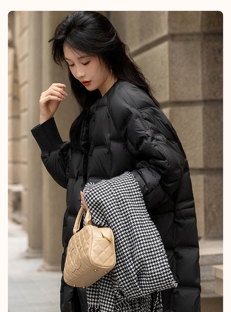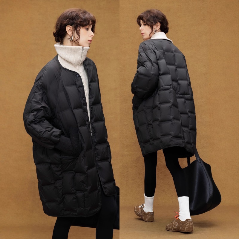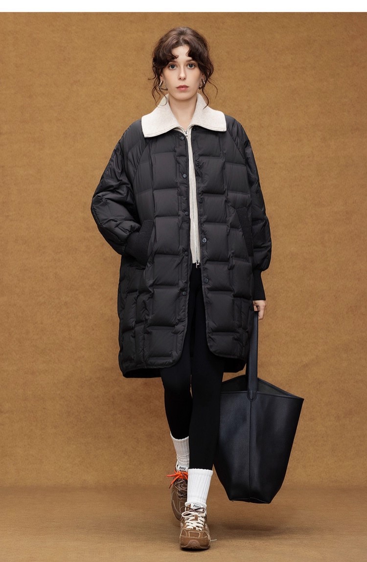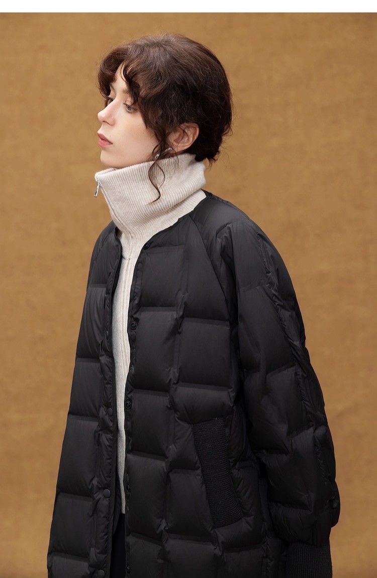 商品名称:2026冬季新款轻量感90鹅绒服压胶羽绒服女中长款文艺轻薄款保暖外