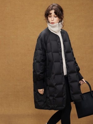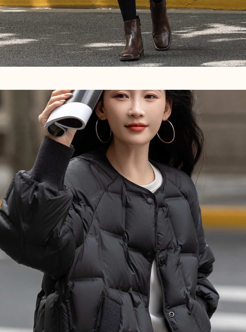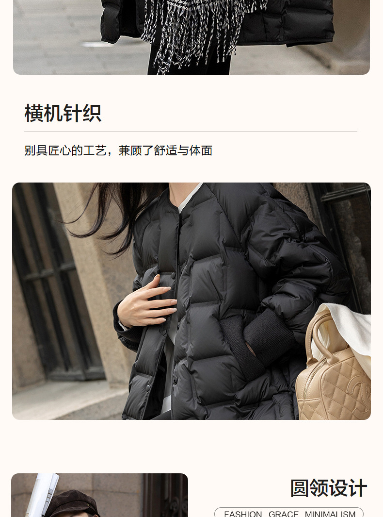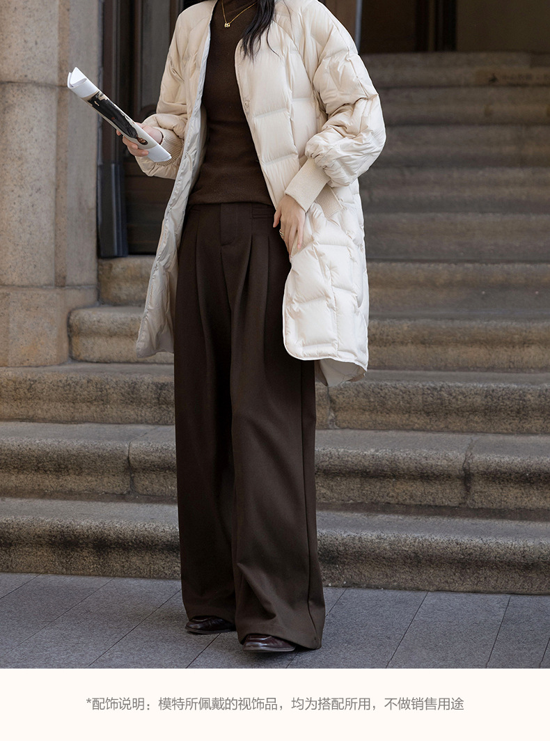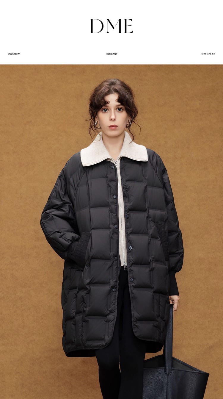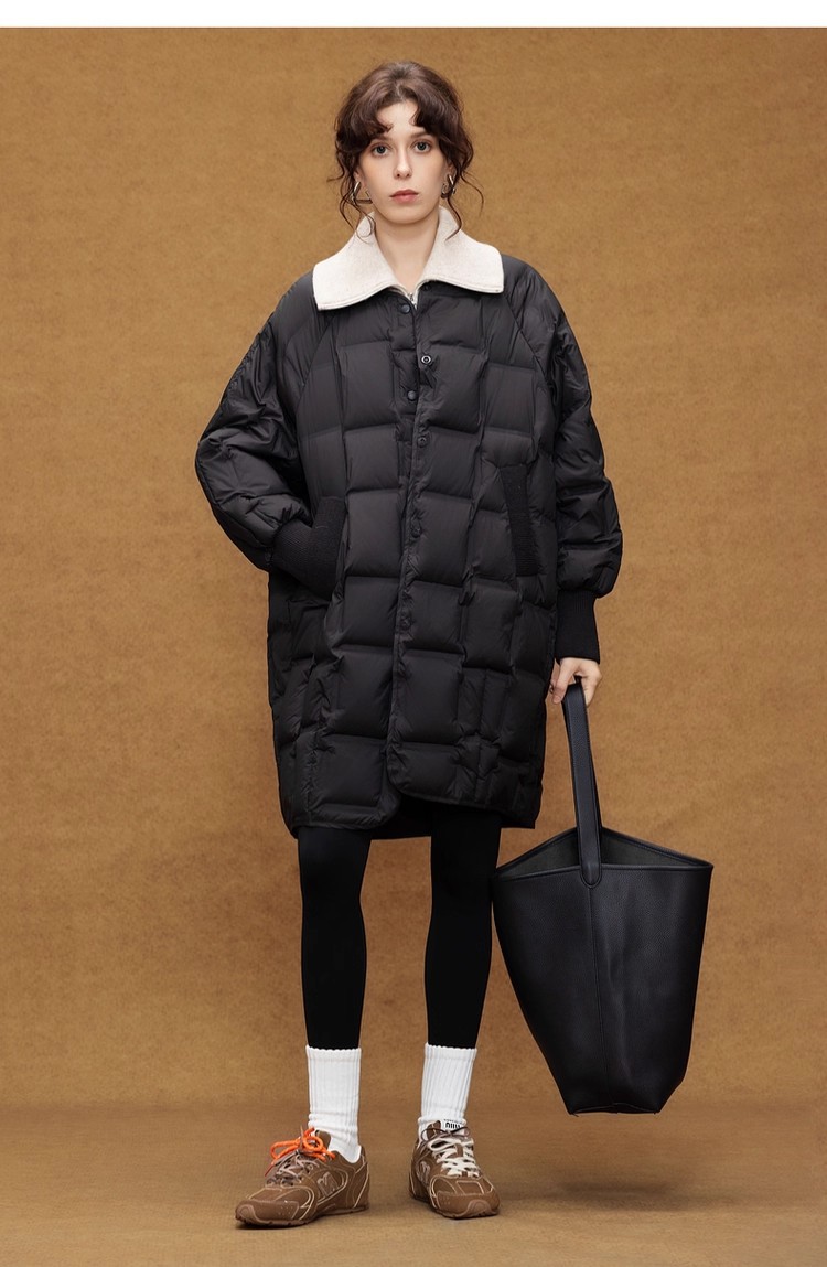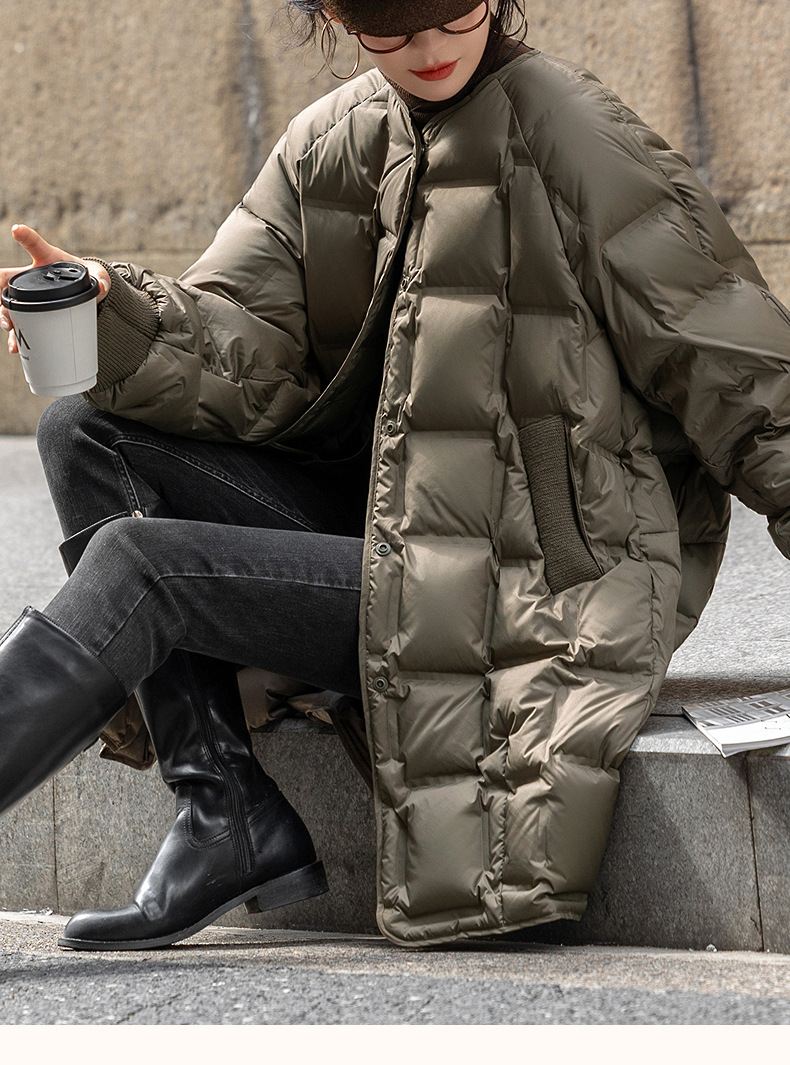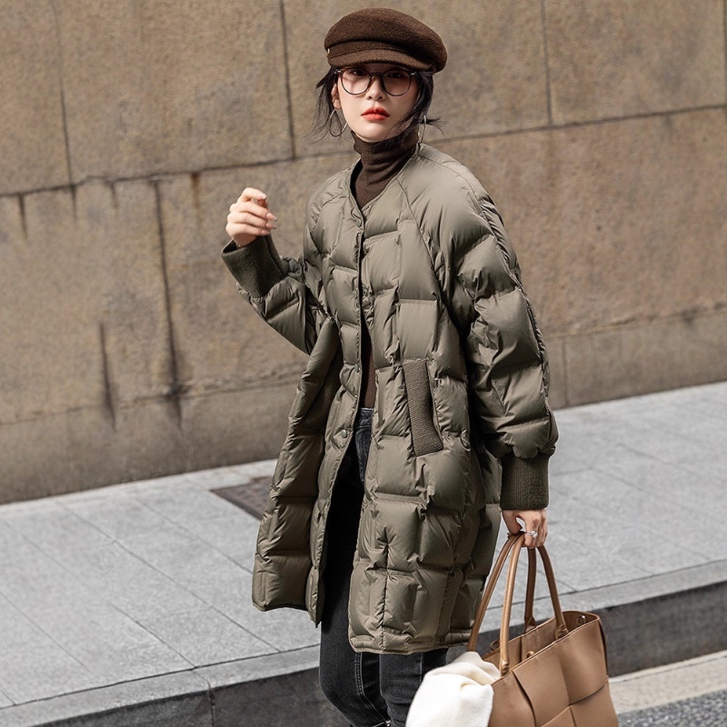 商品名称:2026冬季新款轻量感90鹅绒服压胶羽绒服女中长款文艺轻薄款保暖外