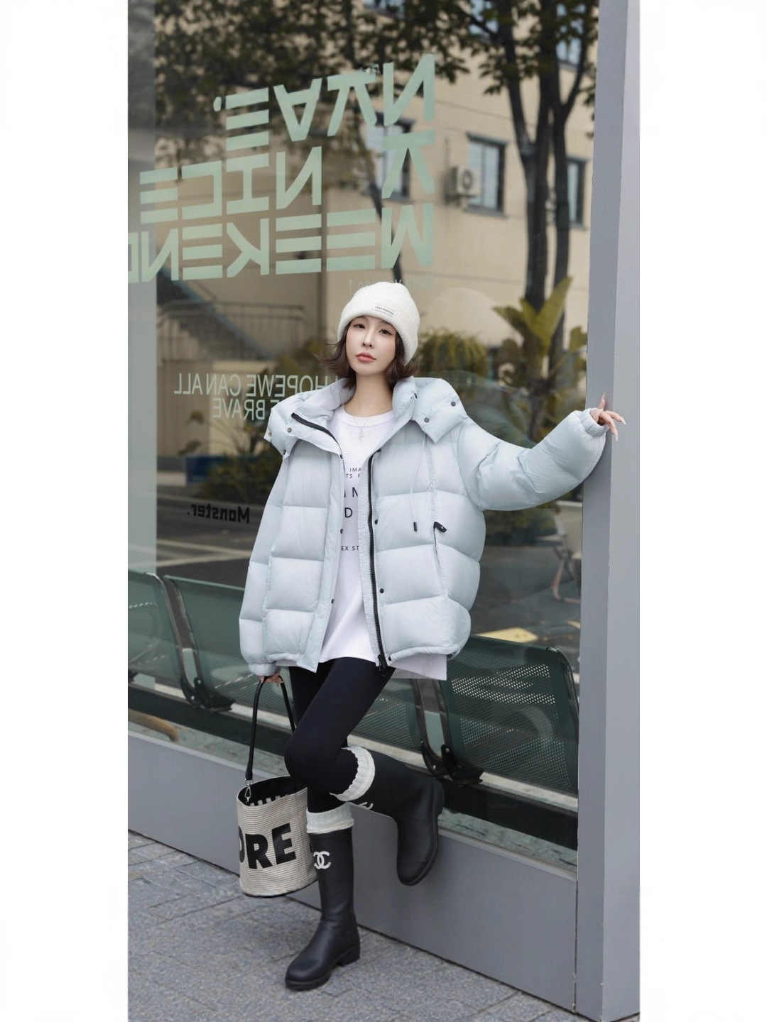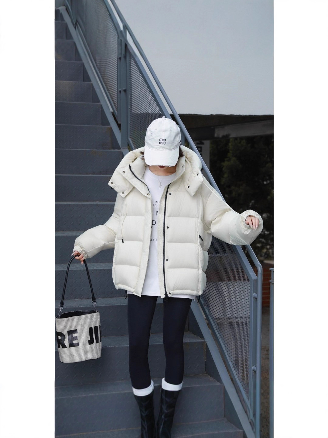 商品名称:泡芙鹅绒服90白鹅绒女装连帽短款 平湖高端羽绒服外套女款厚款冬