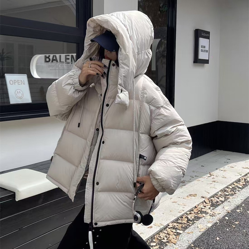 泡芙鹅绒服90白鹅绒女装连帽短款 平湖高端羽绒服外套女款厚款冬