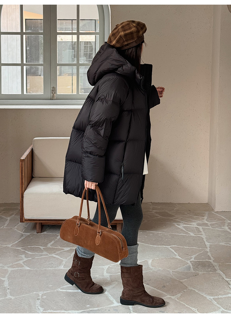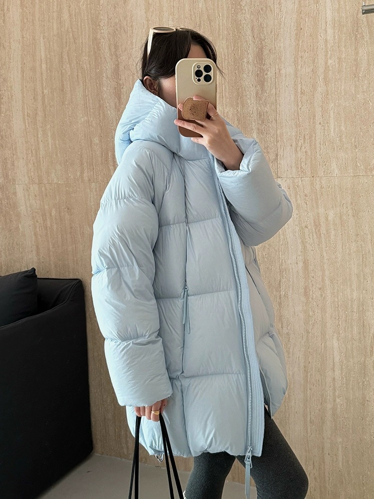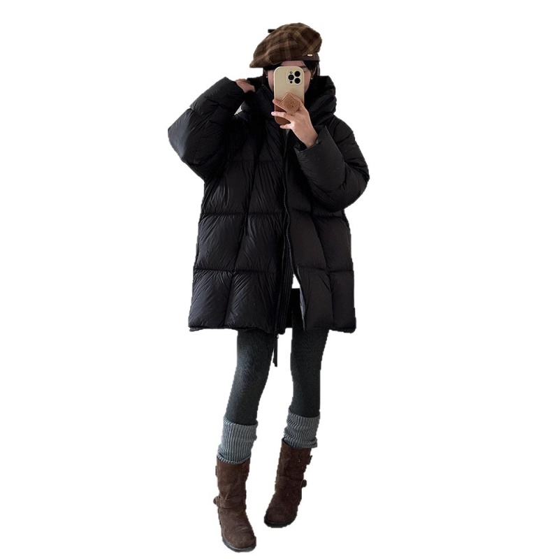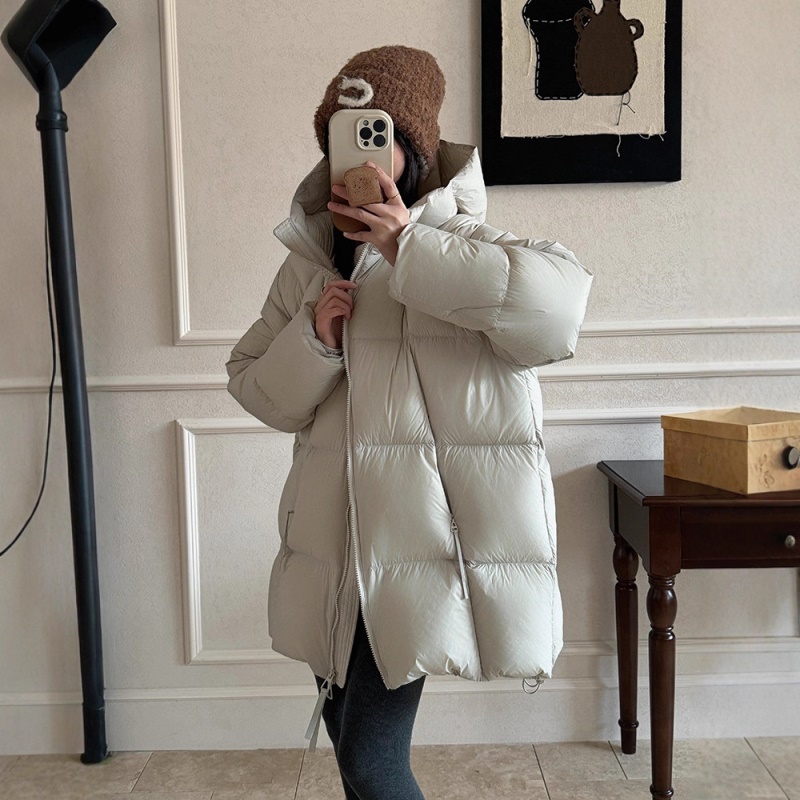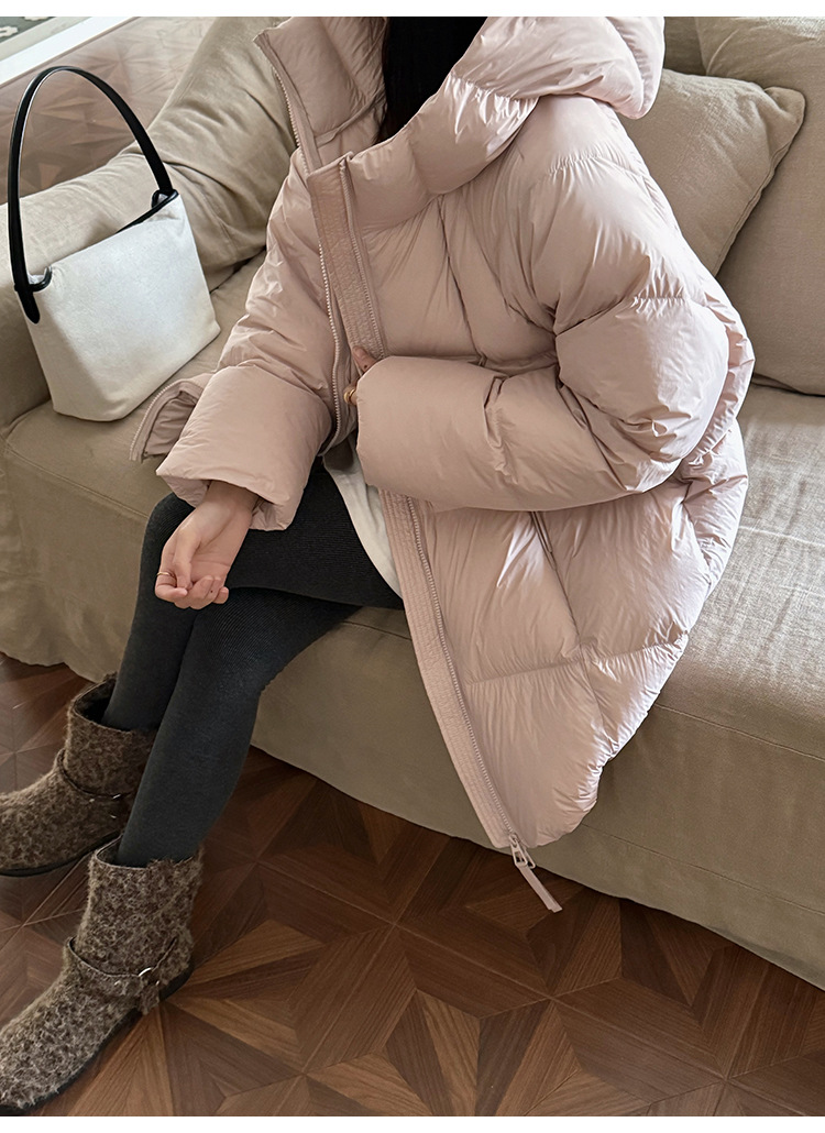 【安心绒】超轻泡芙90白鹅绒连帽龟背鹅绒服女中长款加厚休闲外套