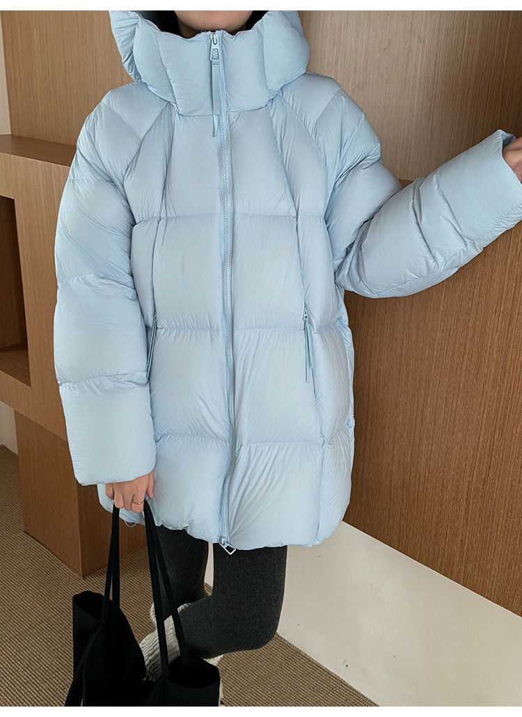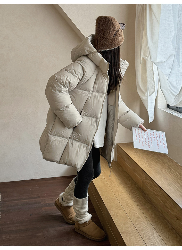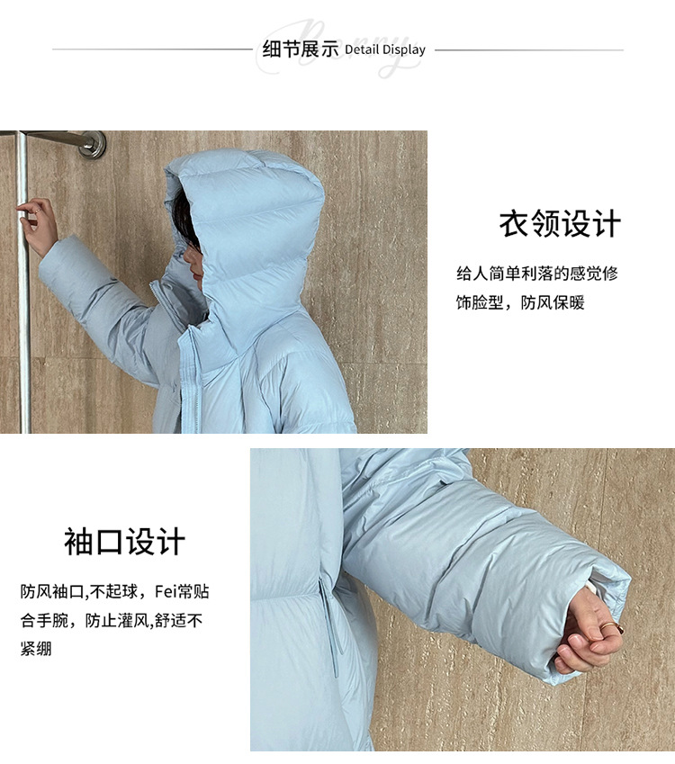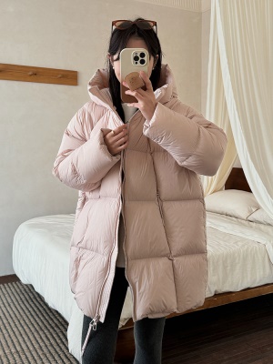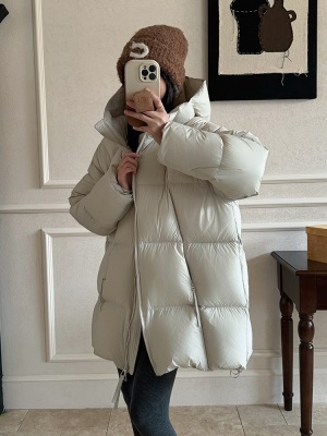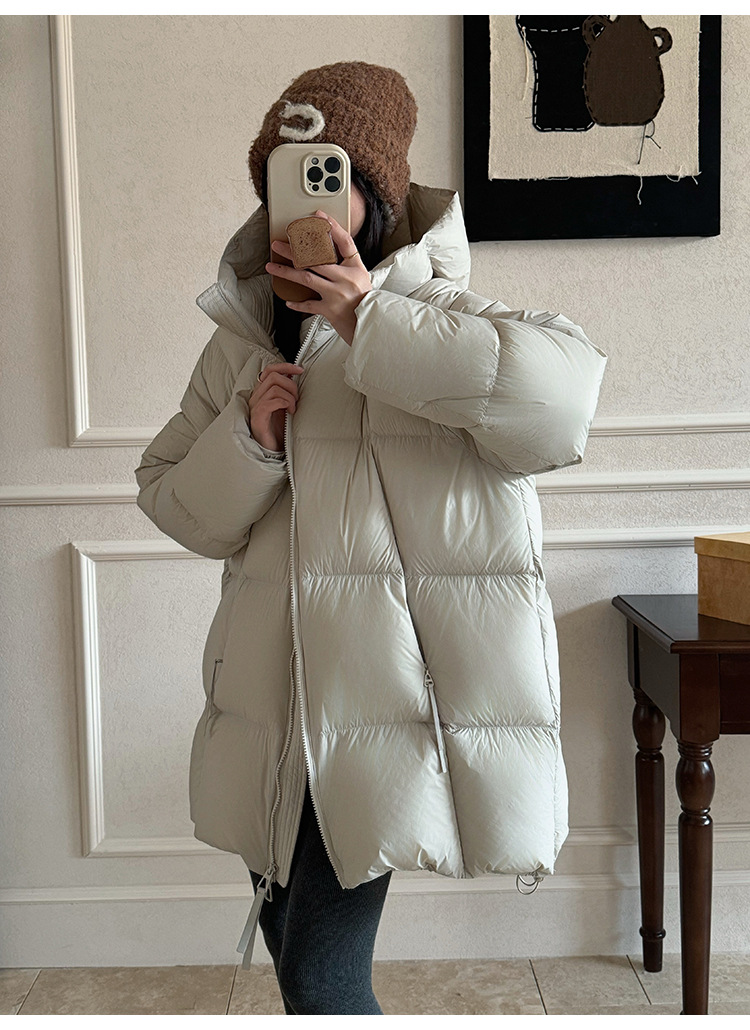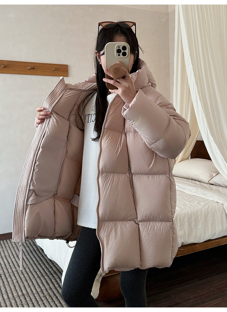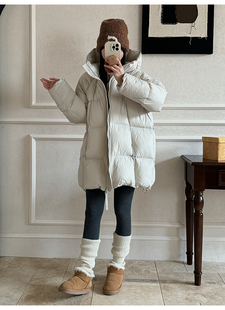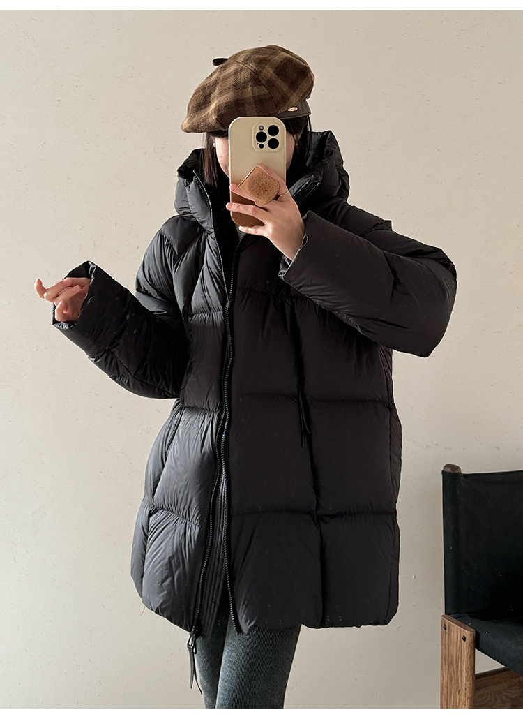 商品名称:【安心绒】超轻泡芙90白鹅绒连帽龟背鹅绒服女中长款加厚休闲外套