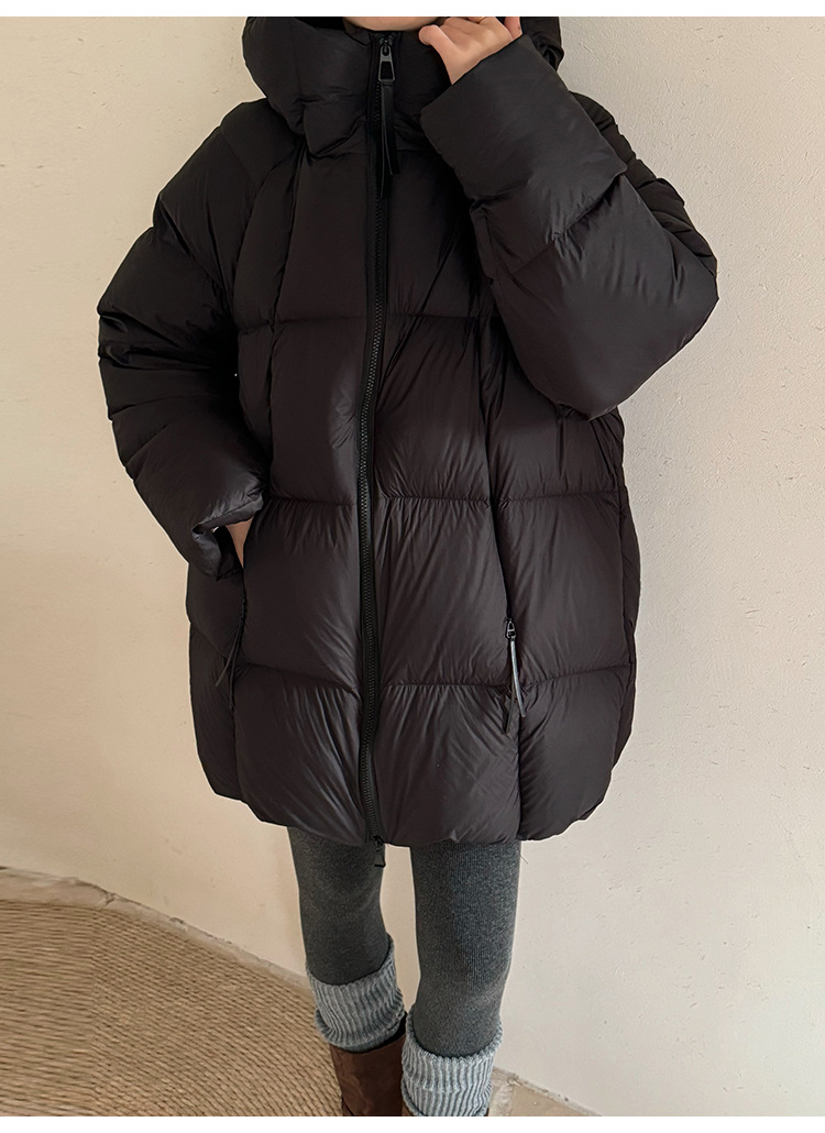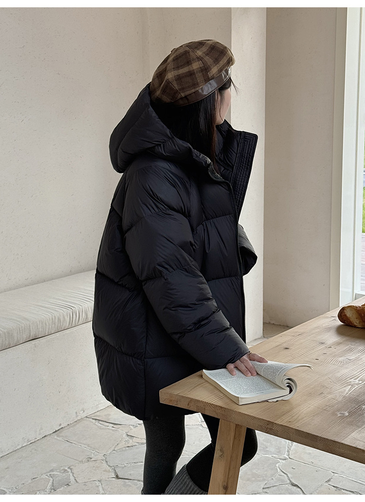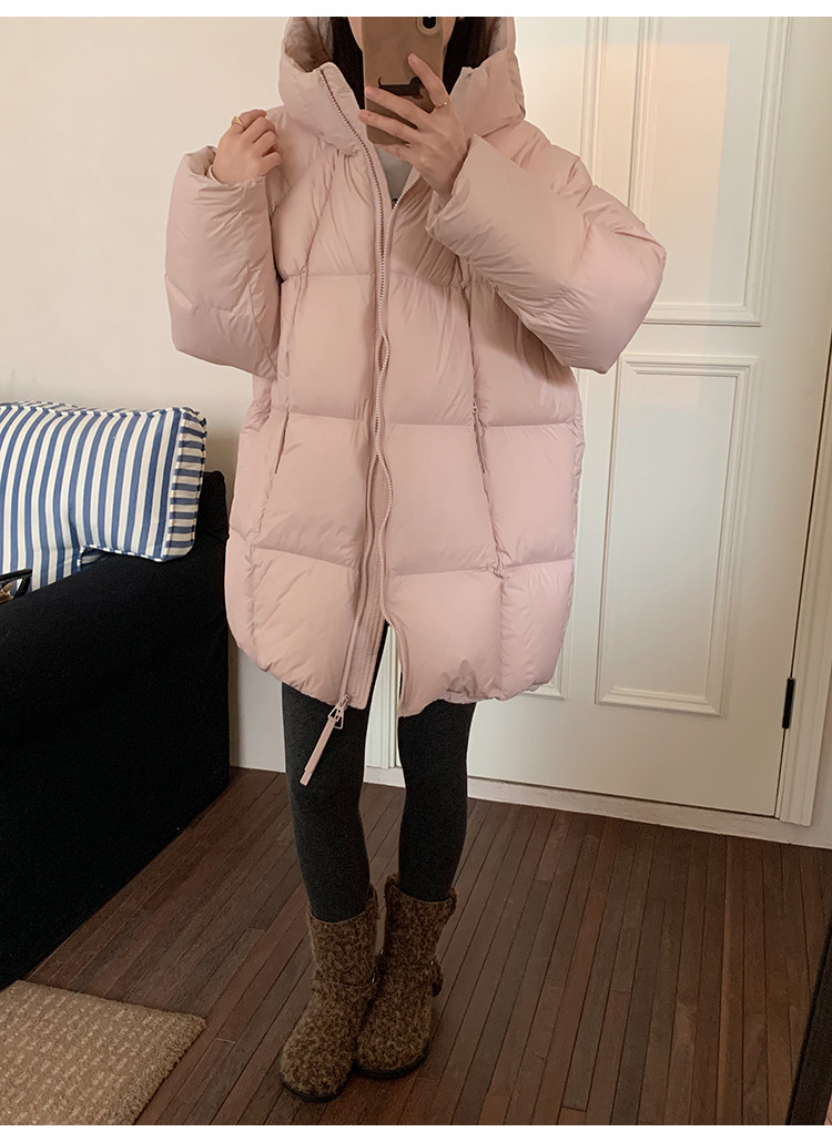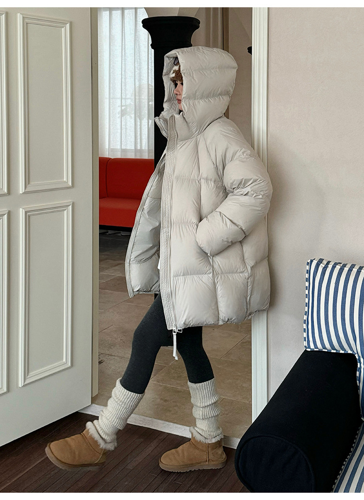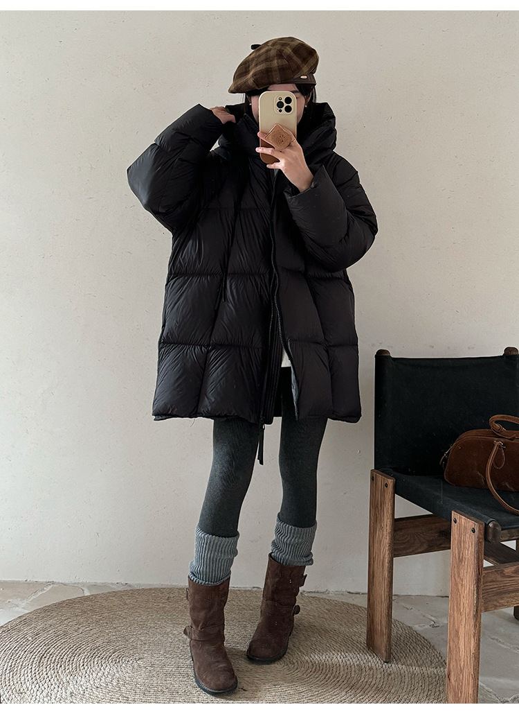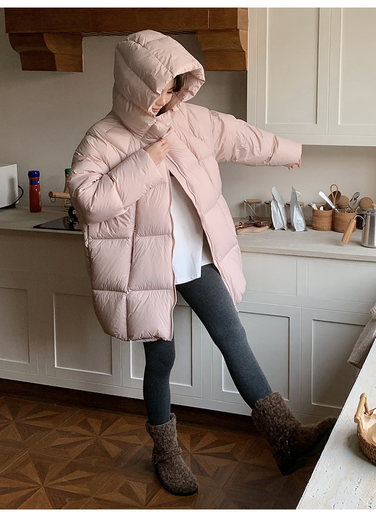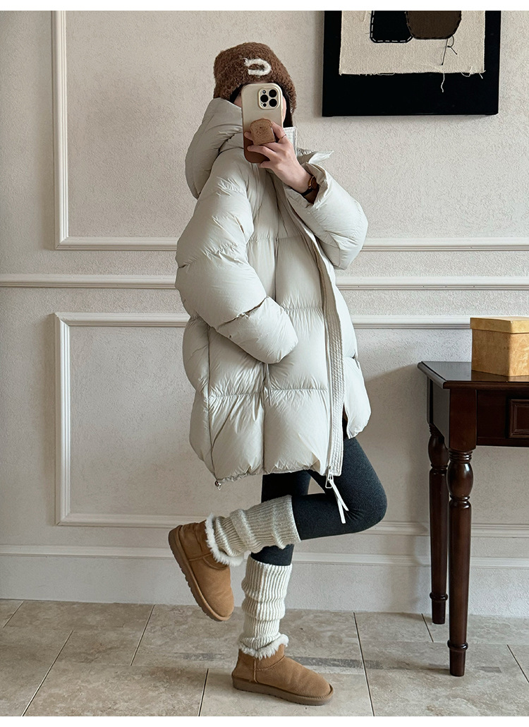 商品名称:【安心绒】超轻泡芙90白鹅绒连帽龟背鹅绒服女中长款加厚休闲外套