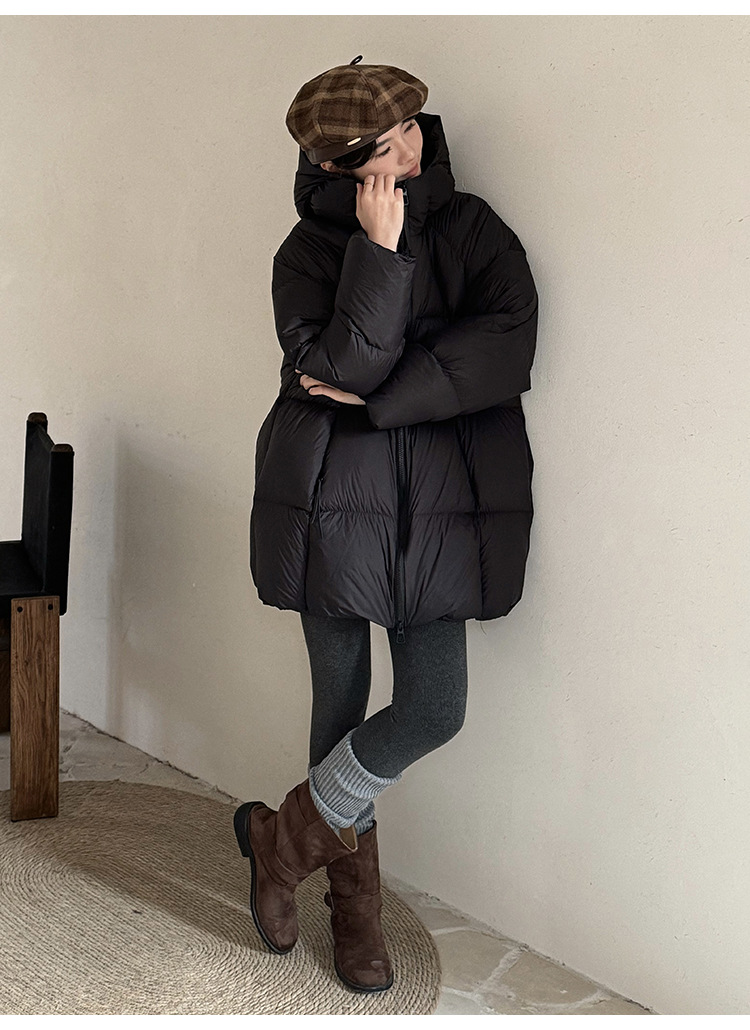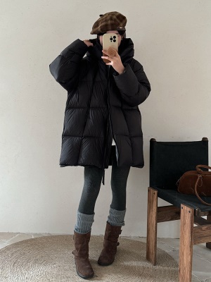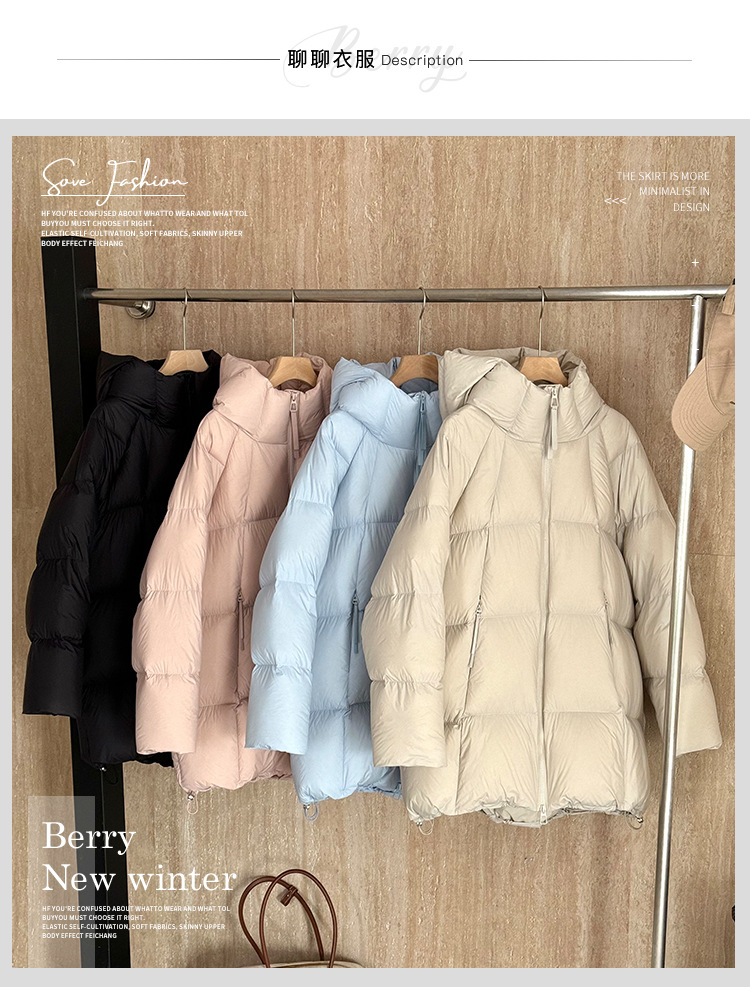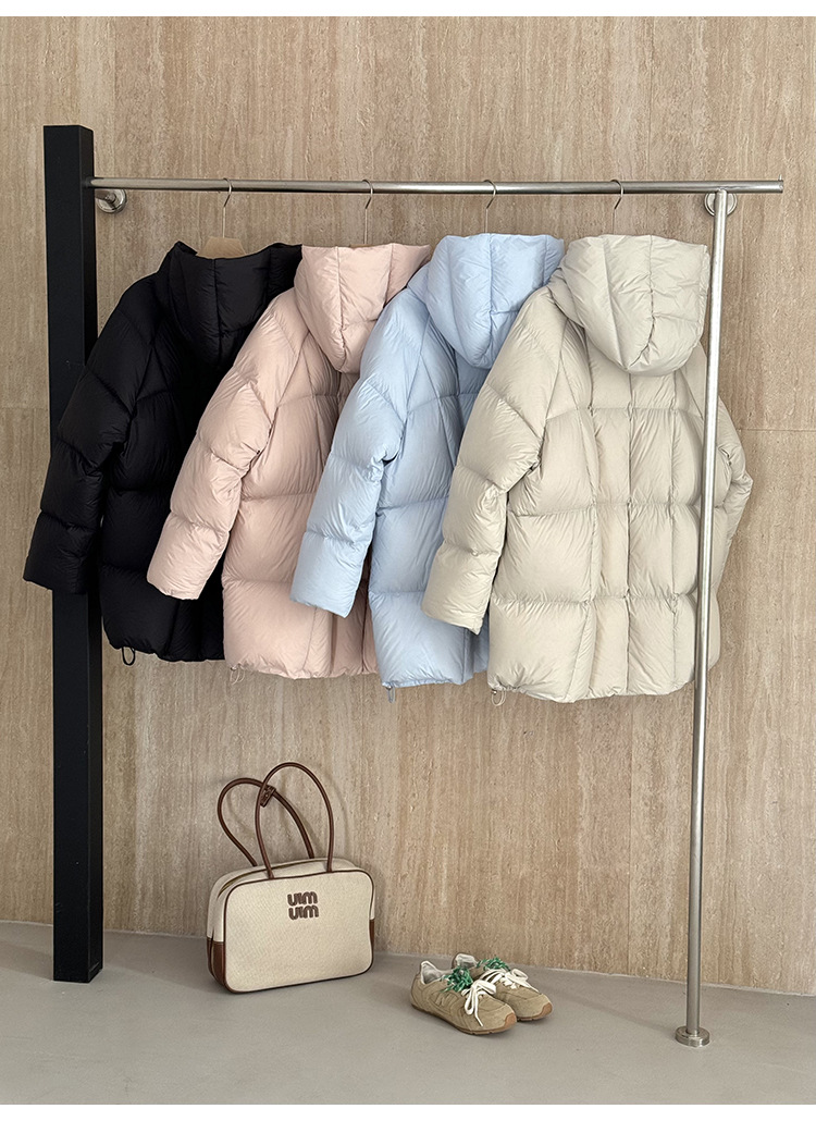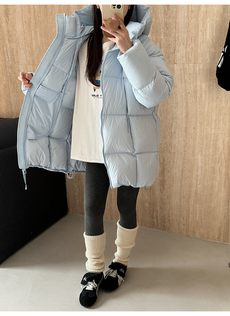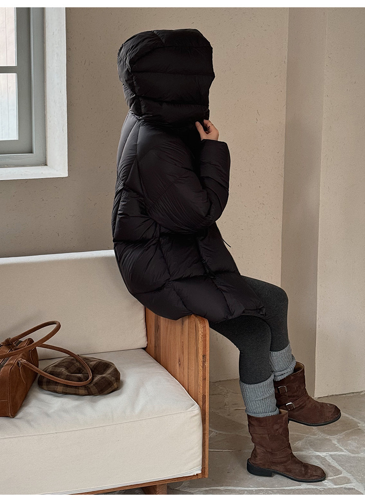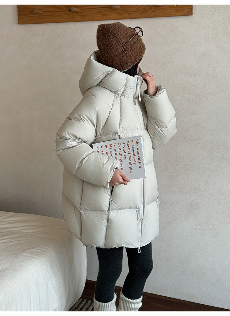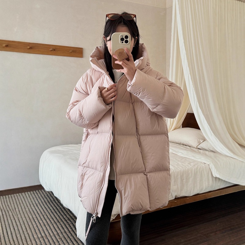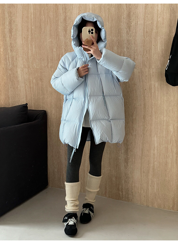 商品名称:【安心绒】超轻泡芙90白鹅绒连帽龟背鹅绒服女中长款加厚休闲外套