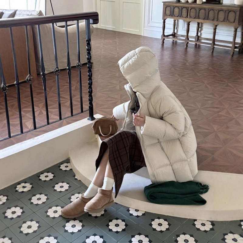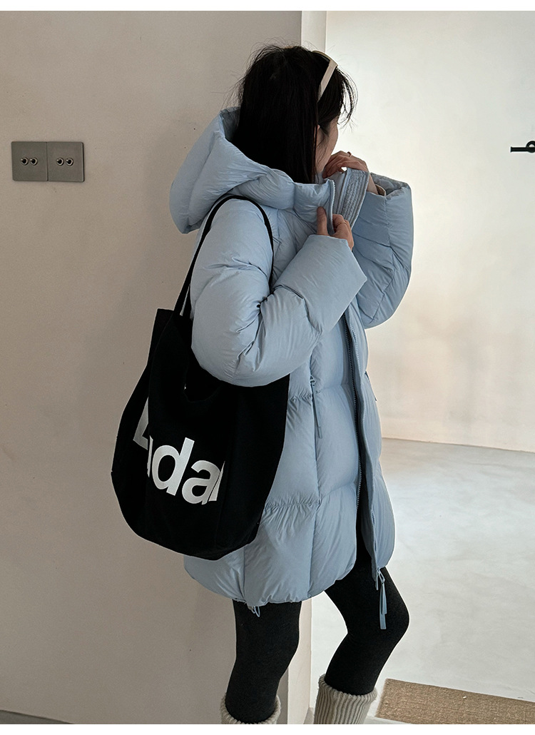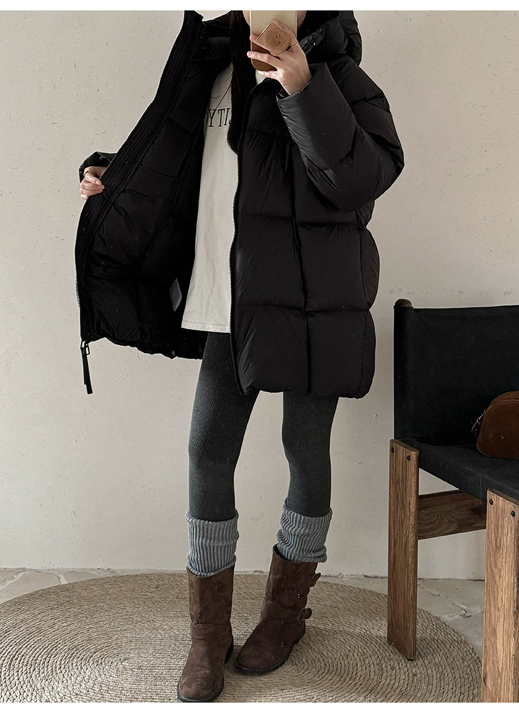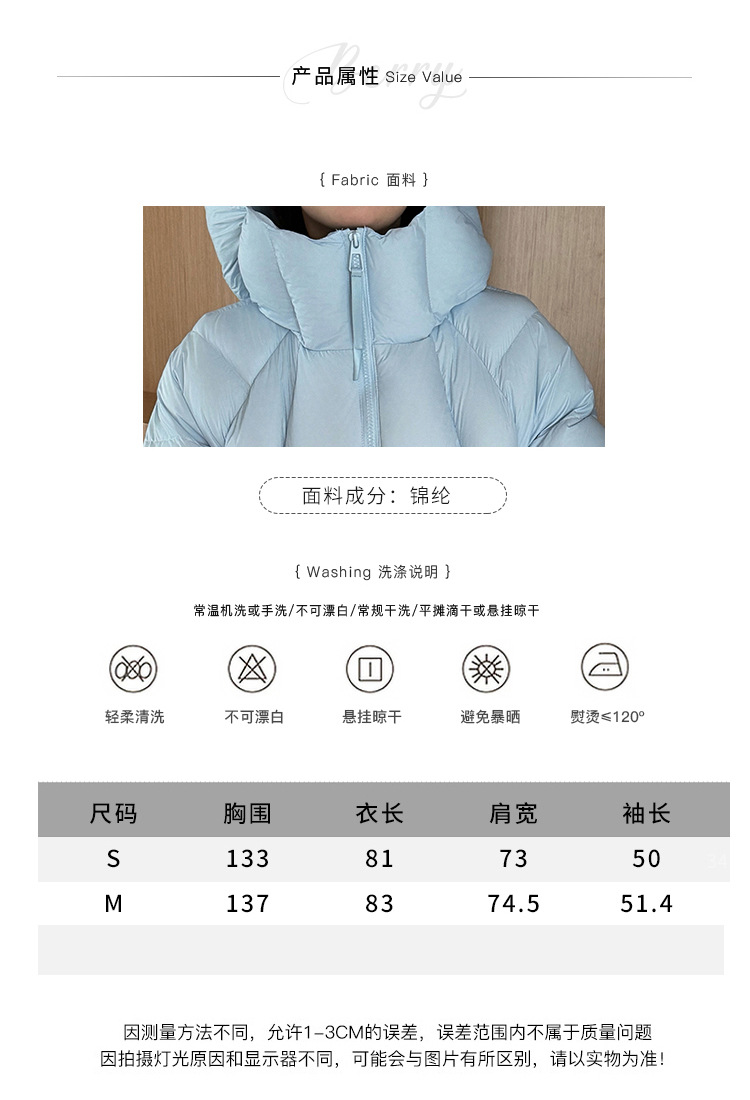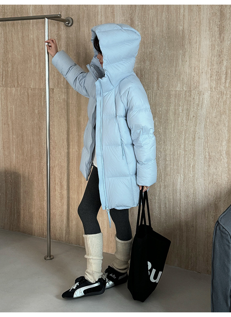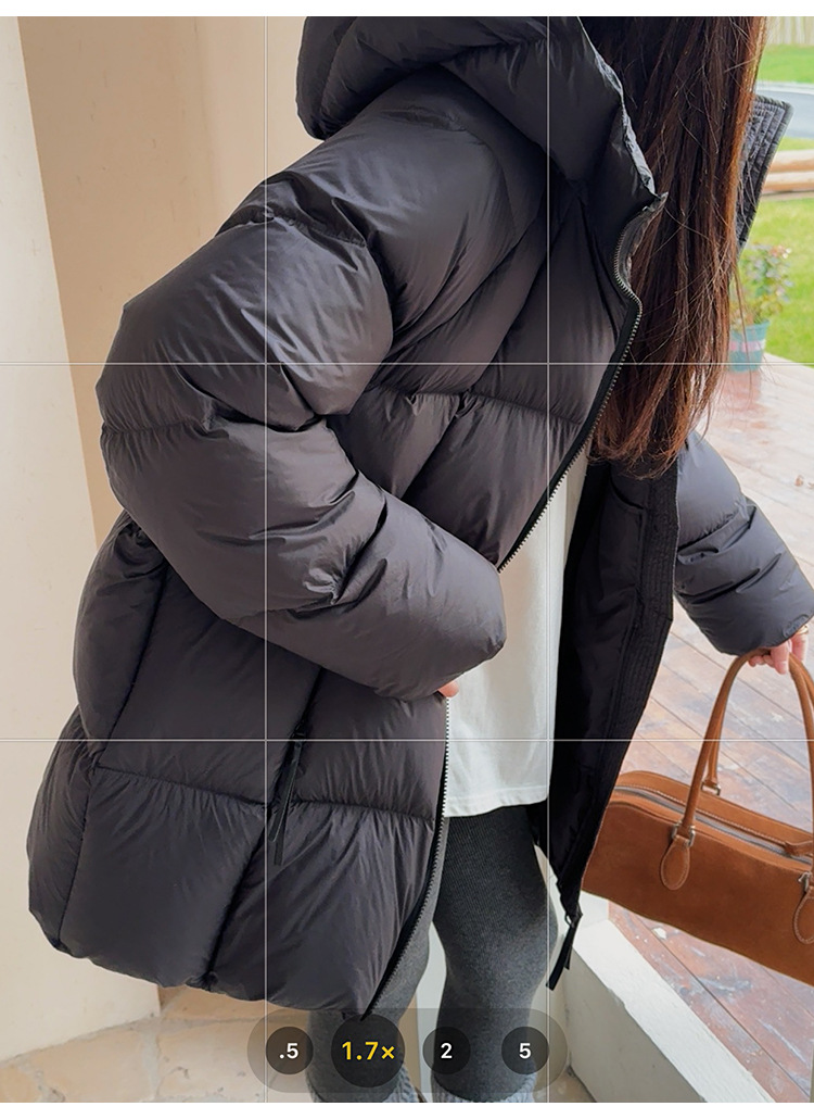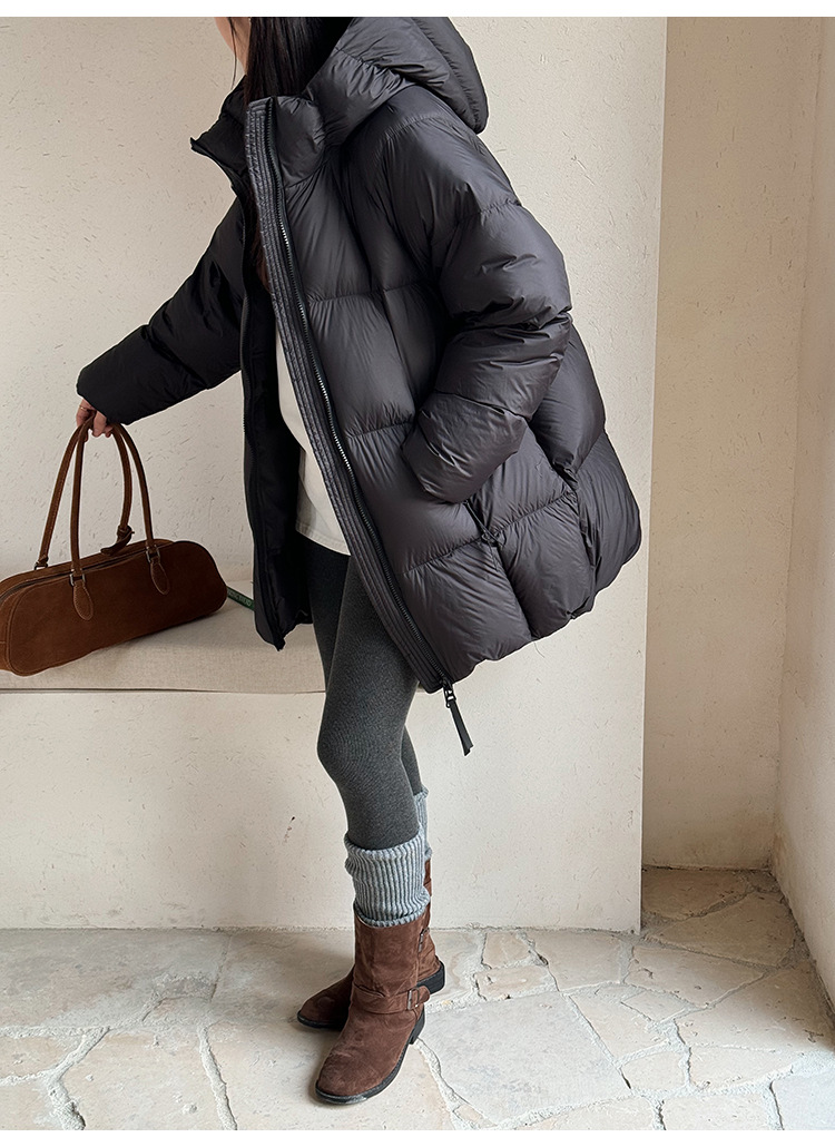 商品名称:【安心绒】超轻泡芙90白鹅绒连帽龟背鹅绒服女中长款加厚休闲外套