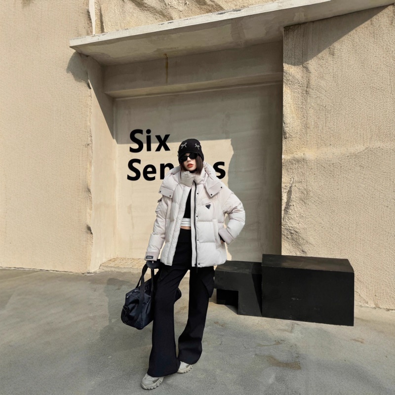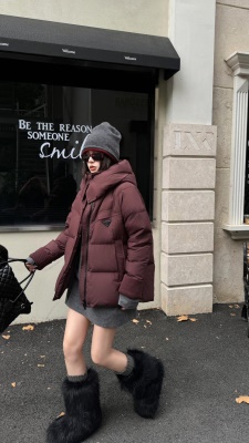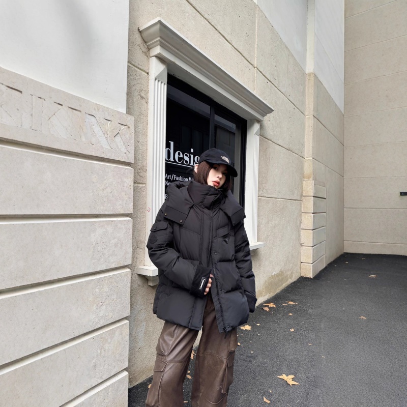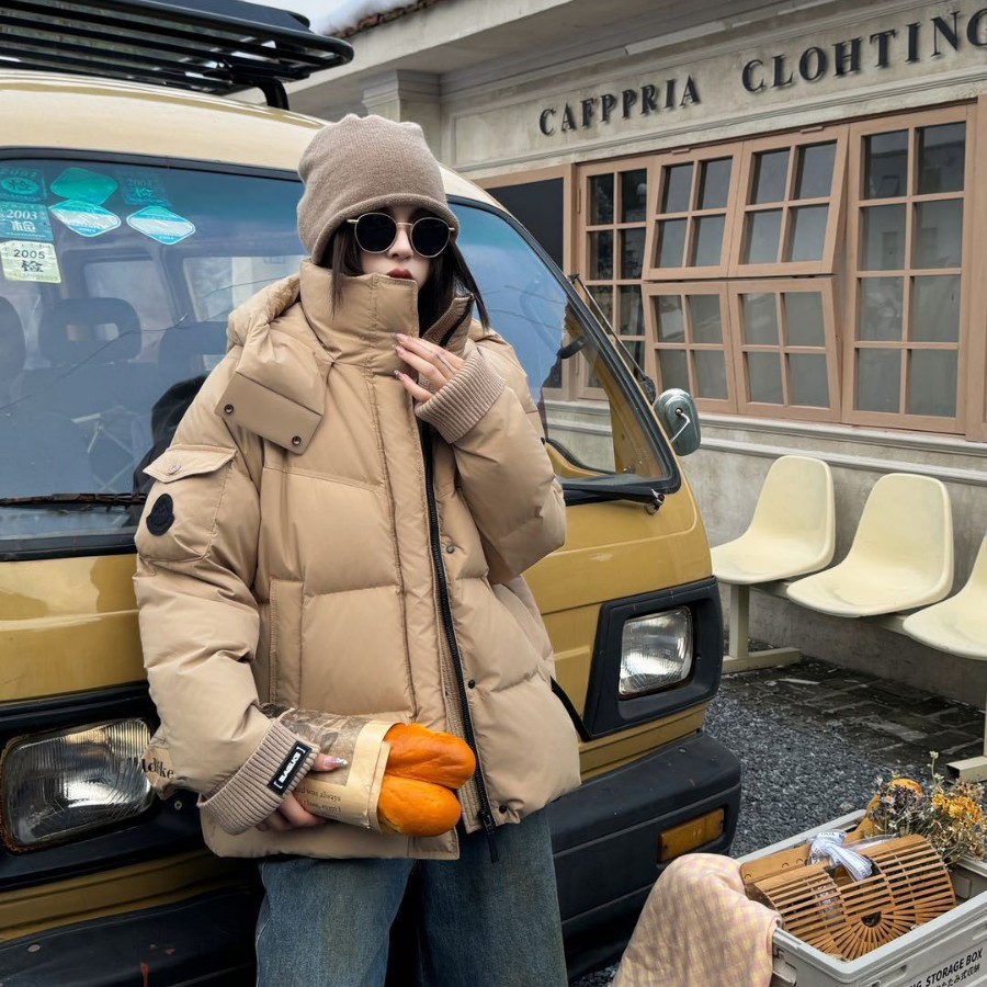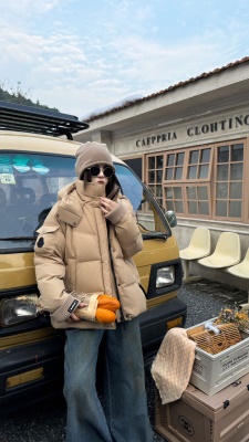 商品名称:2026冬季新款高级时尚潮鹅绒服女连帽短款加厚90白鹅绒面包服外套