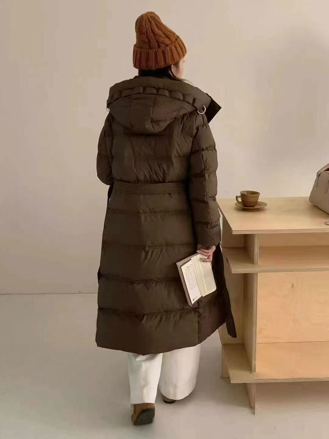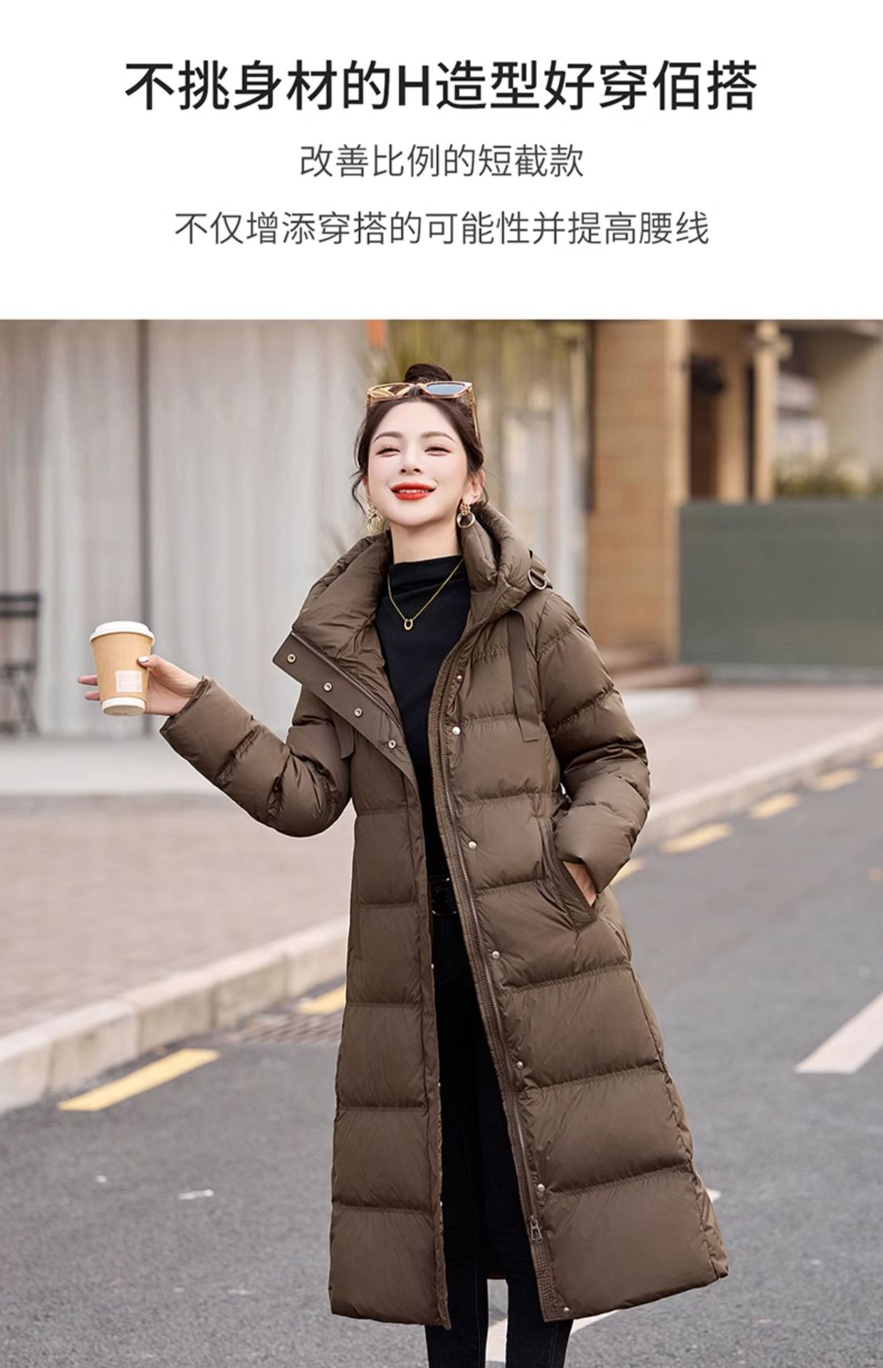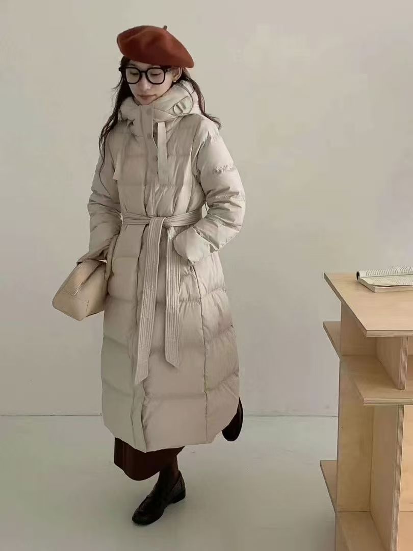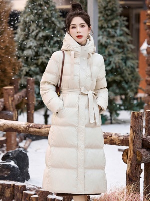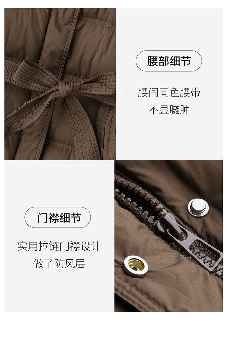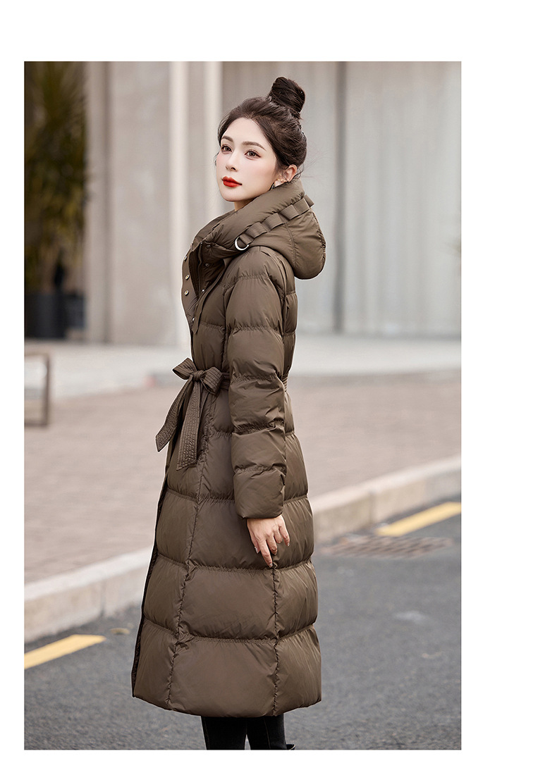 商品名称:鹅绒服女长款过膝2026冬季新款连帽收腰修身显瘦加厚鹅绒腰带外套